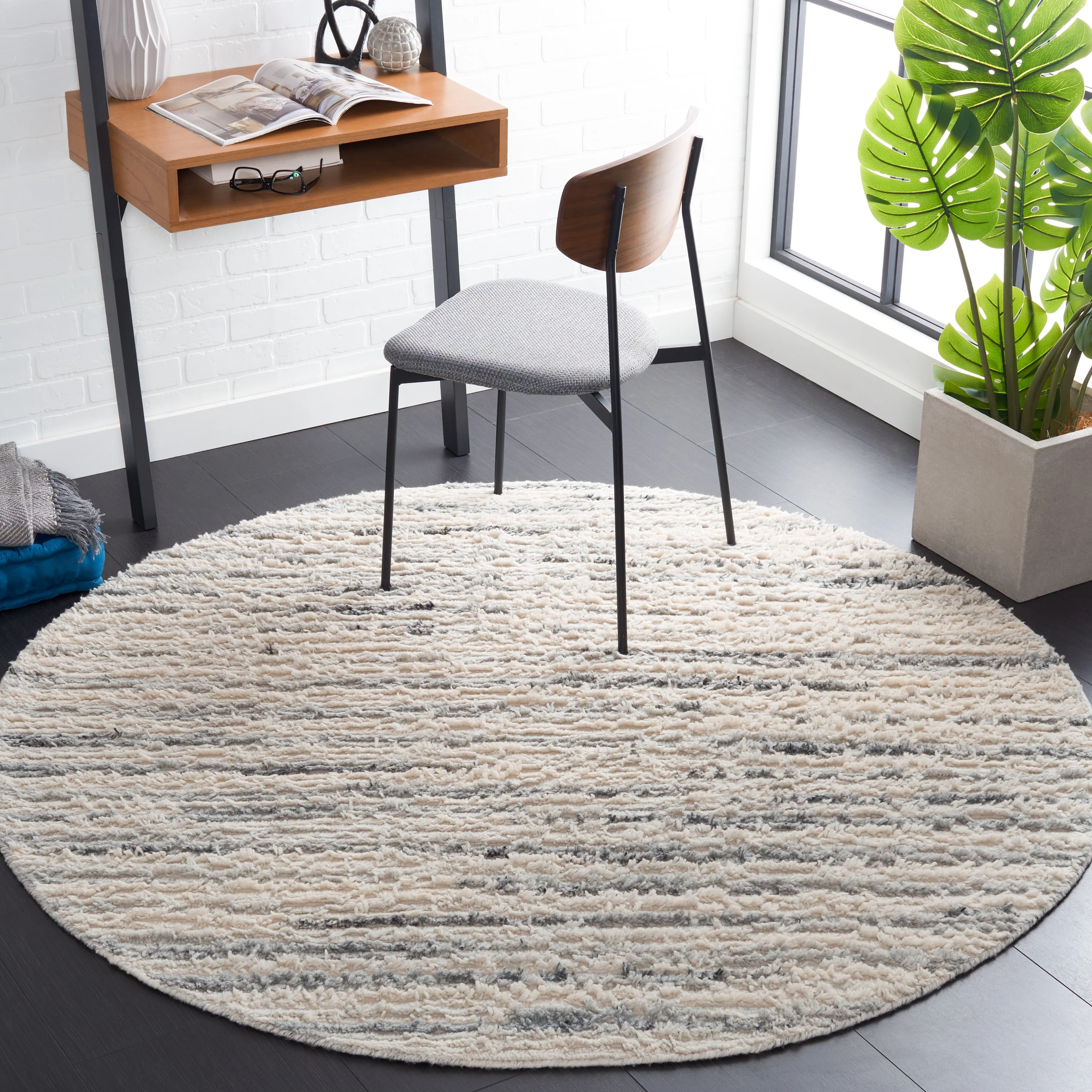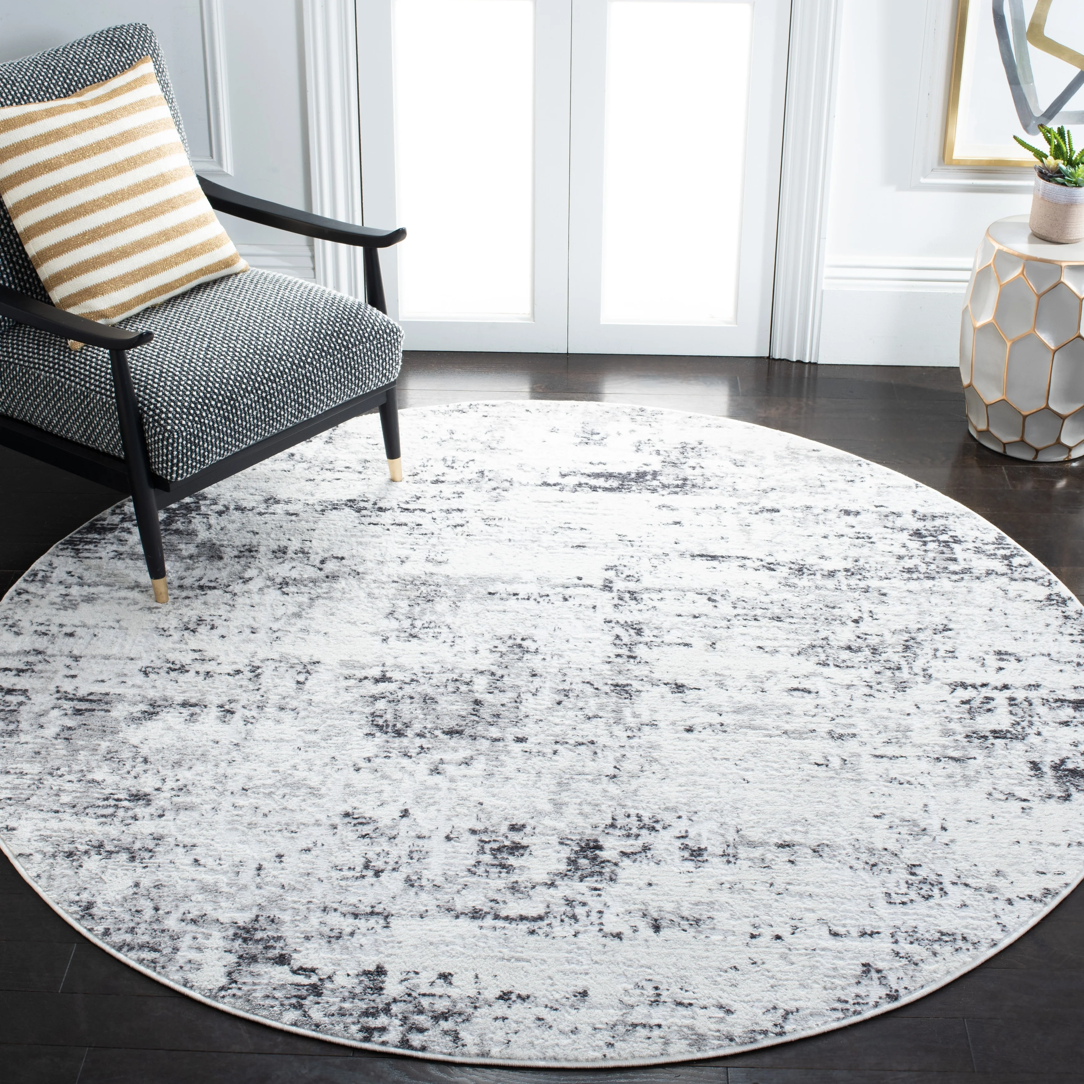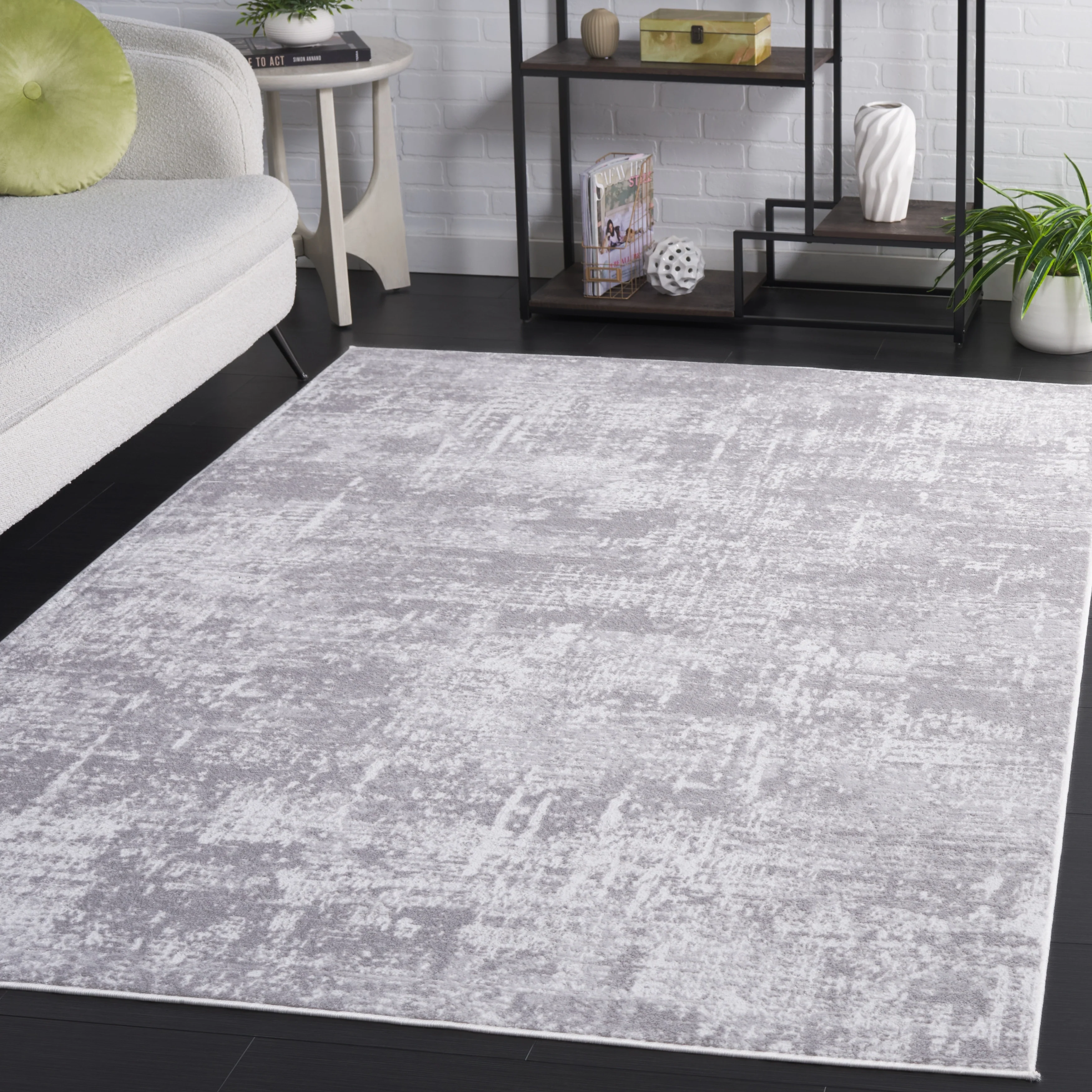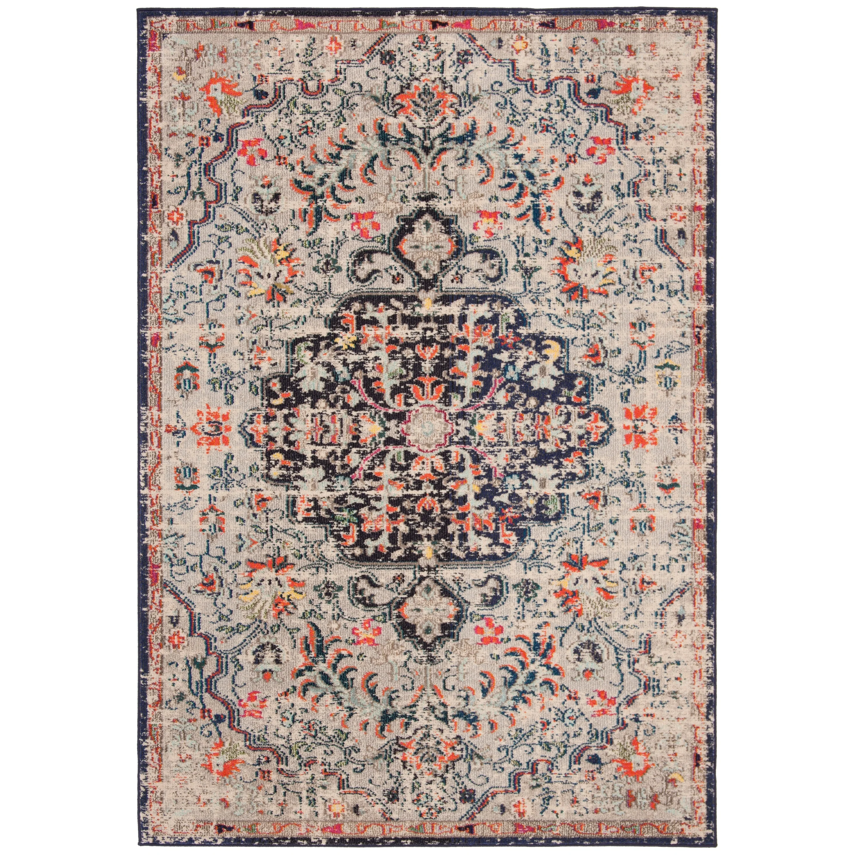 Hauteloom Olwen Living Room, Bedroom Machine Washable Area Rug - Cream, Light Gray - 6'7" x 9'
