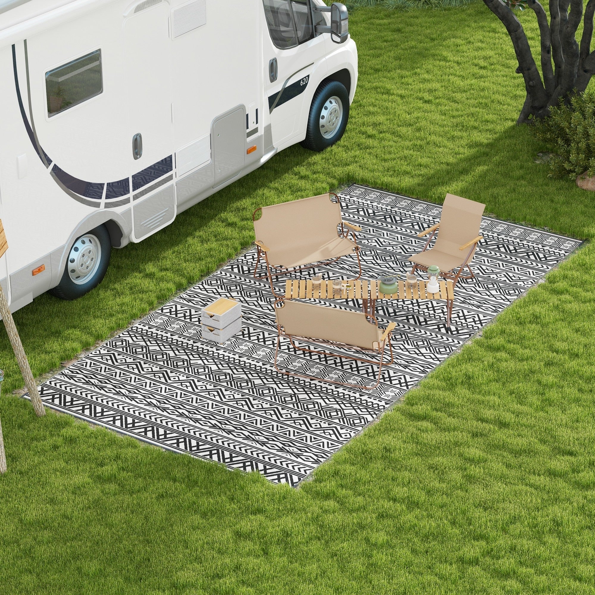 Outsunny Reversible Outdoor Rug, 9' x 18' Waterproof Plastic Straw Floor Mat, Portable RV Camping Carpet