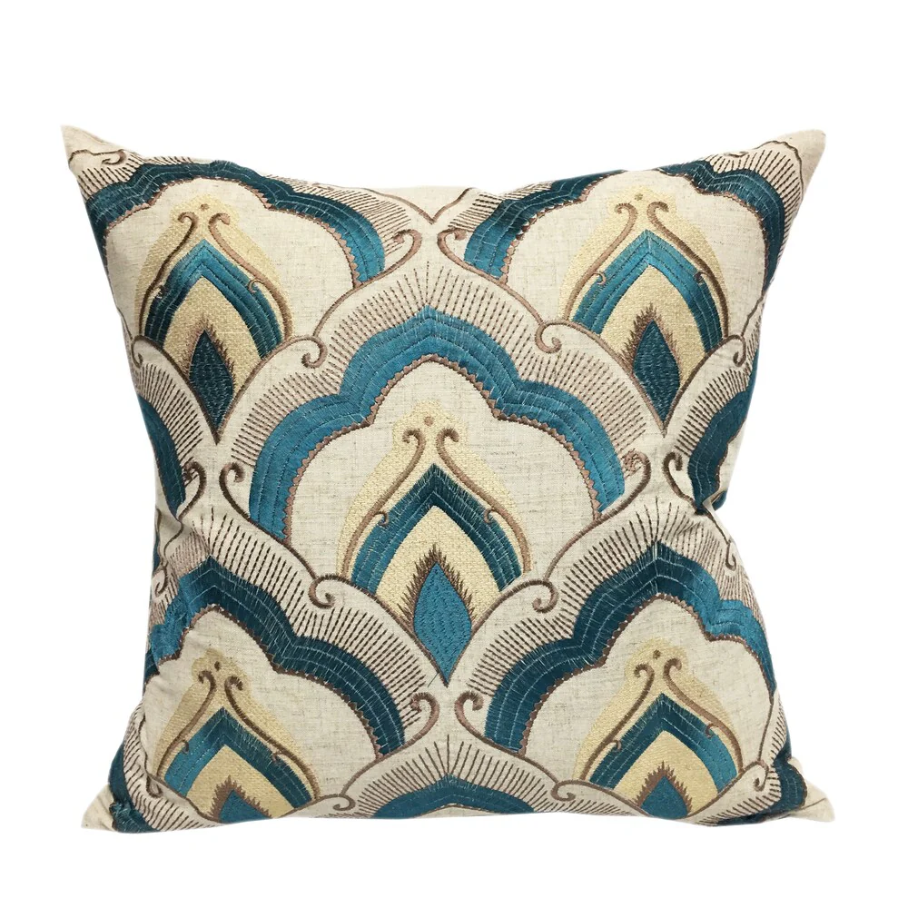 Embroidered Linen Poly Green and Teal Raybrook Throw Pillow