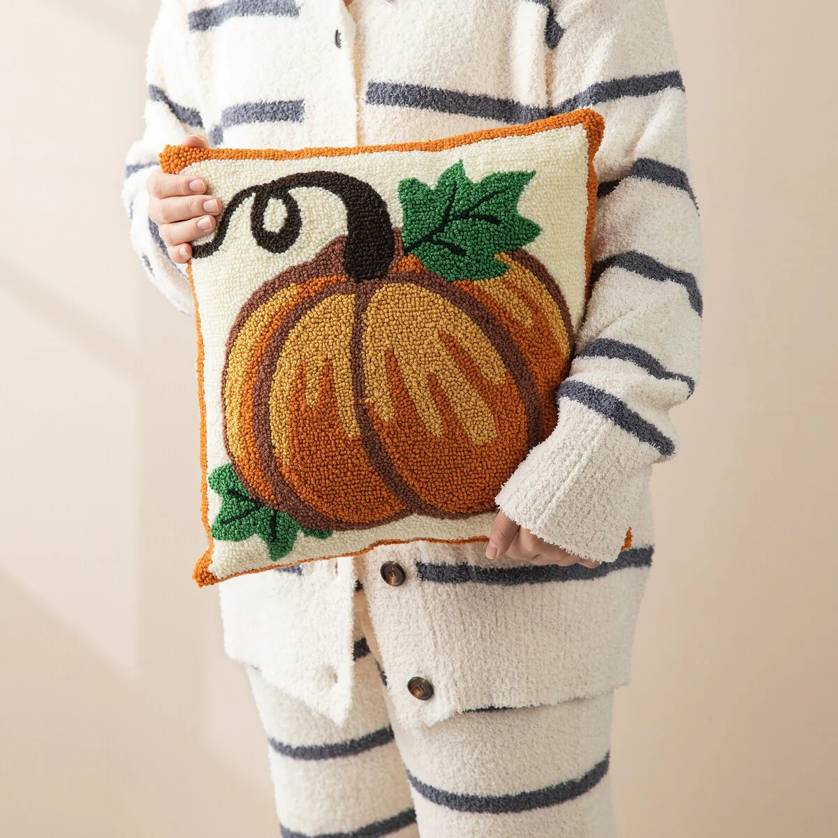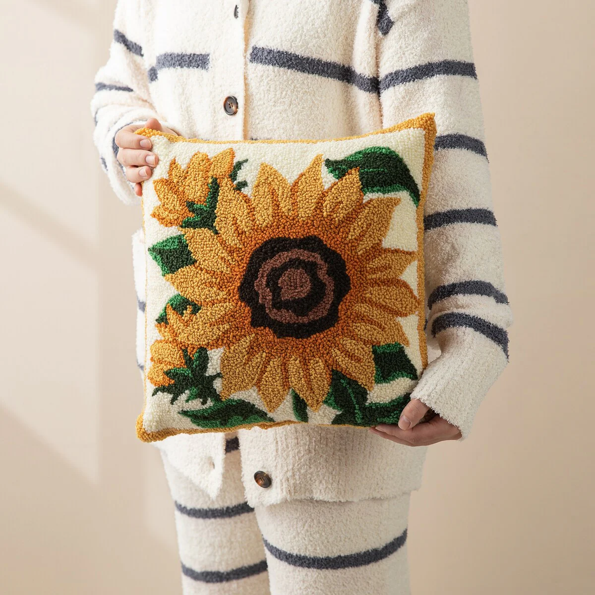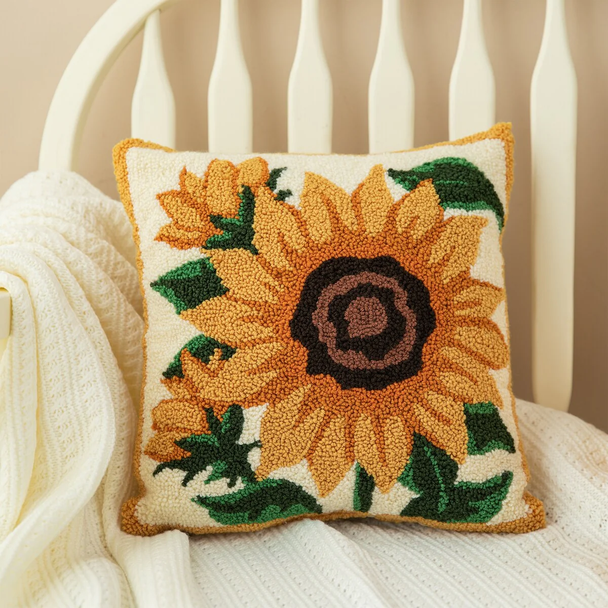 Glitzhome 14''H Fall Hooked Pumpkin & Sunflower Pillow