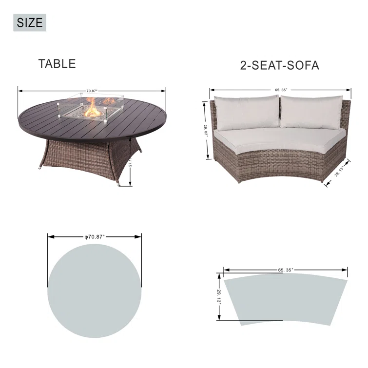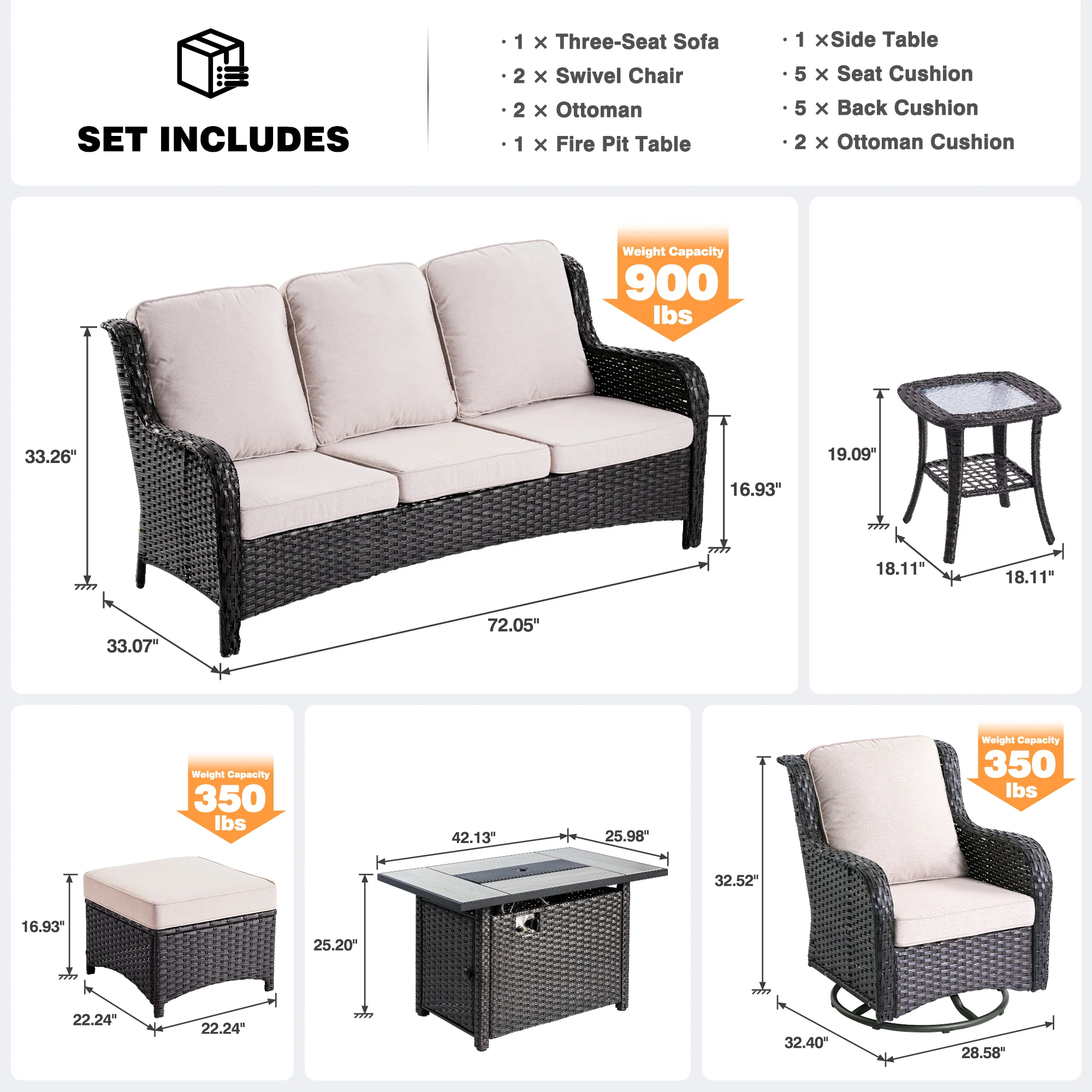 Ovios Patio 7-Piece Conversation Set with 42'' Rectangle Propane Fire Pit Table and Rocking Chairs Kenard
