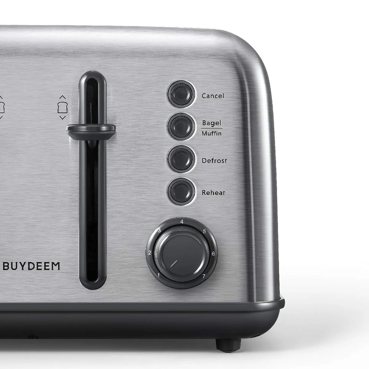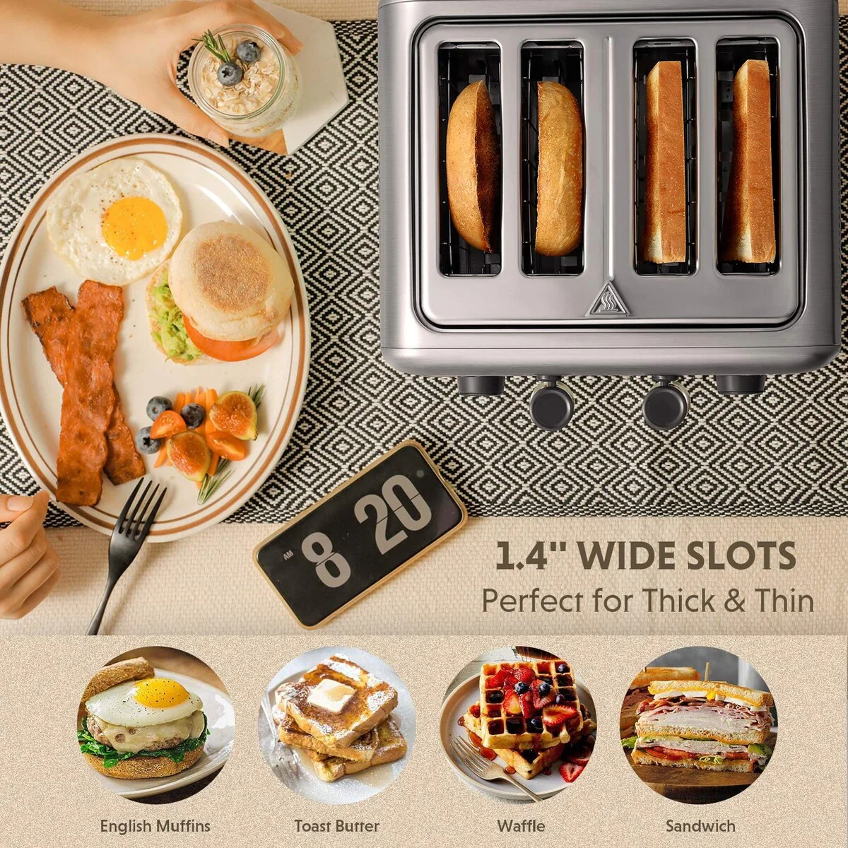 4-Slice Toaster, Extra Wide Slots, Retro Stainless Steel with High Lift Lever, Bagel and Muffin Function, Removal Crumb Tray
