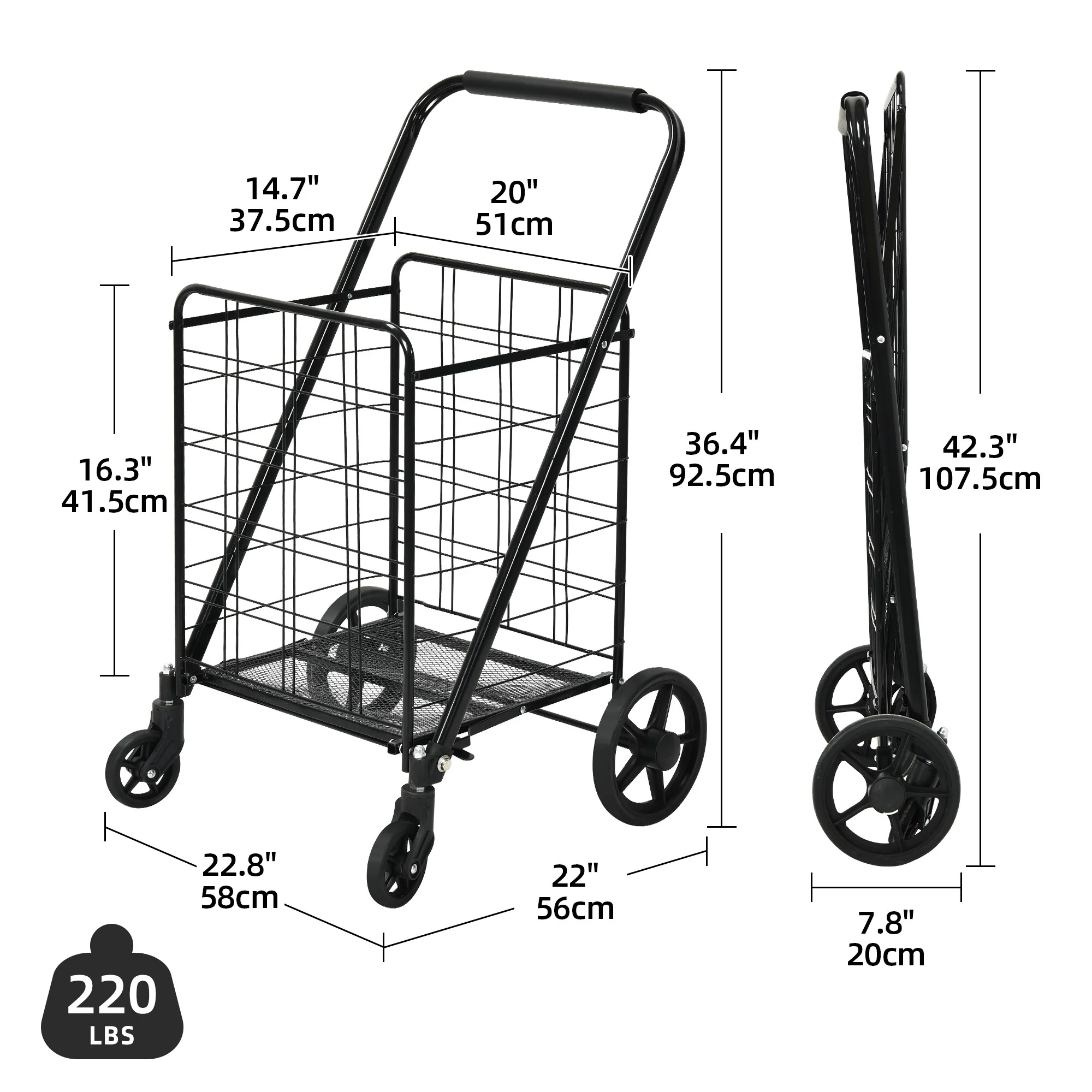 Moasis Utility Folding Shopping Cart Portable Trolley with Swivel Wheels