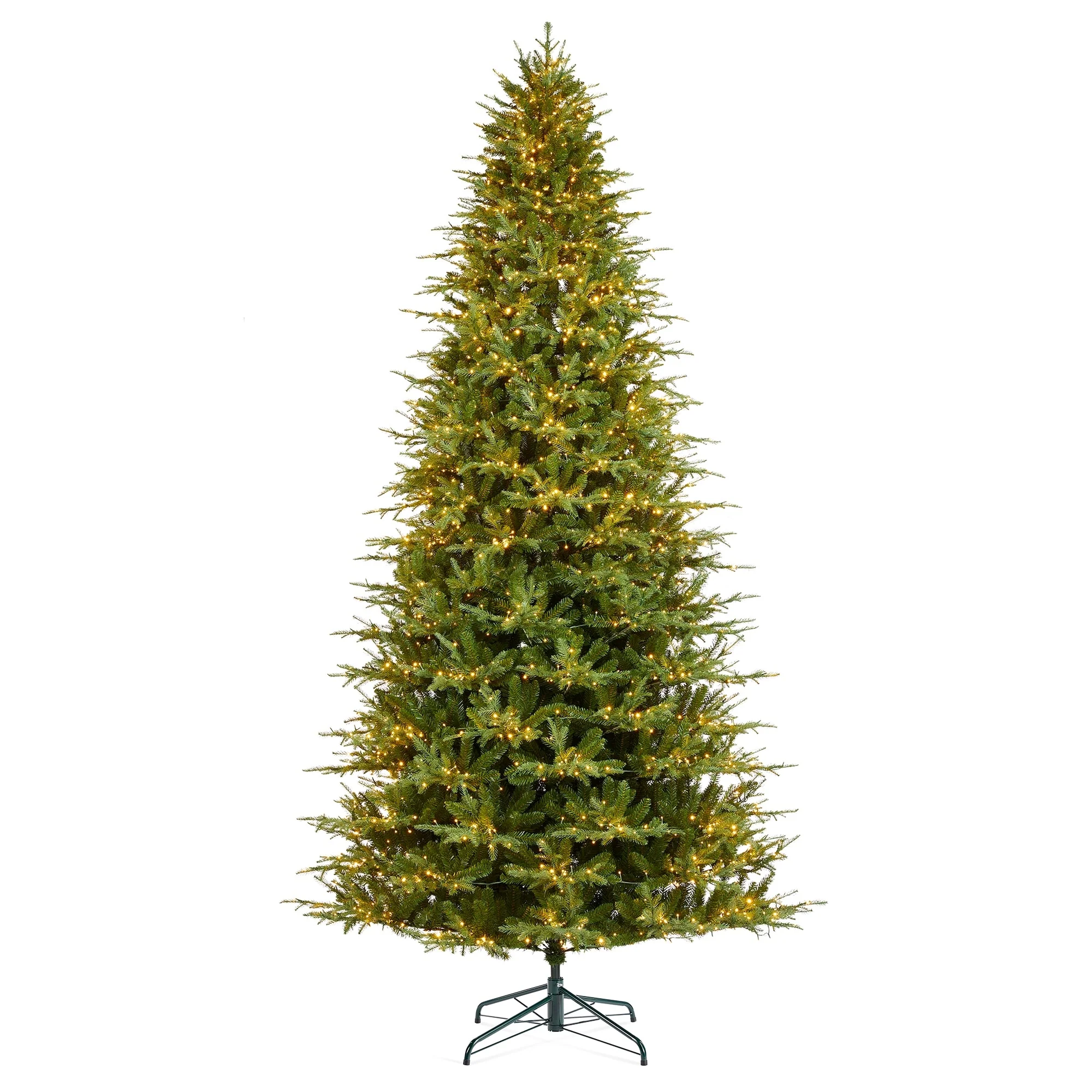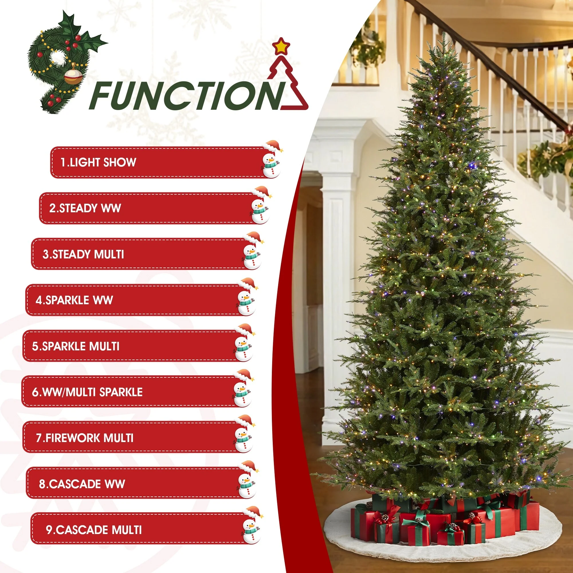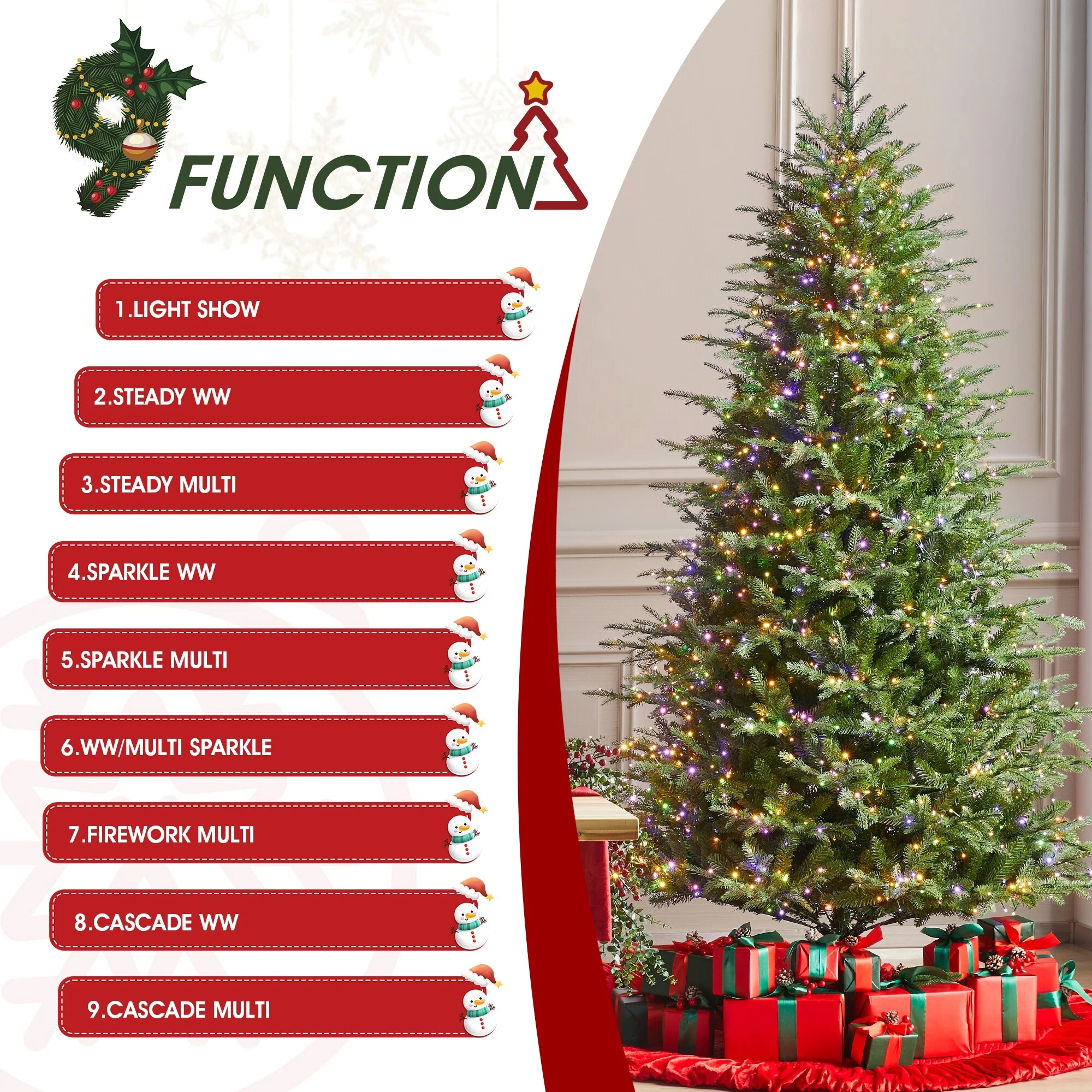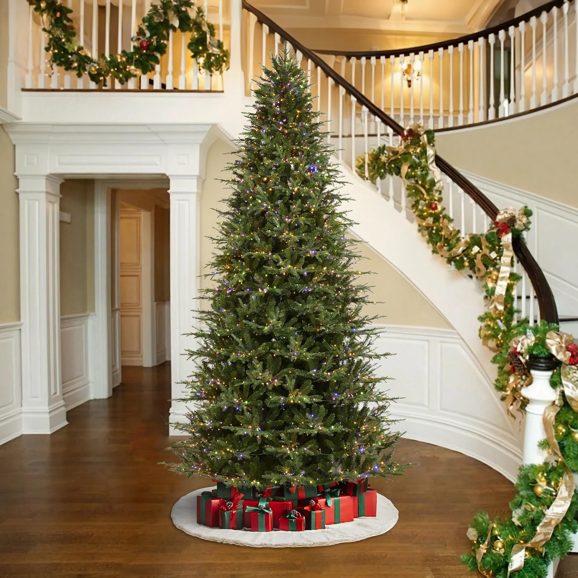 Glitzhome 7.5ft/9ft/11ft Pre-Lit Green Full Fir Artificial Christmas Tree with 1800/2450/3200 LEDs Simple Setup