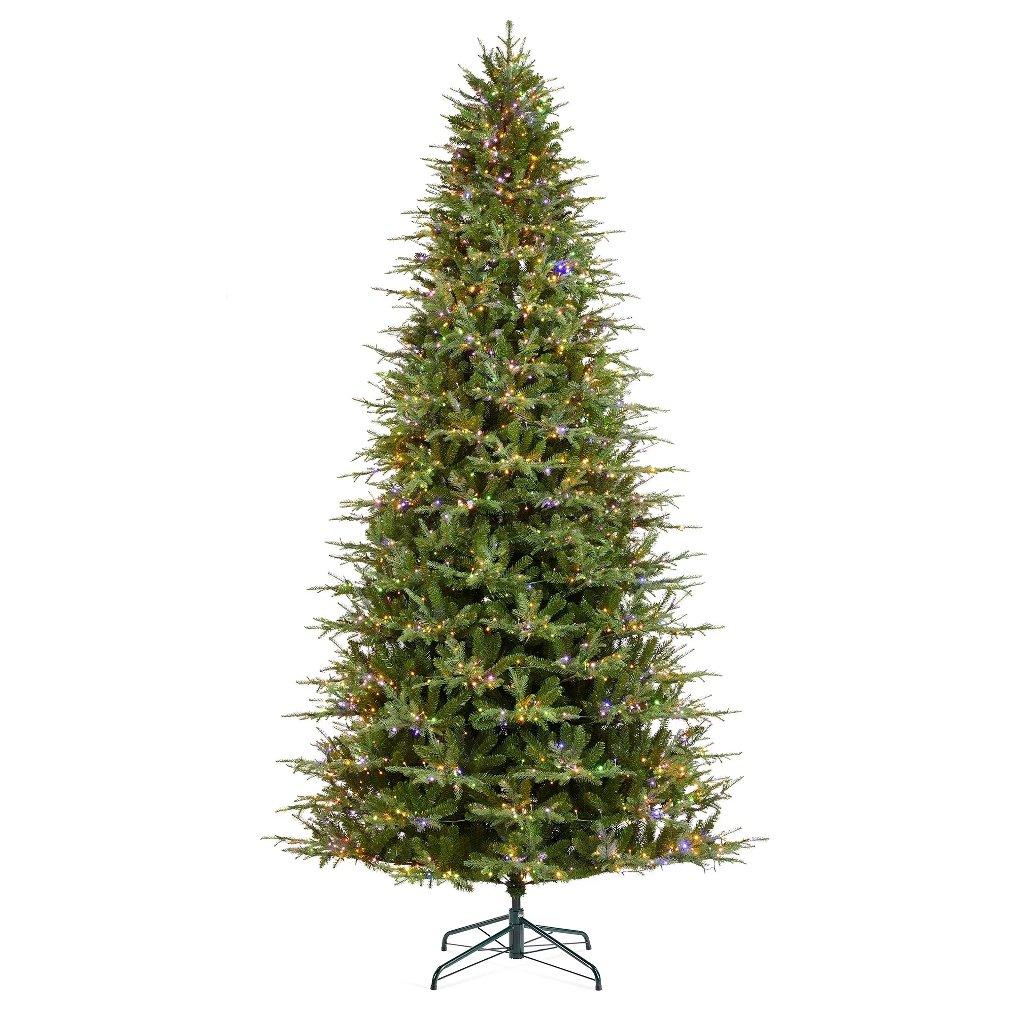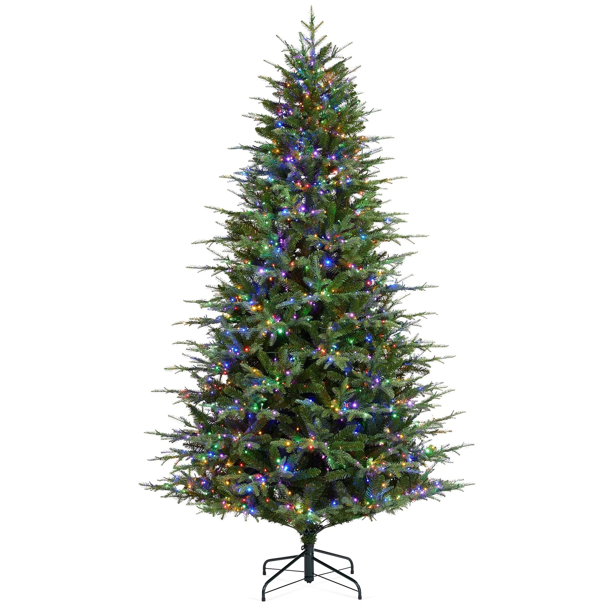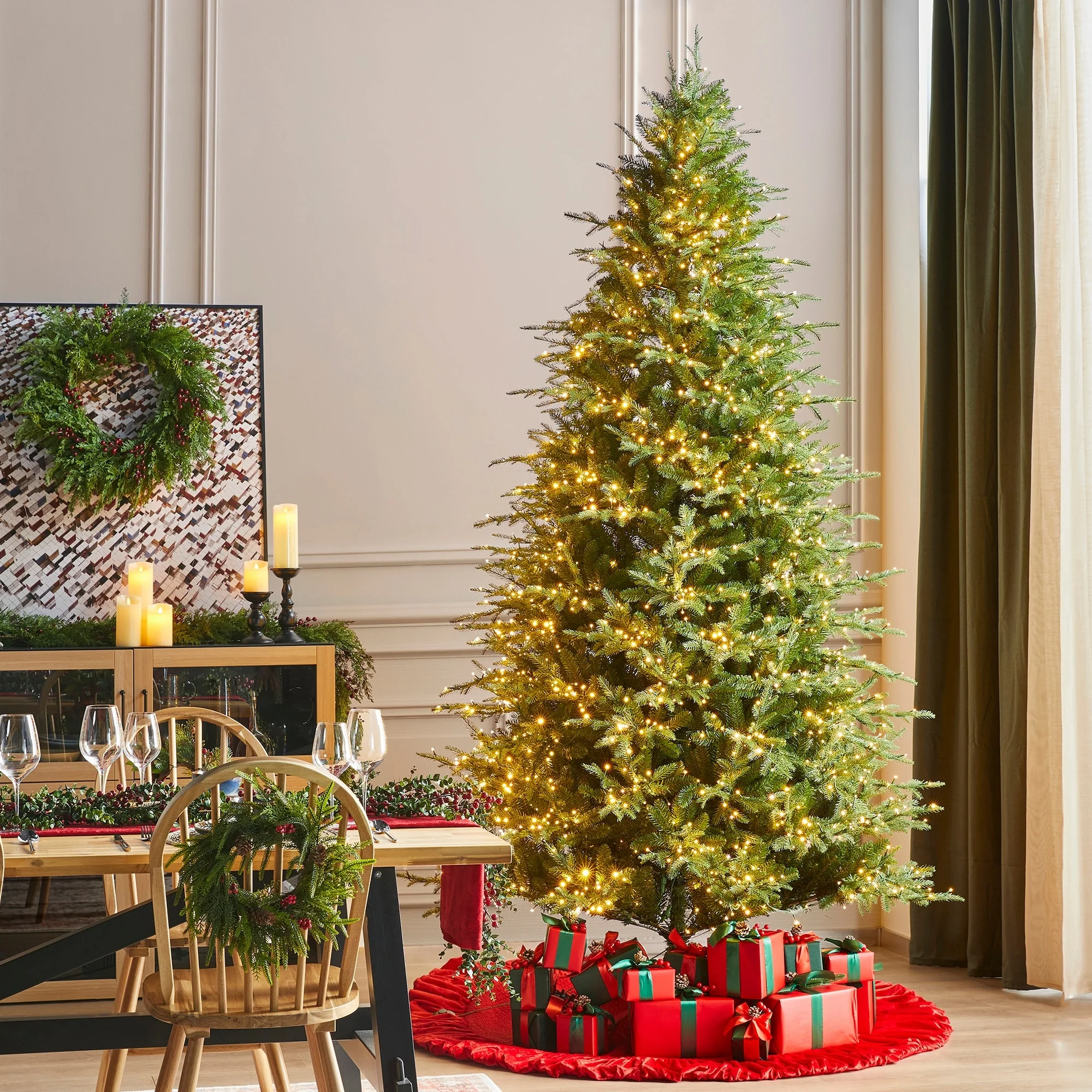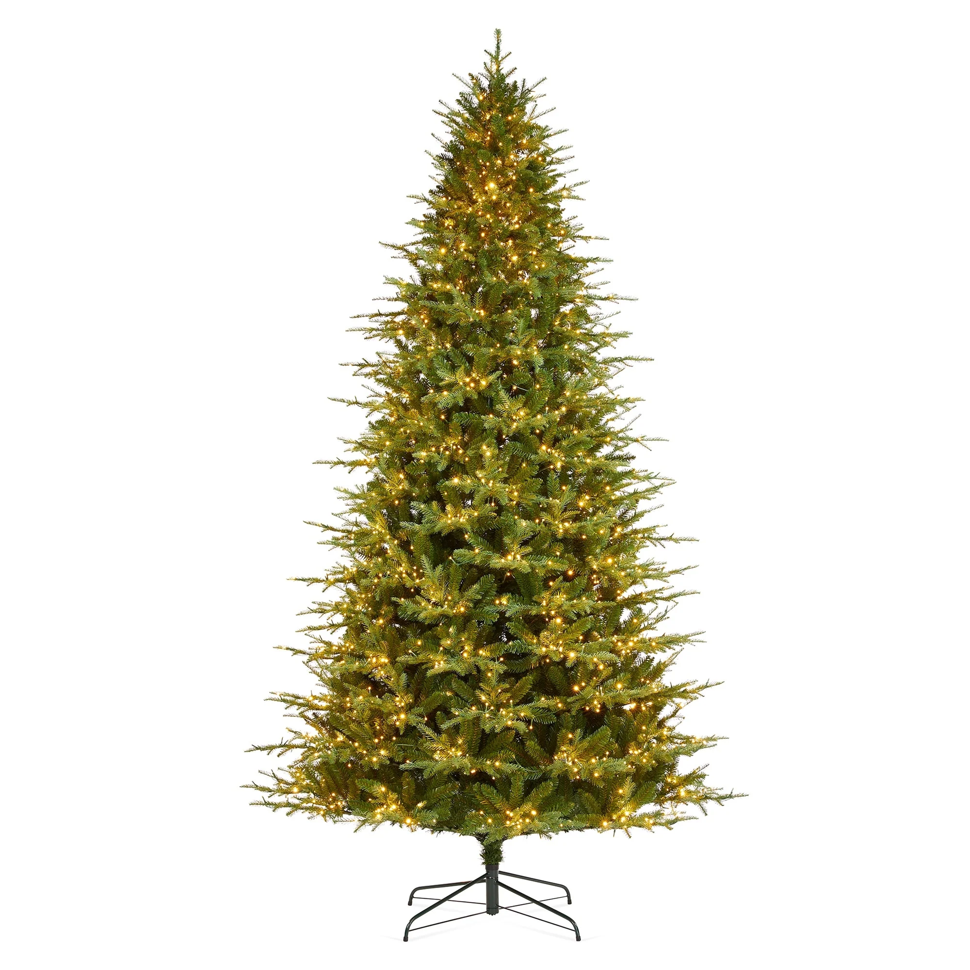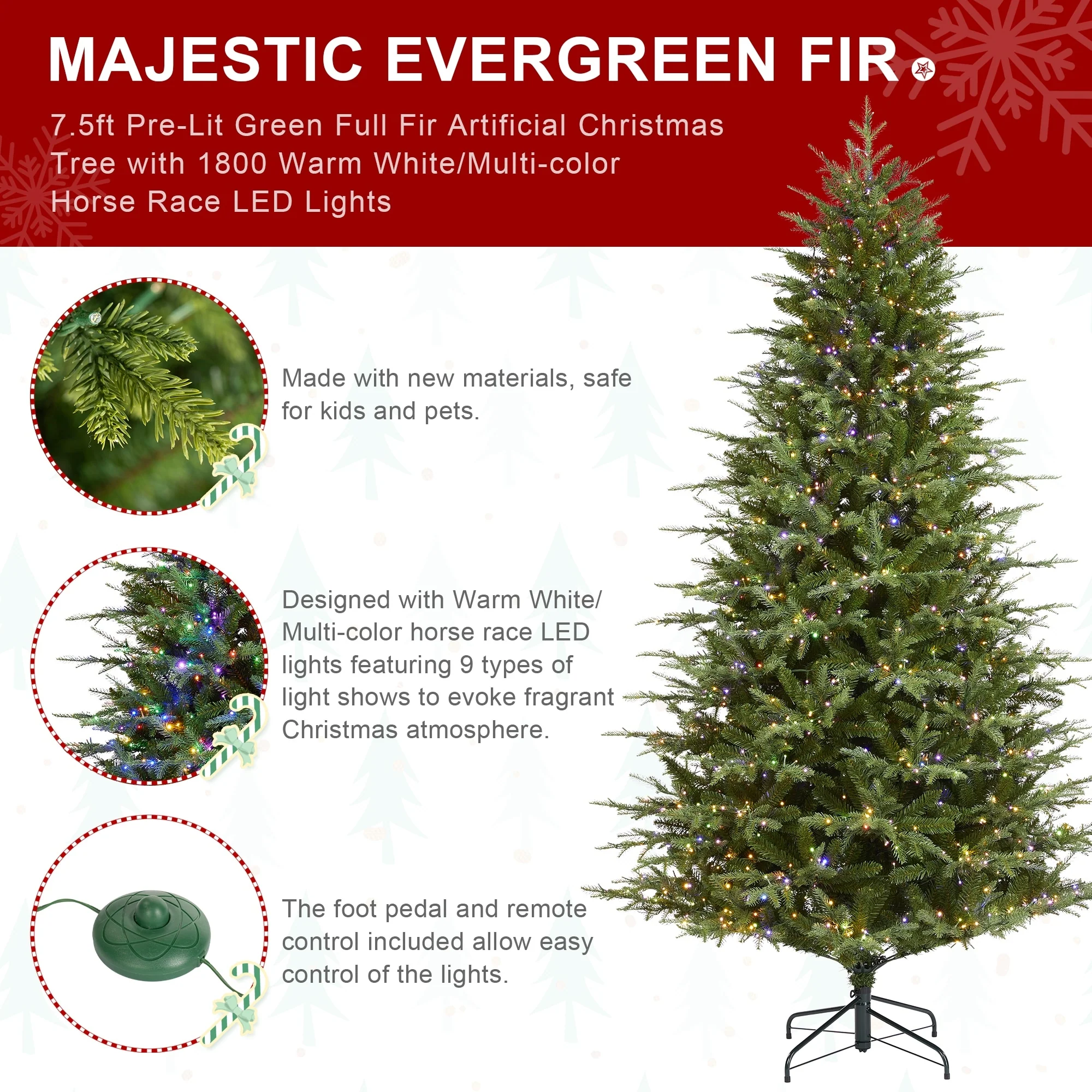 Glitzhome 7.5ft/9ft/11ft Pre-Lit Green Full Fir Artificial Christmas Tree with 1800/2450/3200 LEDs Simple Setup