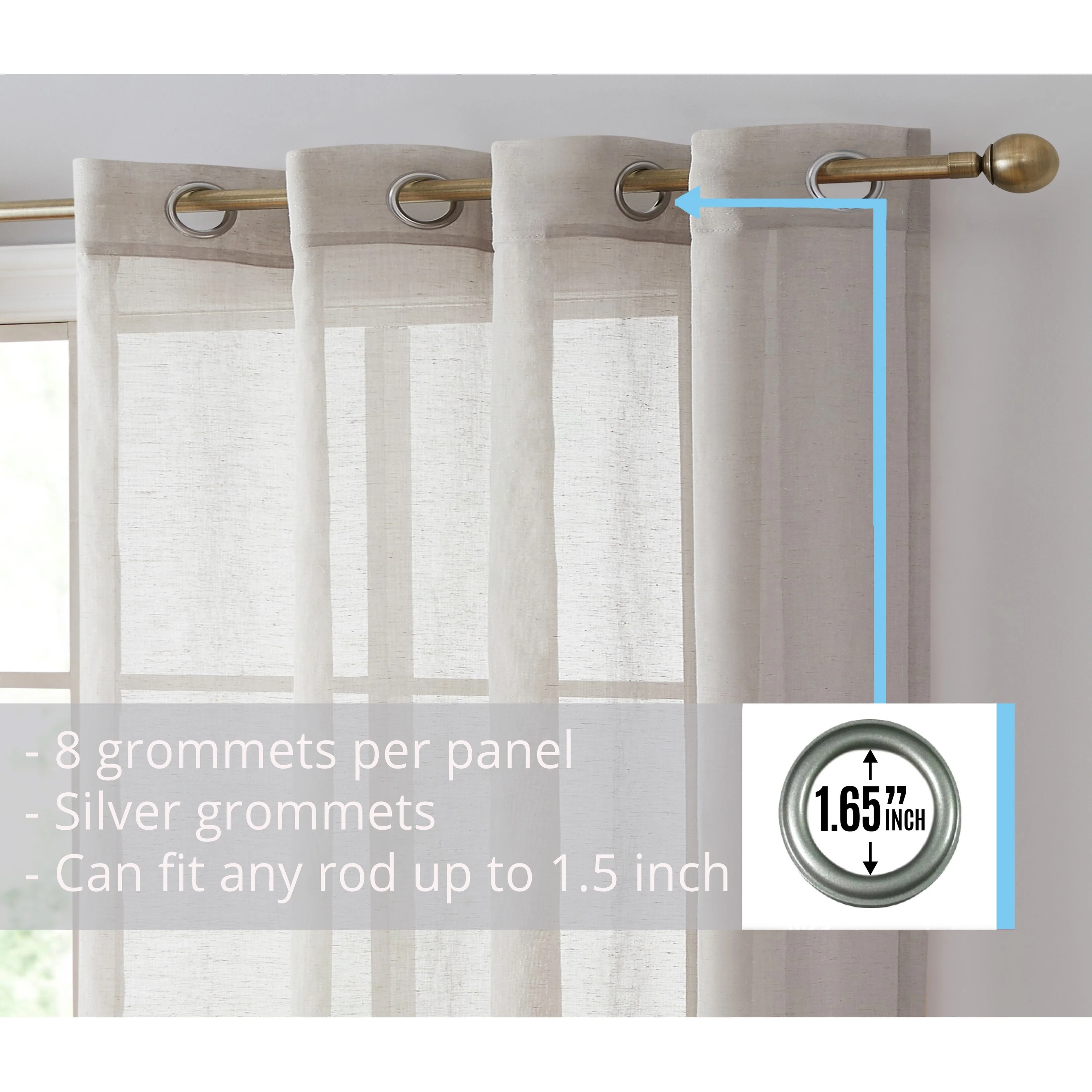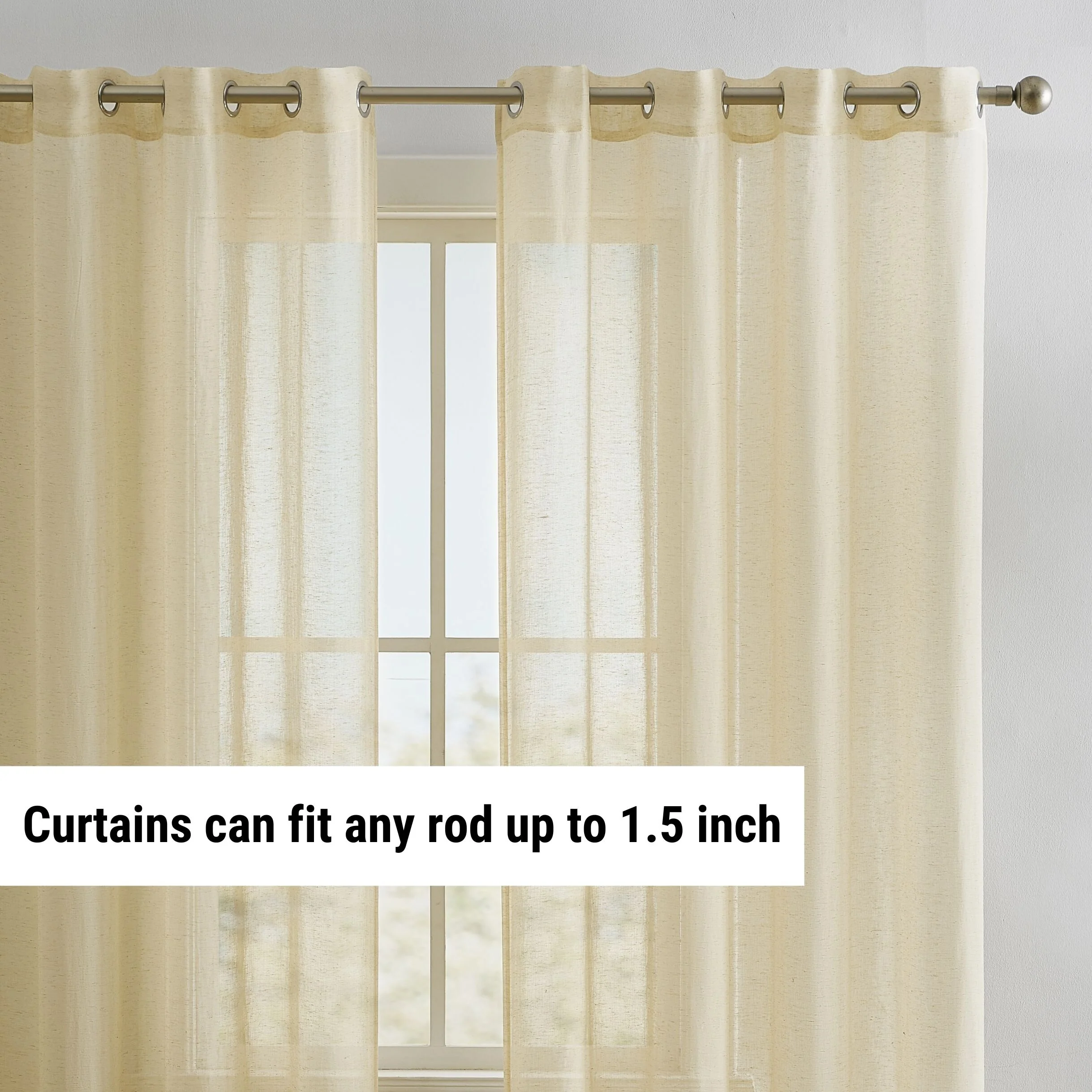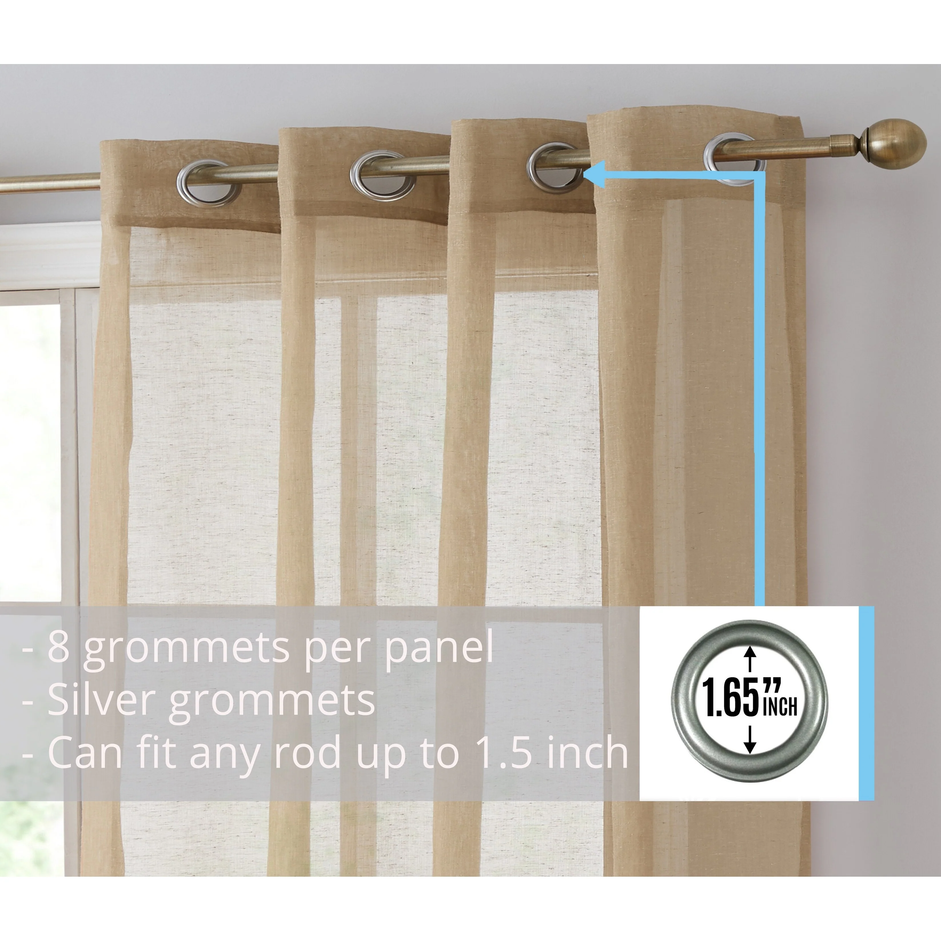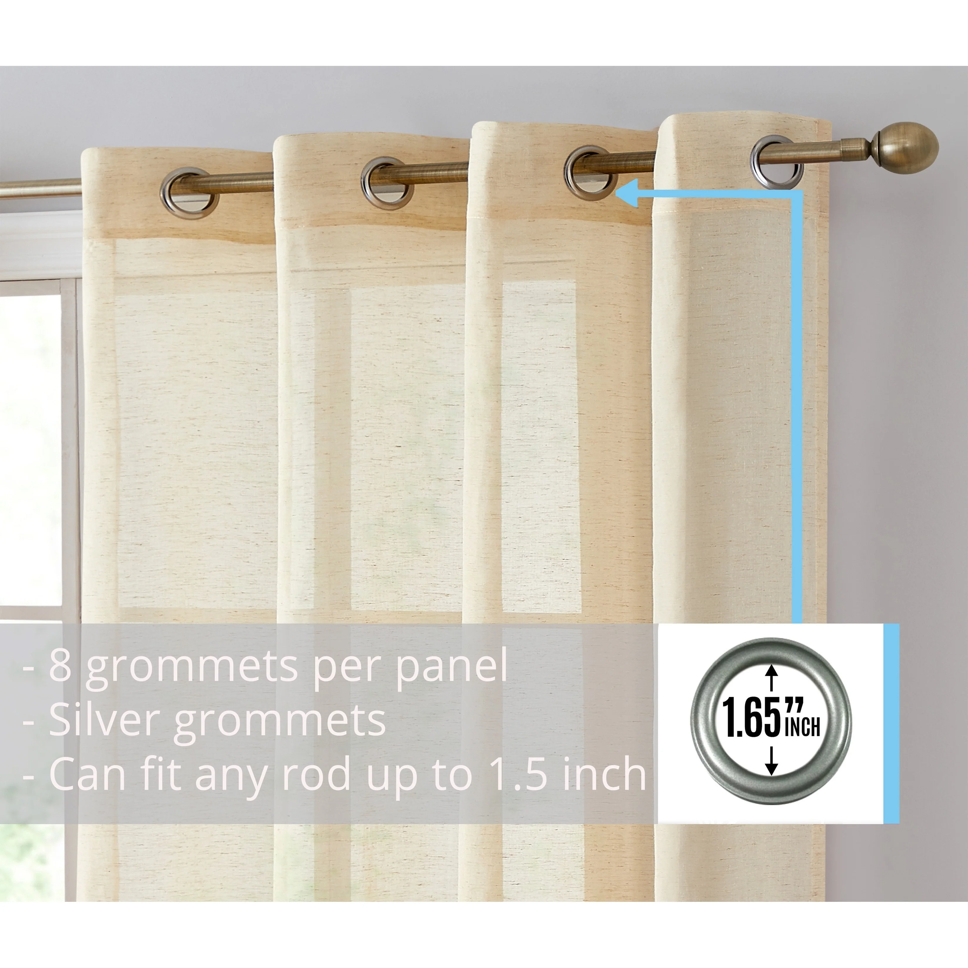 HLC.me Sierra Burlap Flax Linen Semi Sheer Light Filtering Transparent Window Grommet Thick Curtains Panels - Set of 2