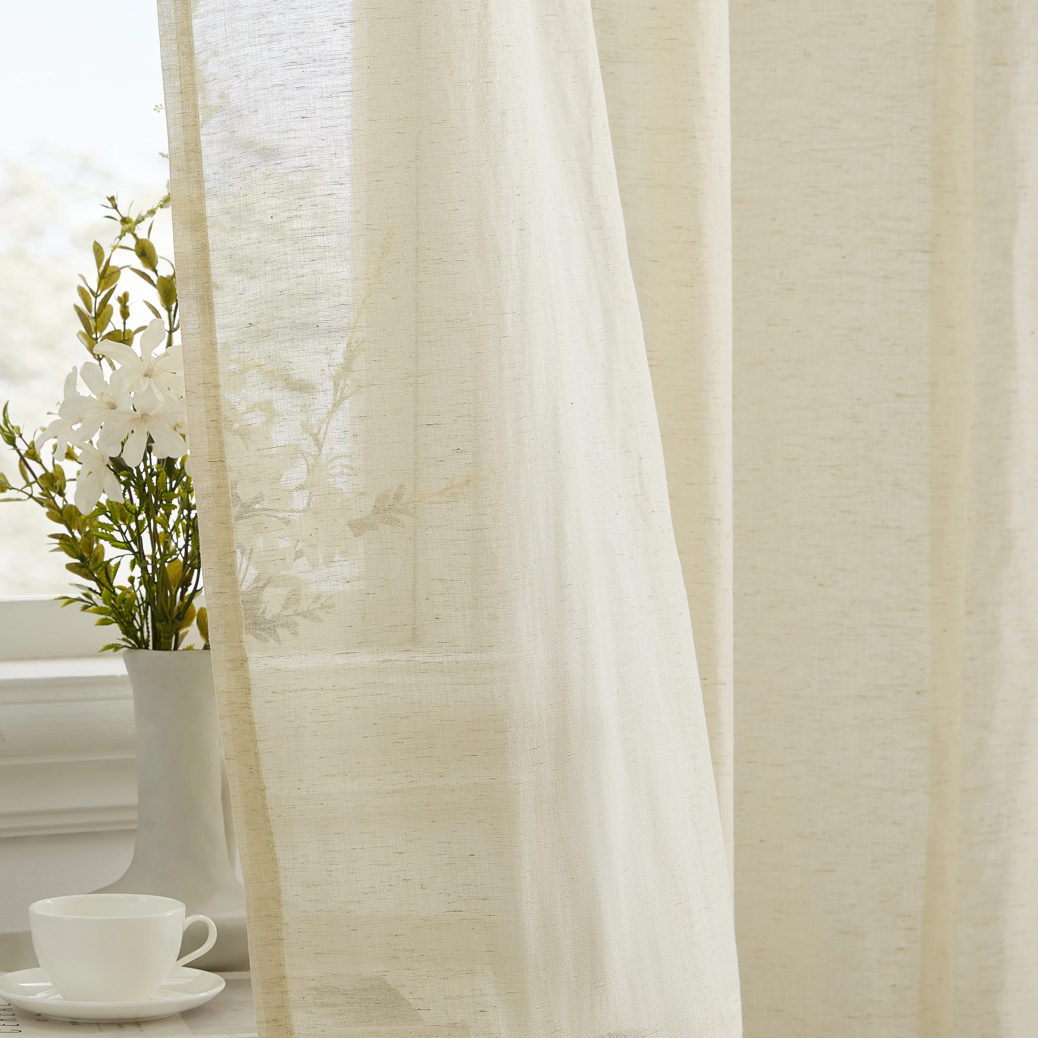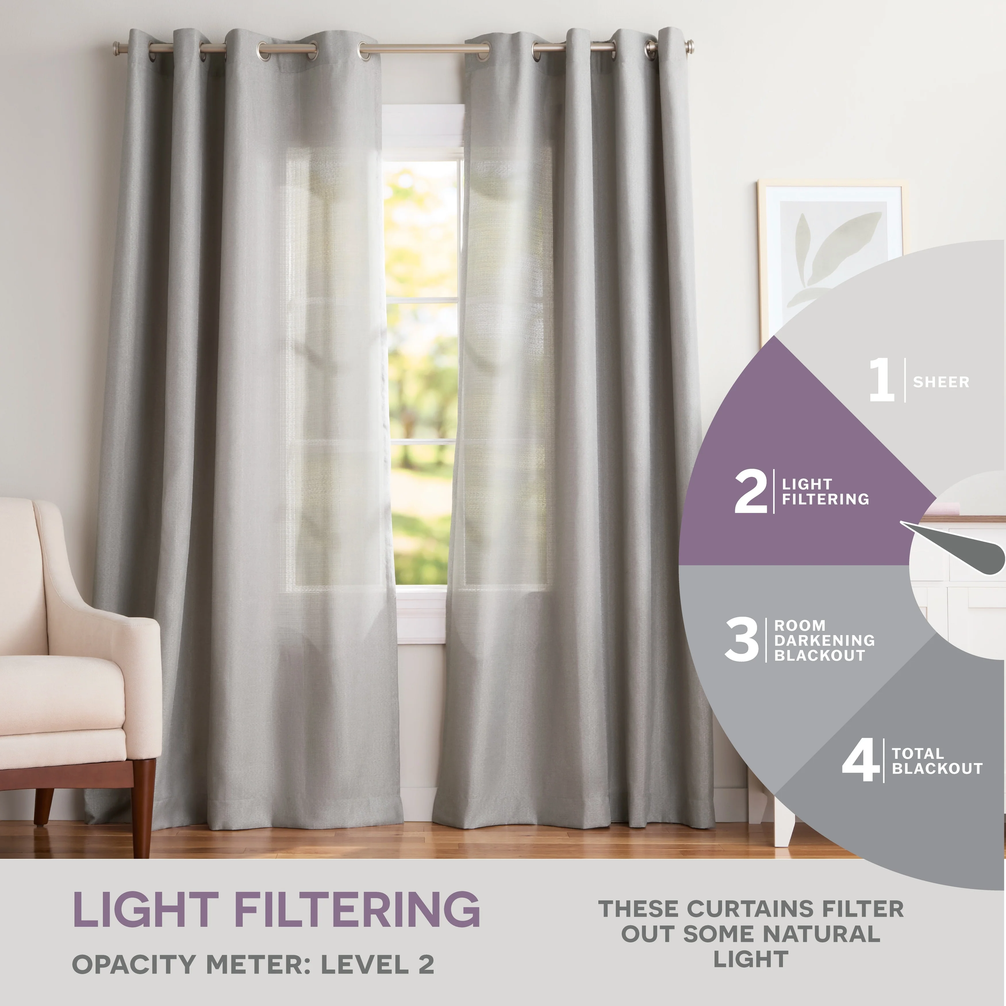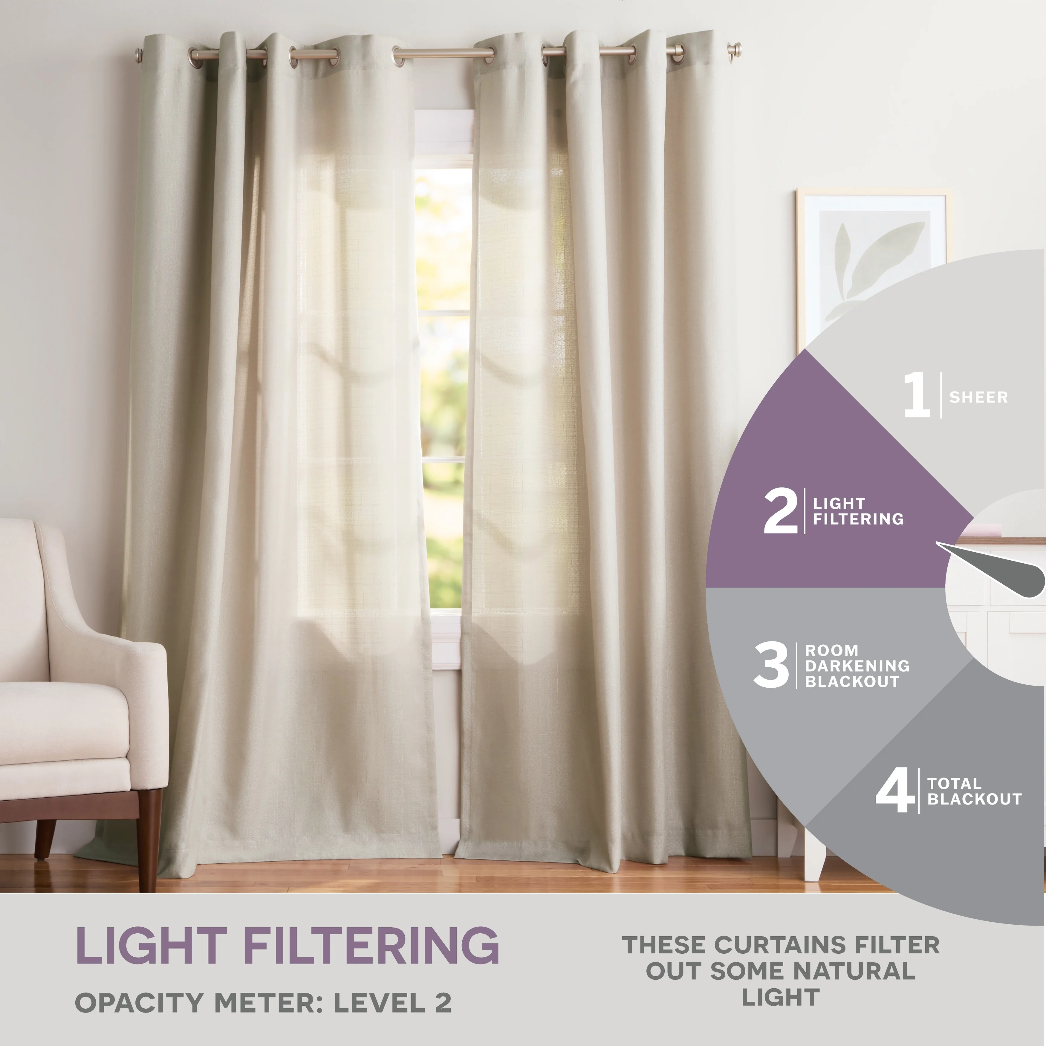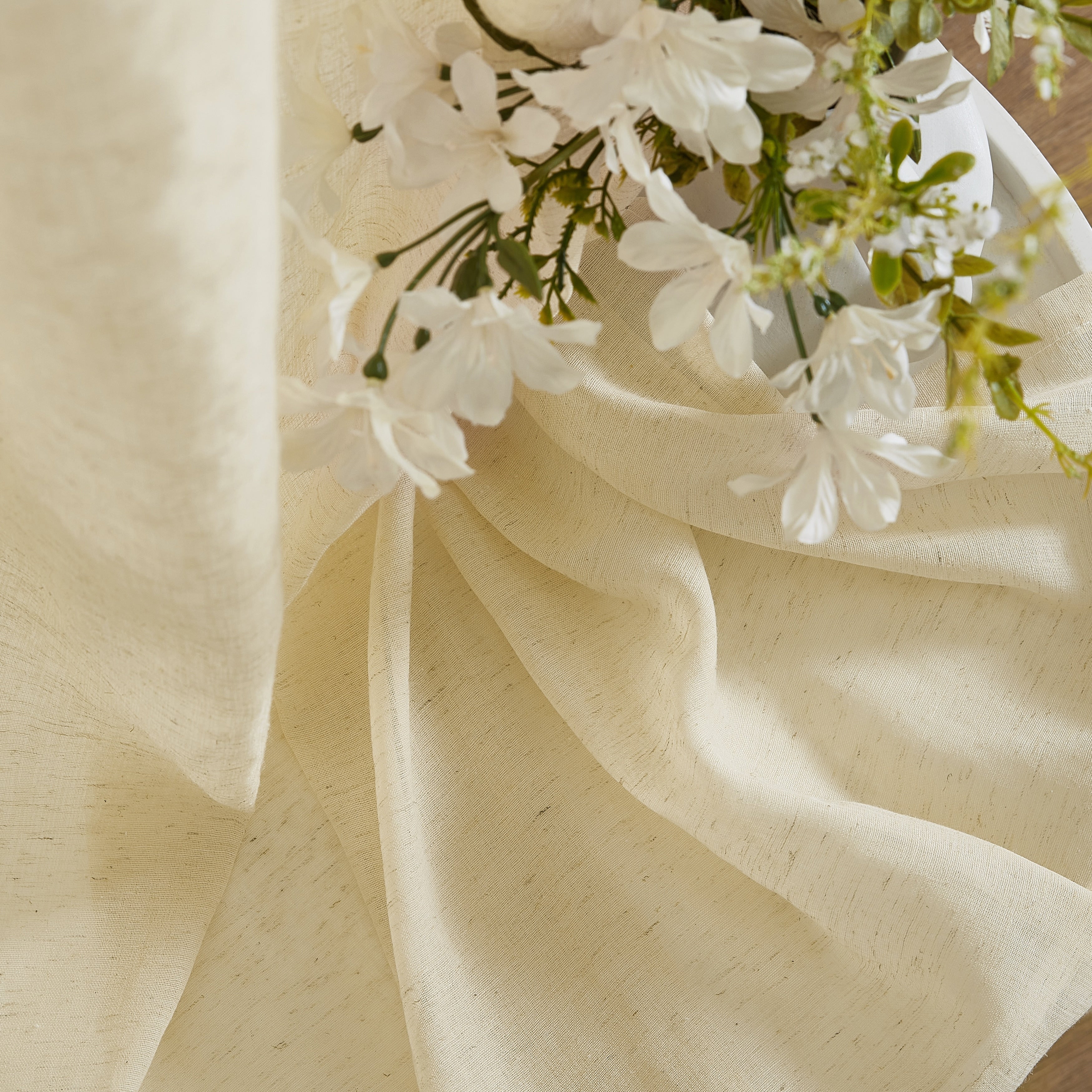 HLC.me Sierra Burlap Flax Linen Semi Sheer Light Filtering Transparent Window Grommet Thick Curtains Panels - Set of 2