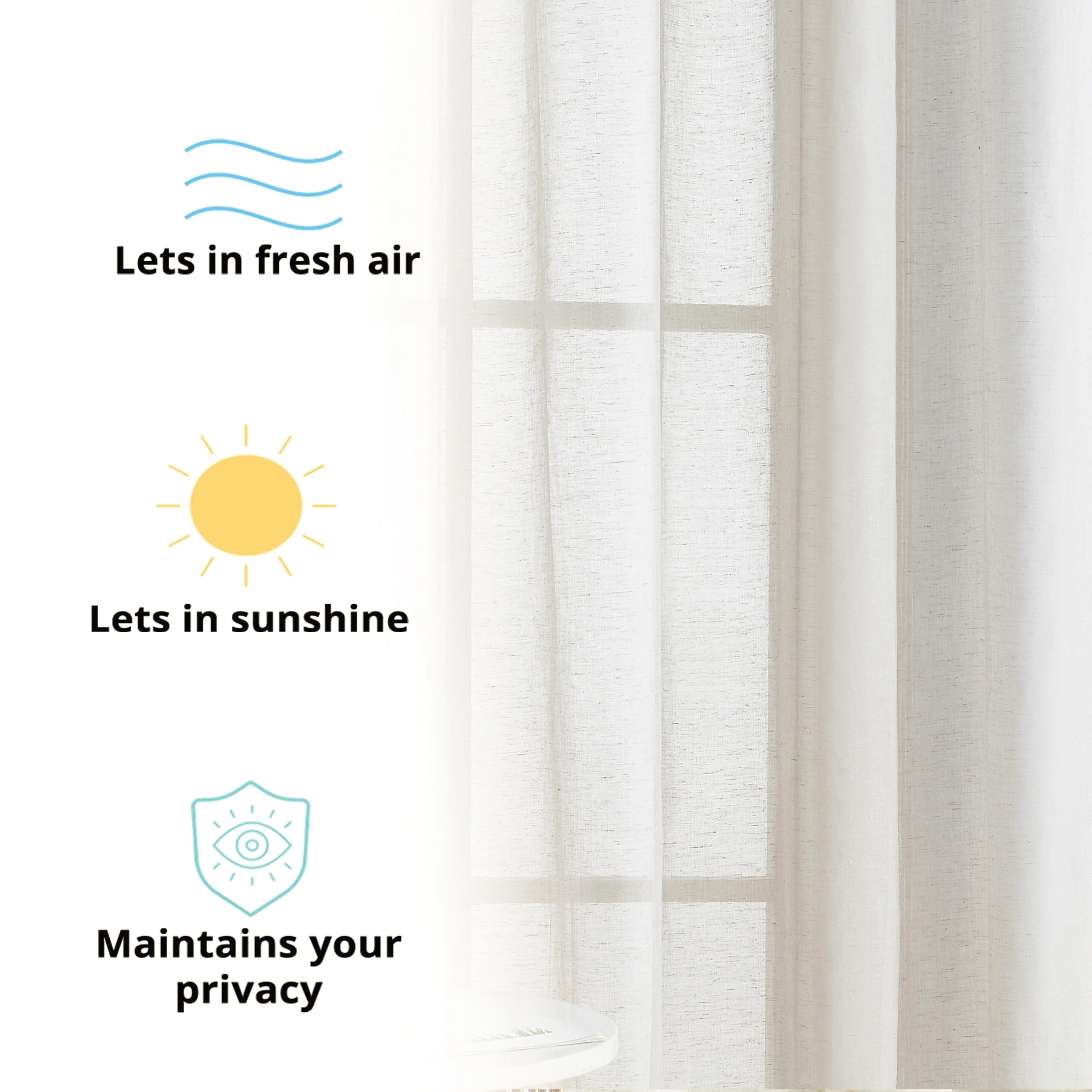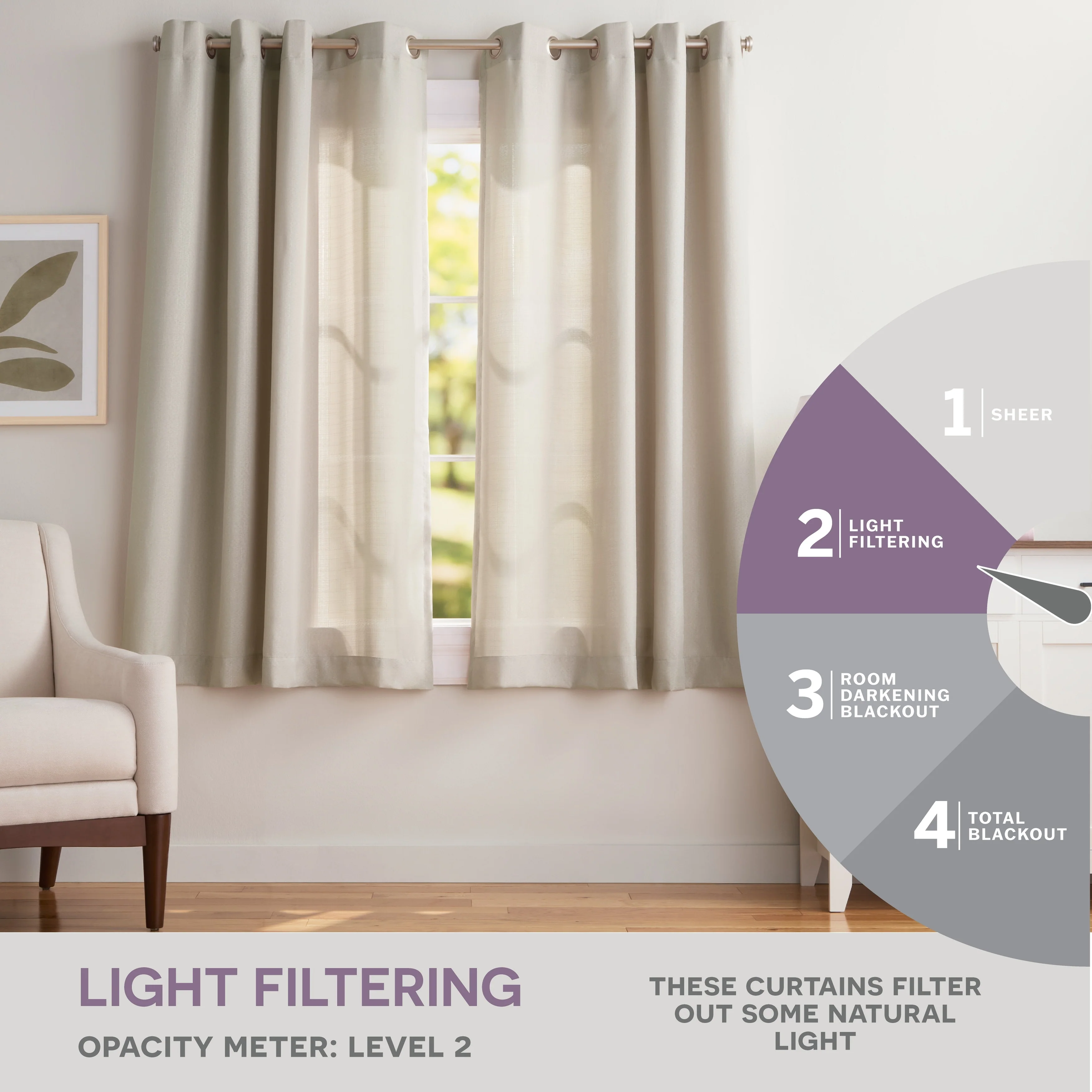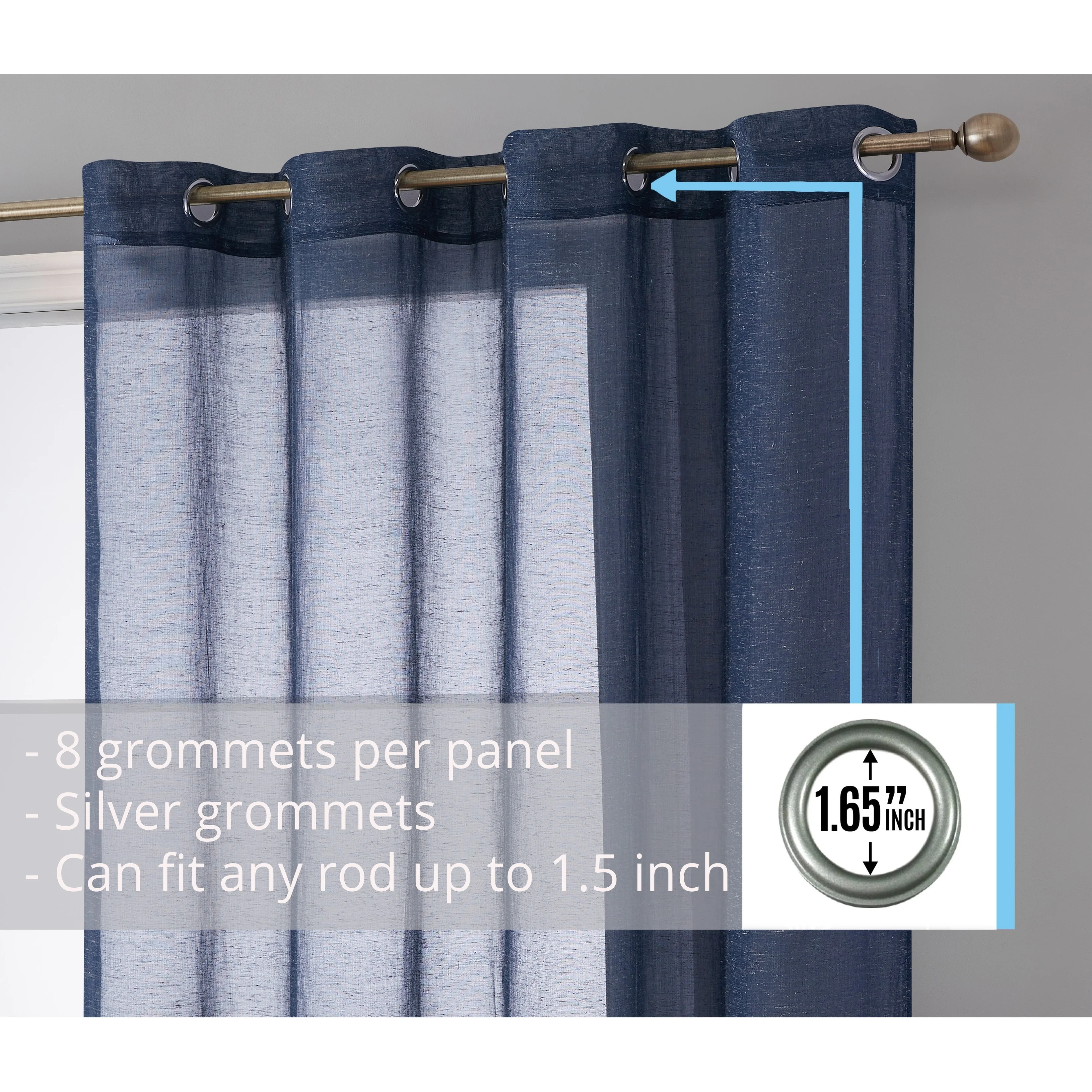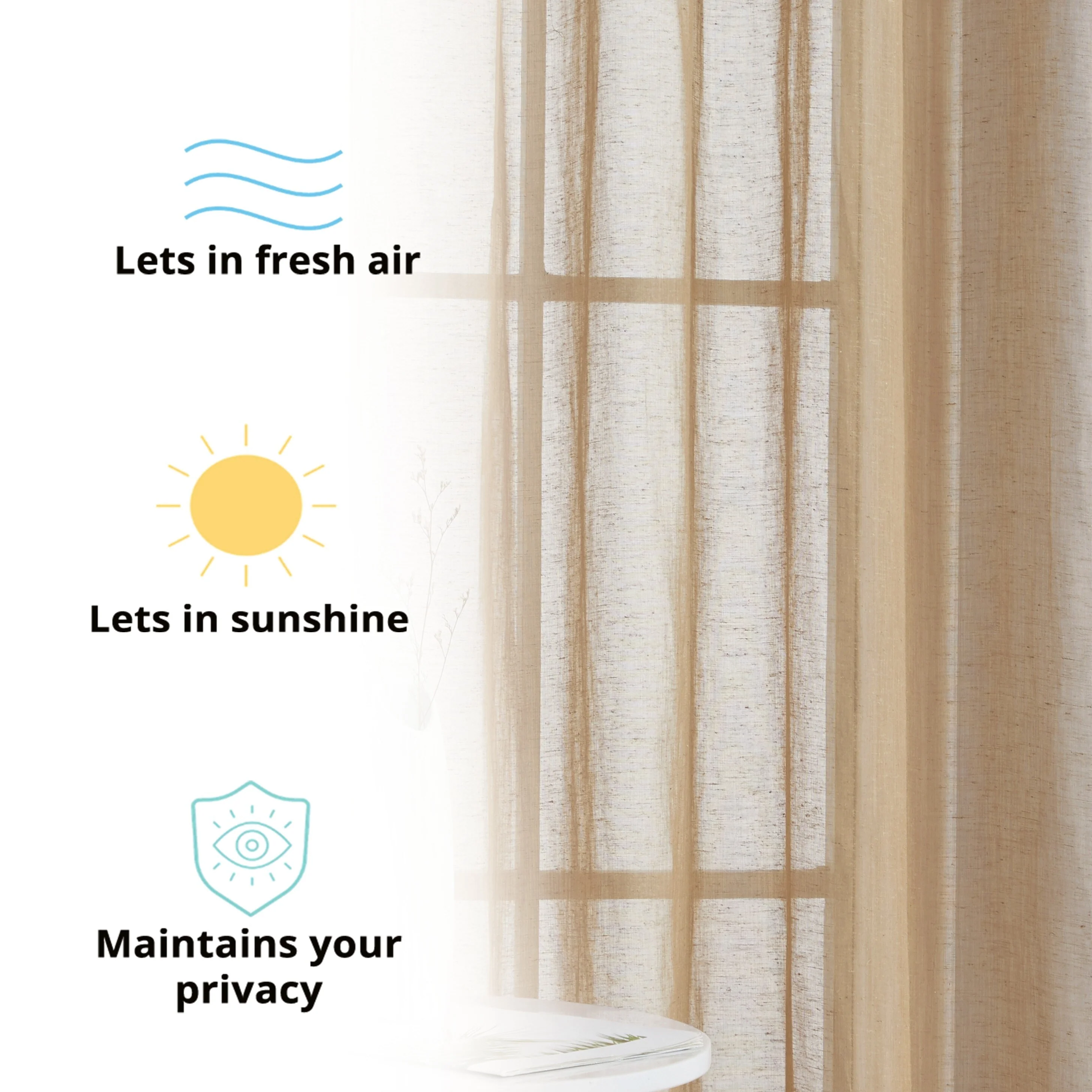 HLC.me Sierra Burlap Flax Linen Semi Sheer Light Filtering Transparent Window Grommet Thick Curtains Panels - Set of 2