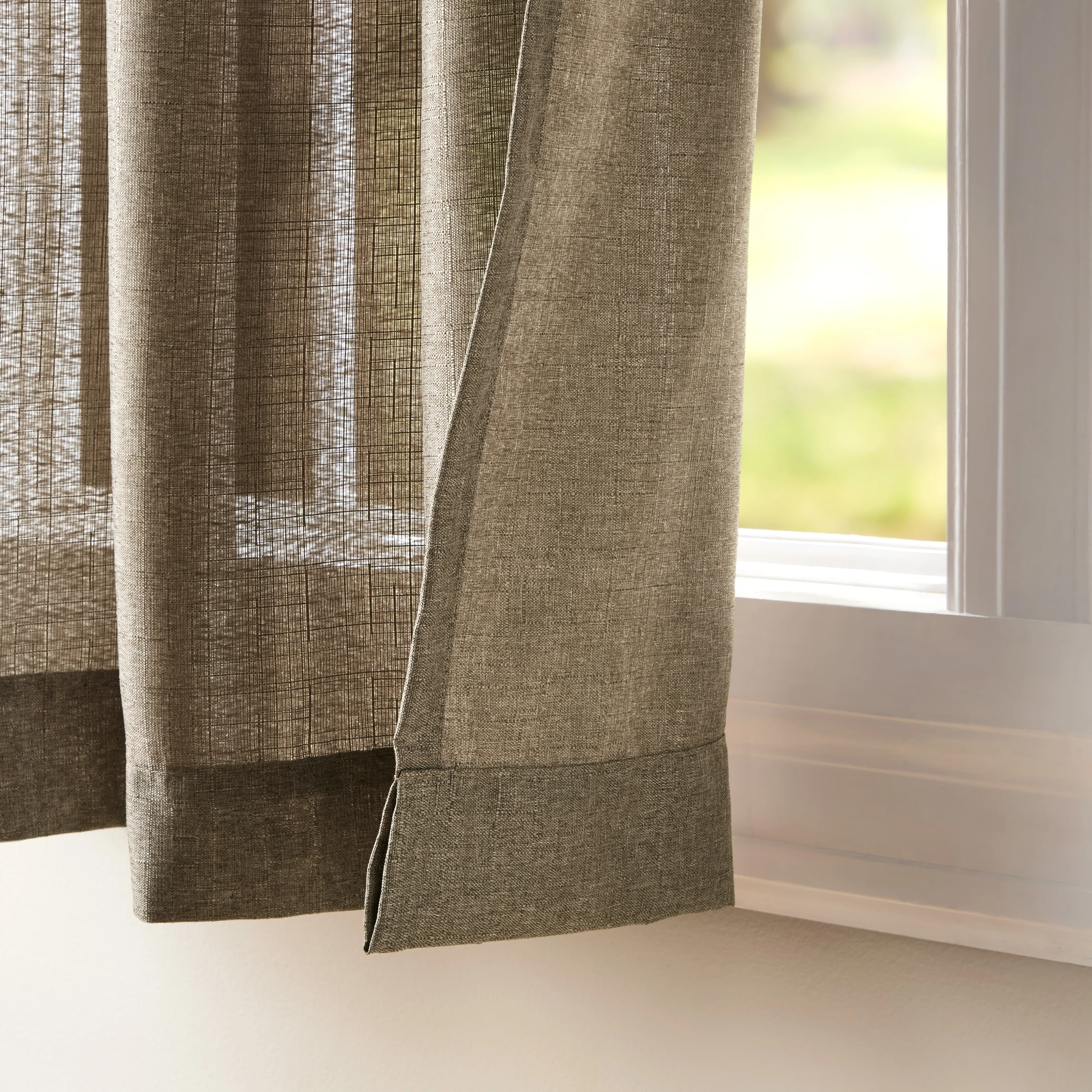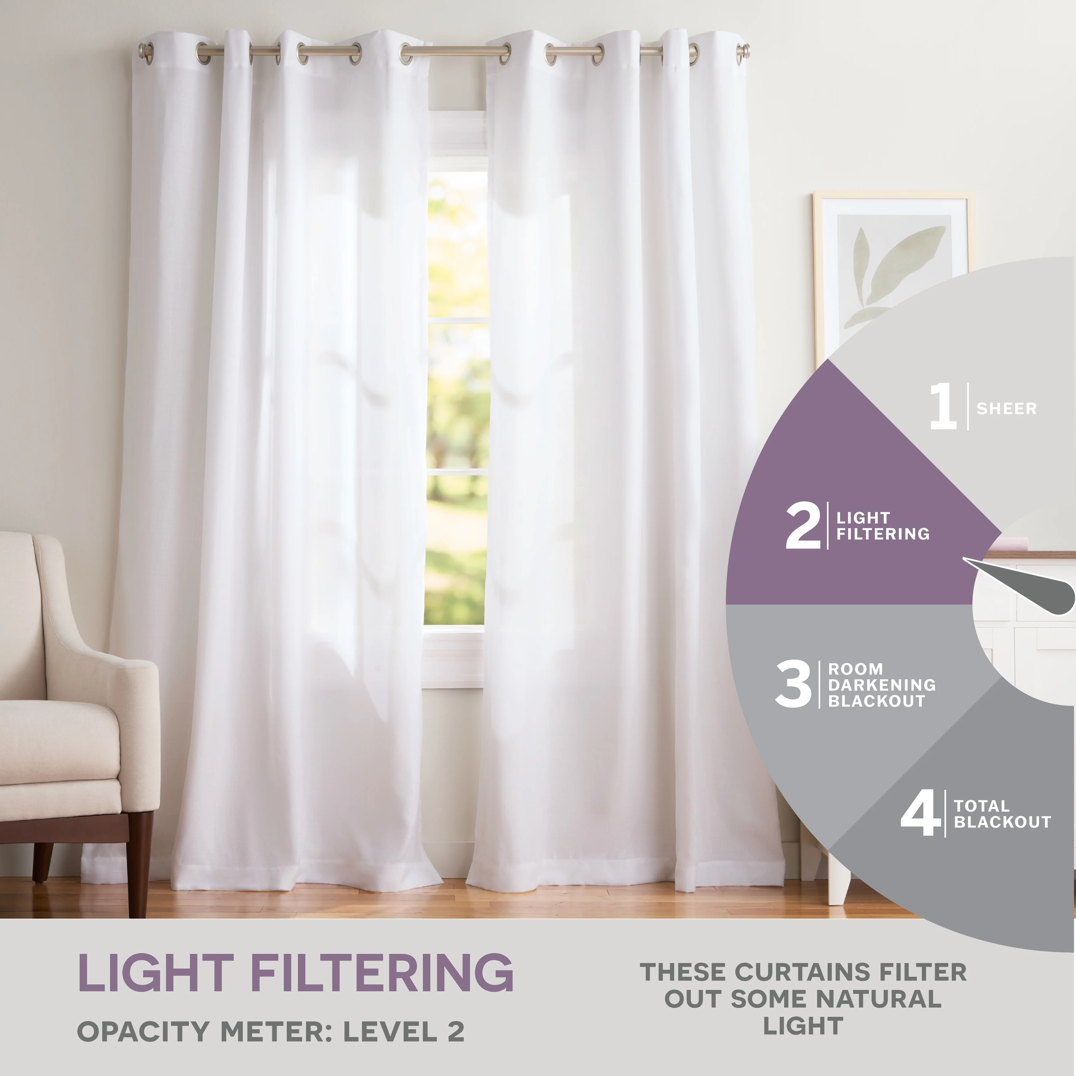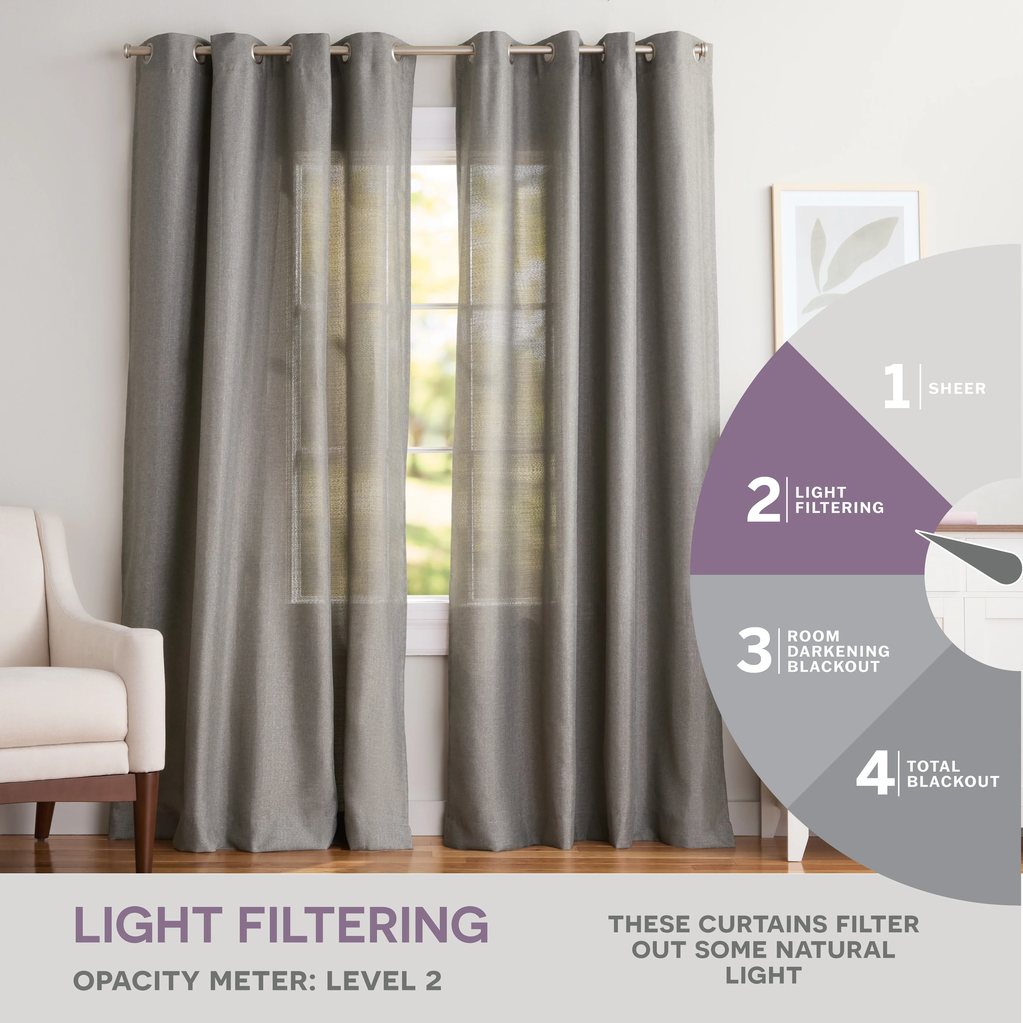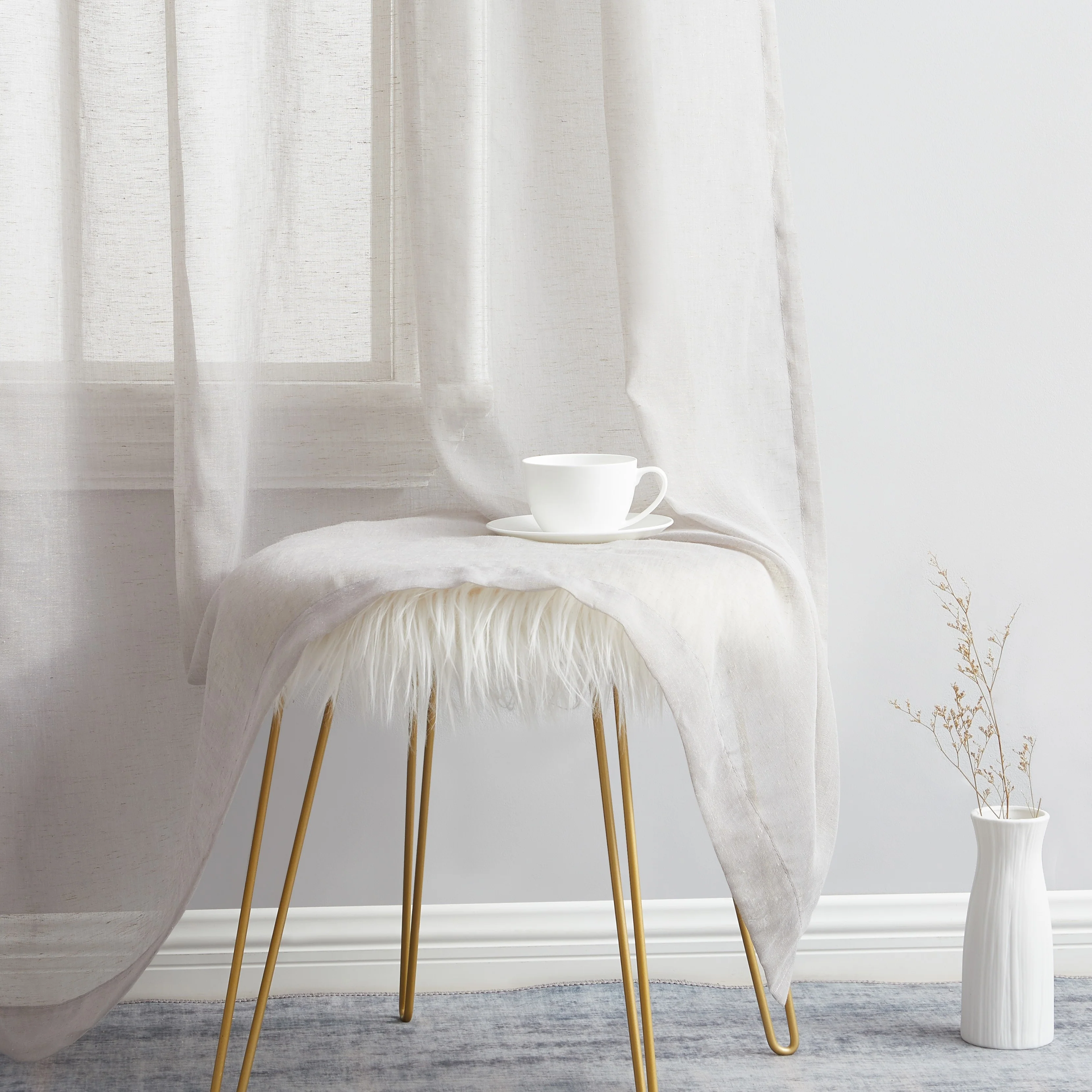 HLC.me Sierra Burlap Flax Linen Semi Sheer Light Filtering Transparent Window Grommet Thick Curtains Panels - Set of 2