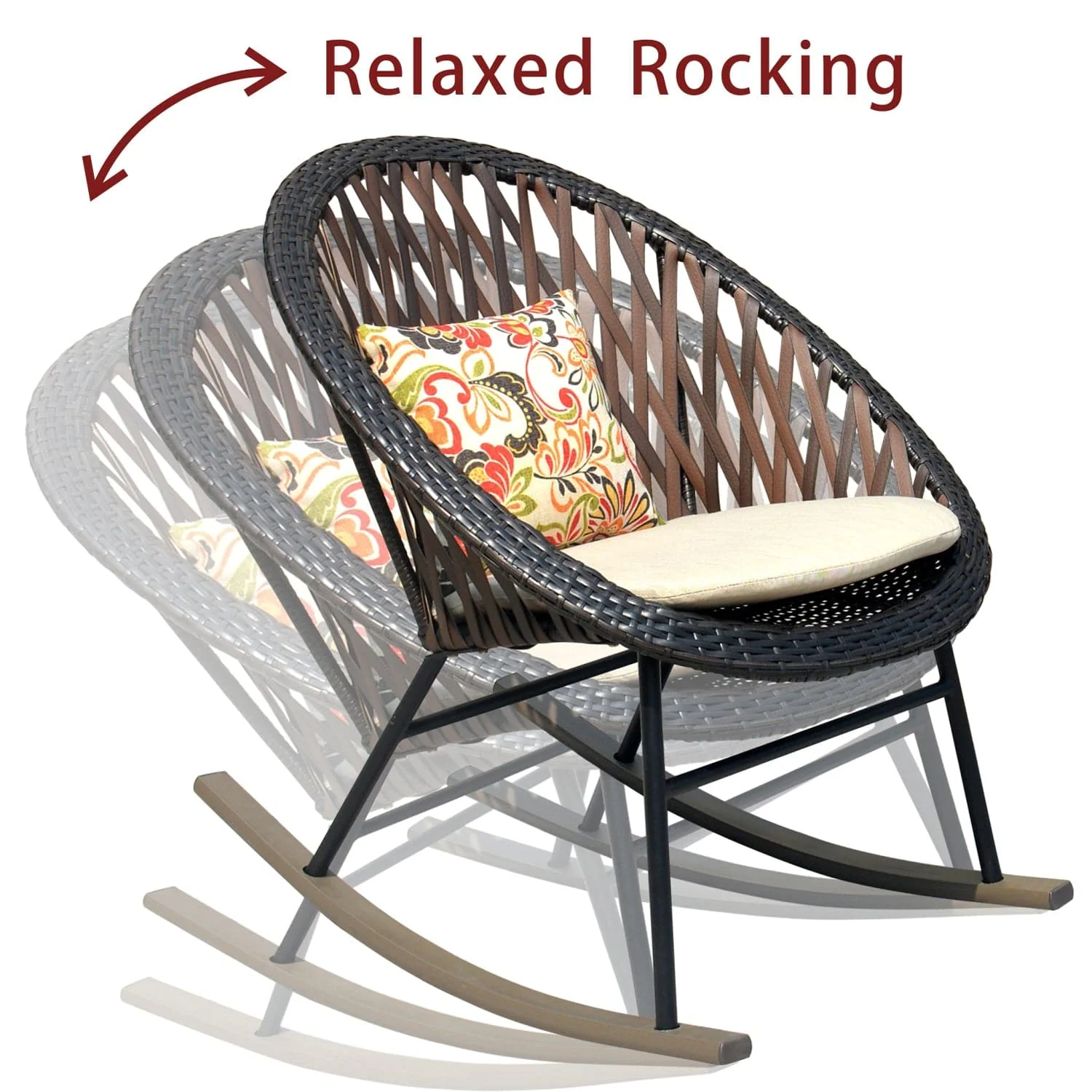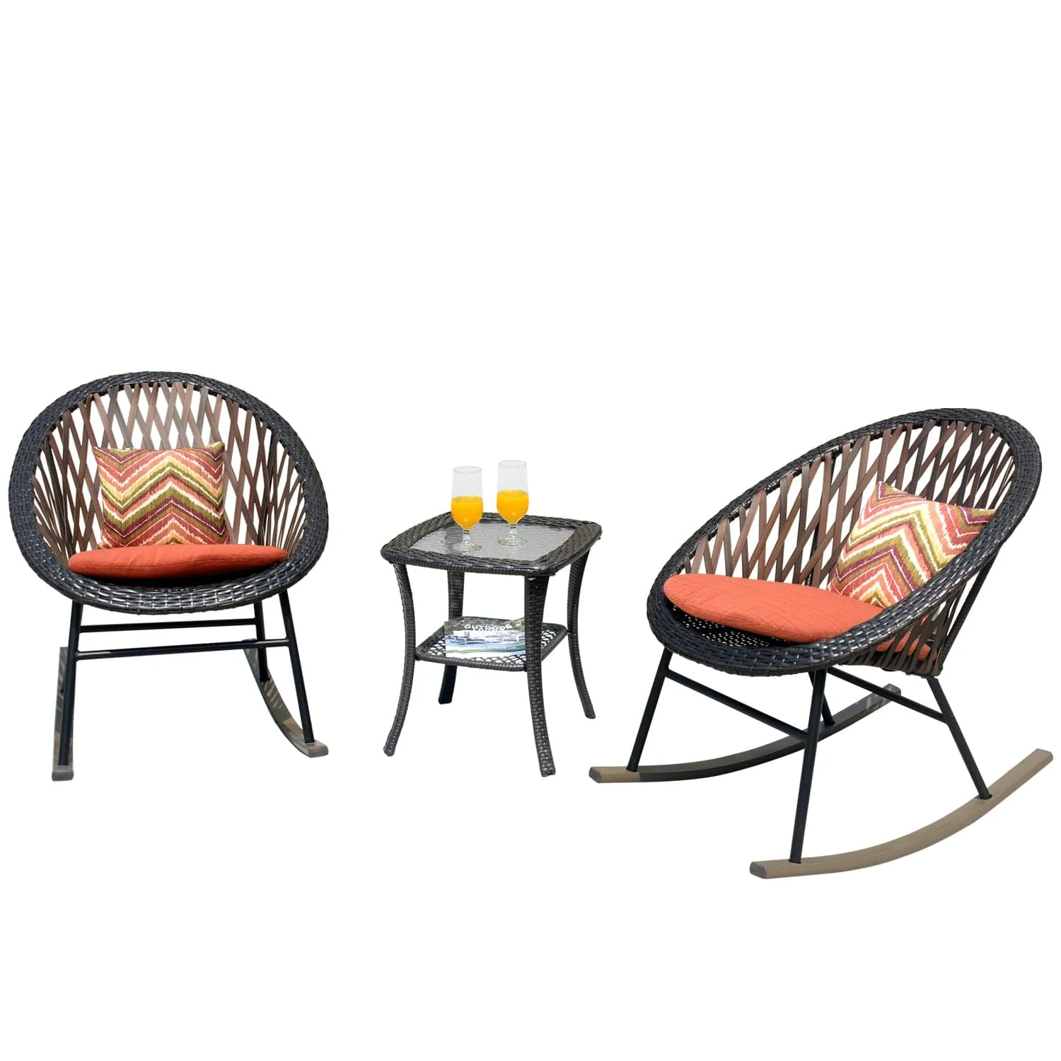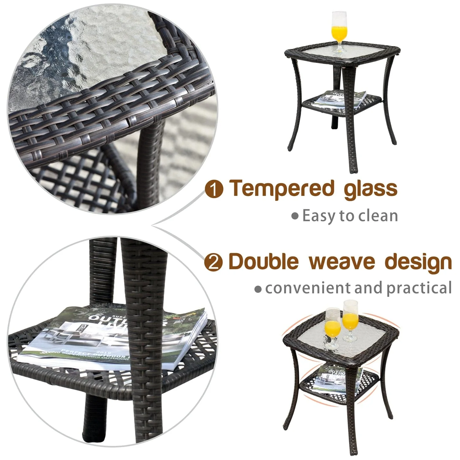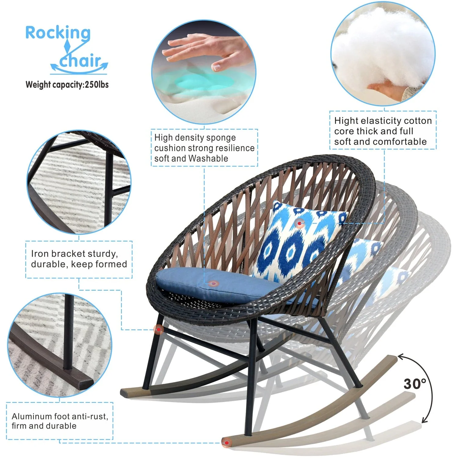 Ovios Patio 2 Pieces Outdoor Rocking Swivel Chairs with Glass Coffee Table