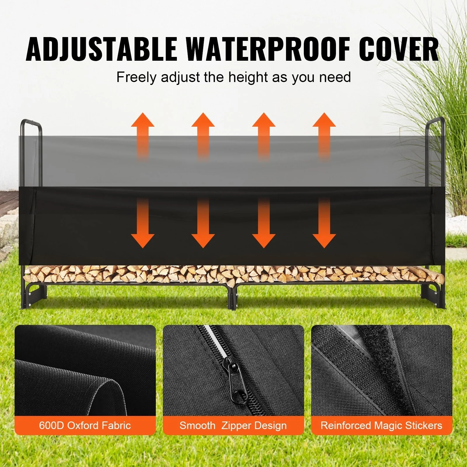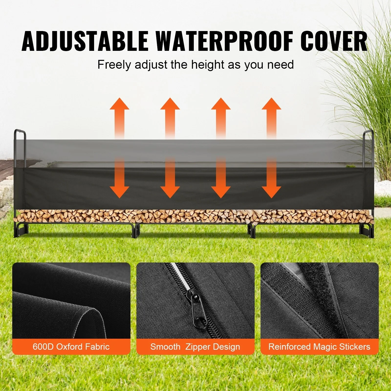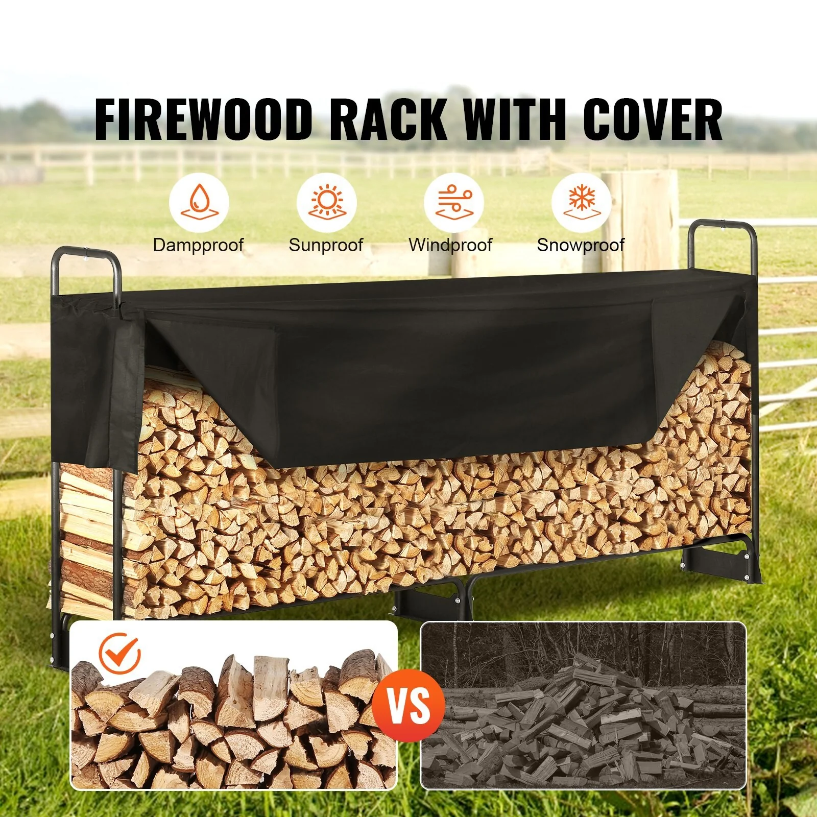 Outdoor Firewood Rack with Waterproof Cover Heavy Duty Log Holder