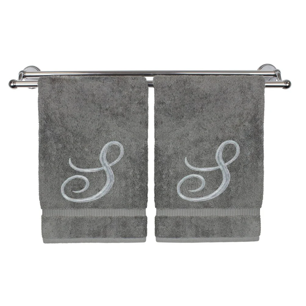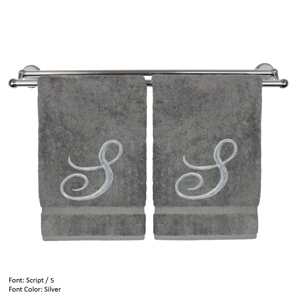 Silver Script Monogrammed Turkish Cotton 13x13-inch Washcloth (set of 2) - S