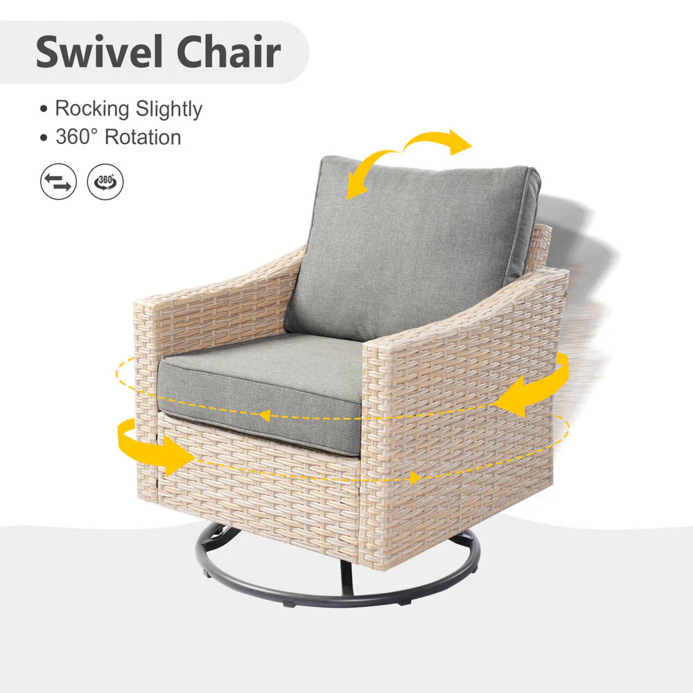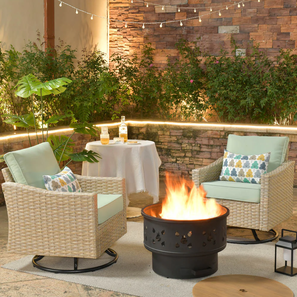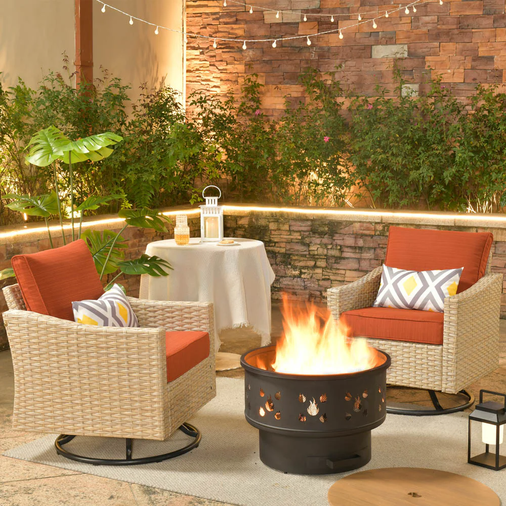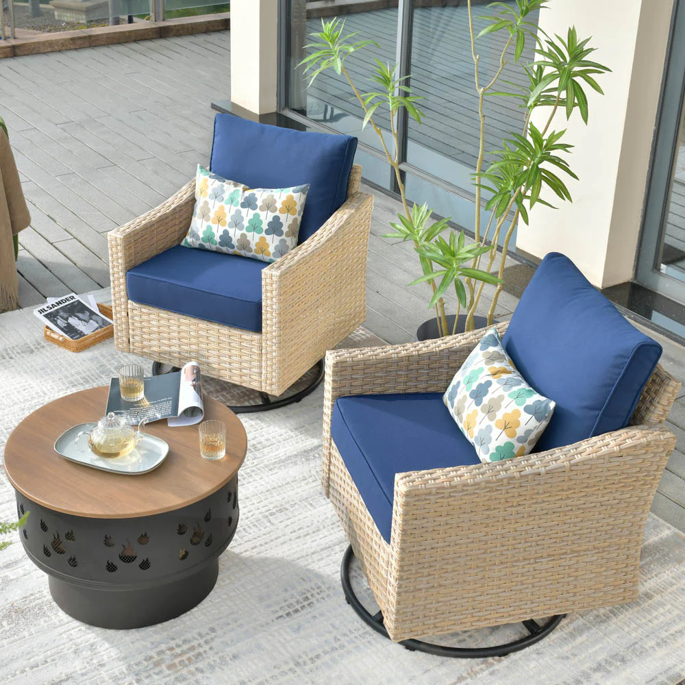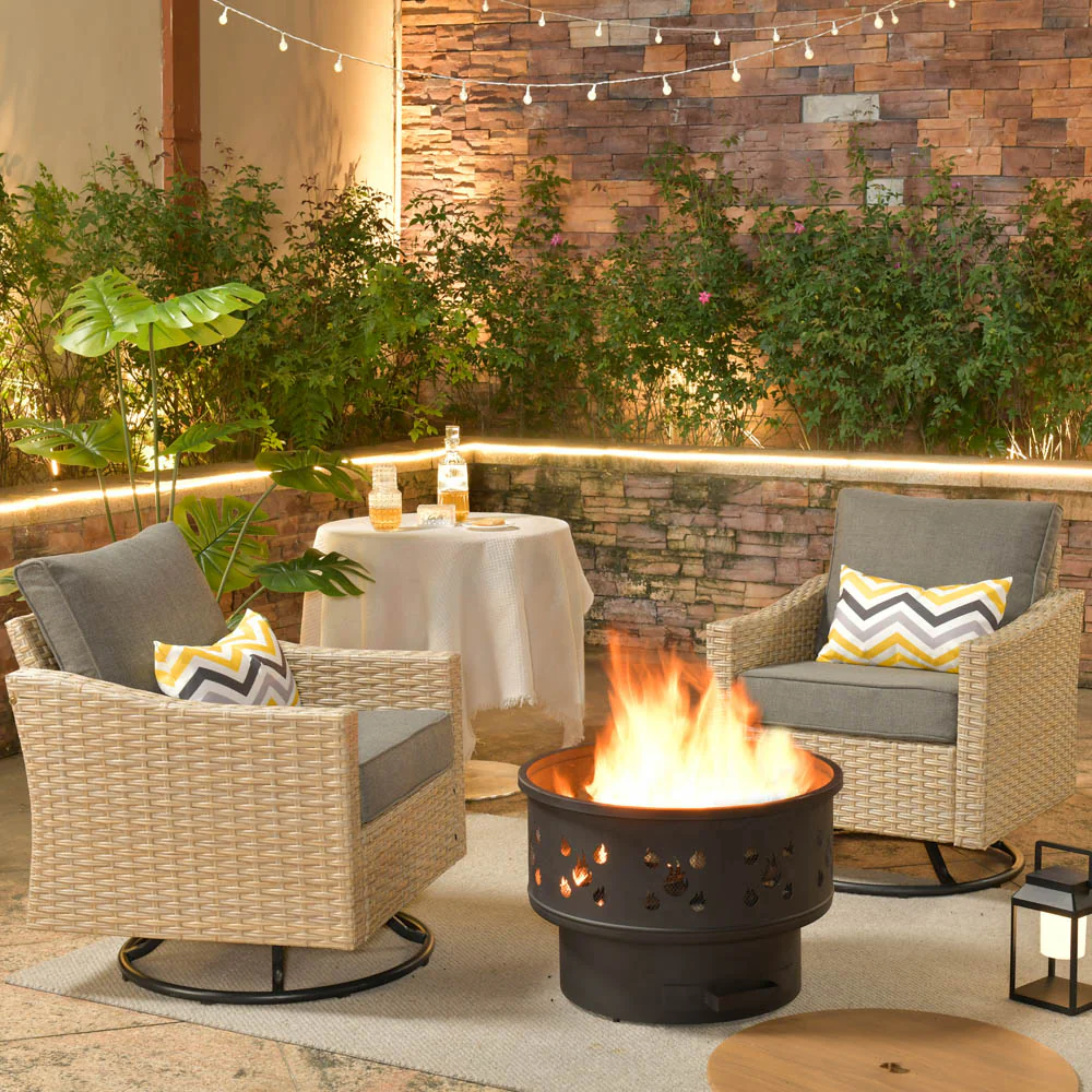 Ovios Athena Series Outdoor Patio Furniture 3-Piece Set with Fire Pit Swivel Chair