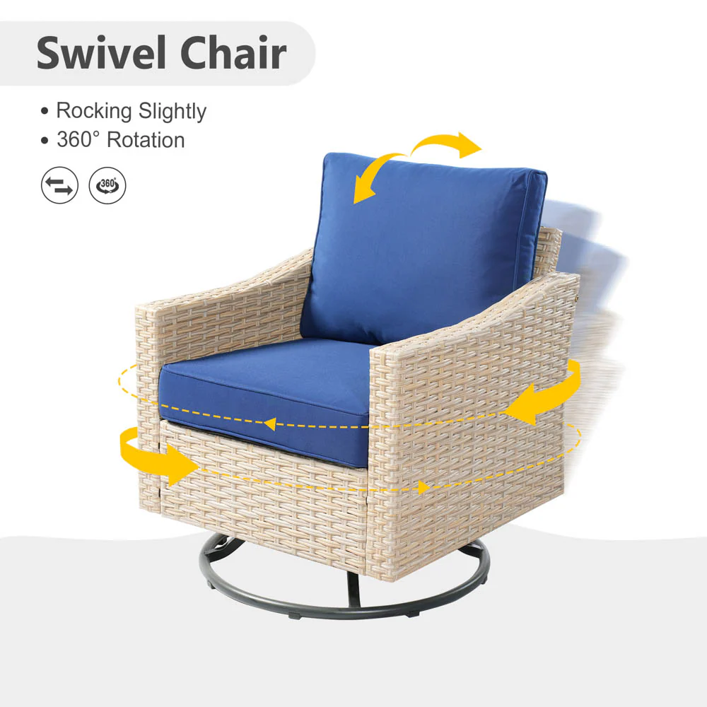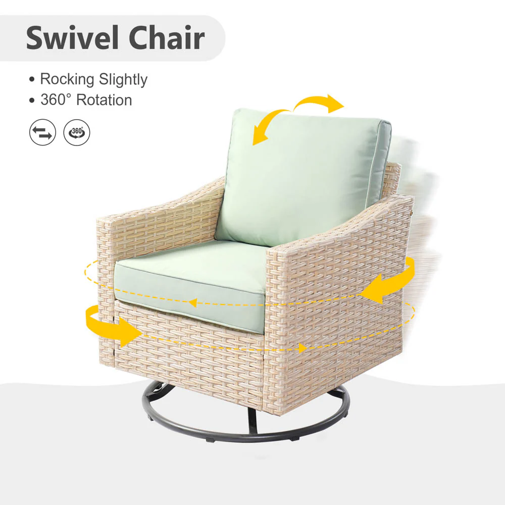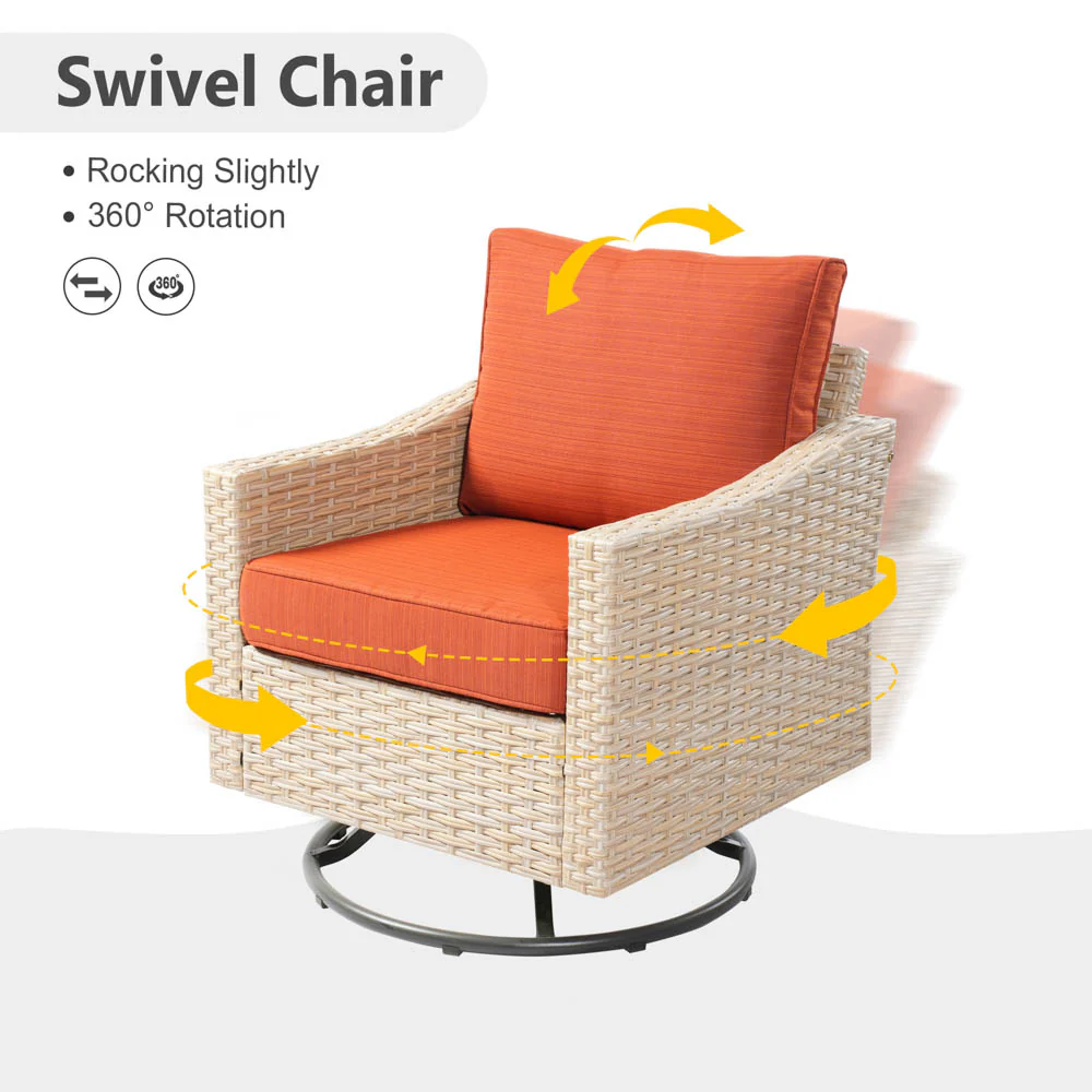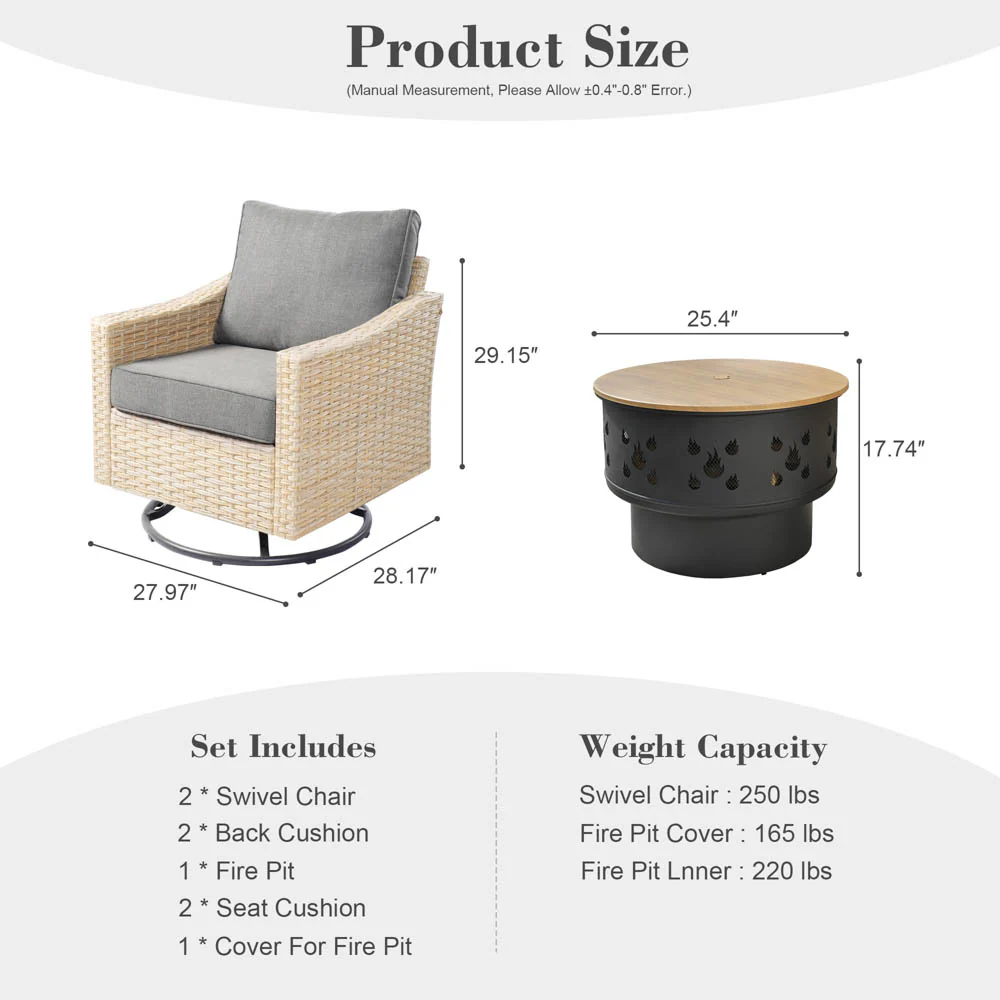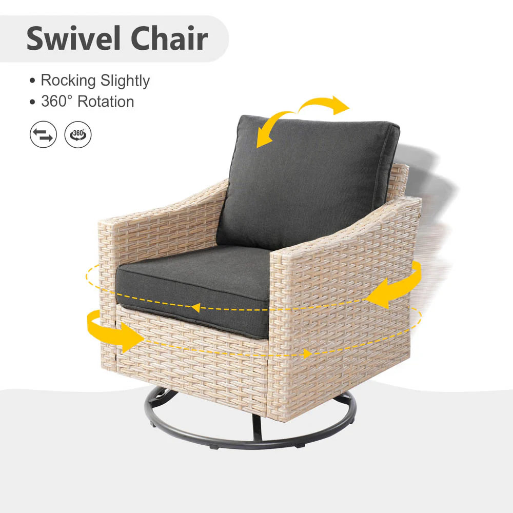 Ovios Athena Series Outdoor Patio Furniture 3-Piece Set with Fire Pit Swivel Chair