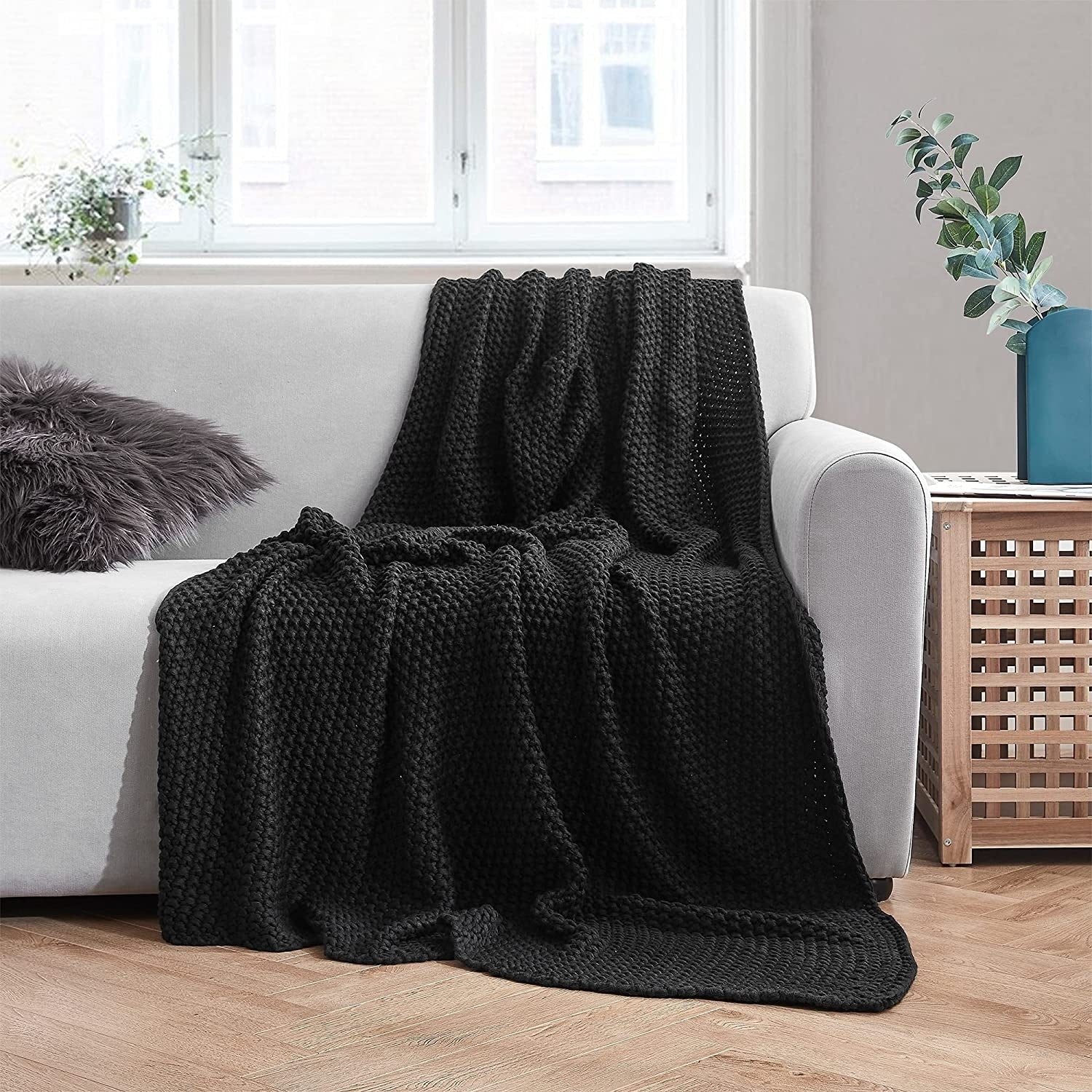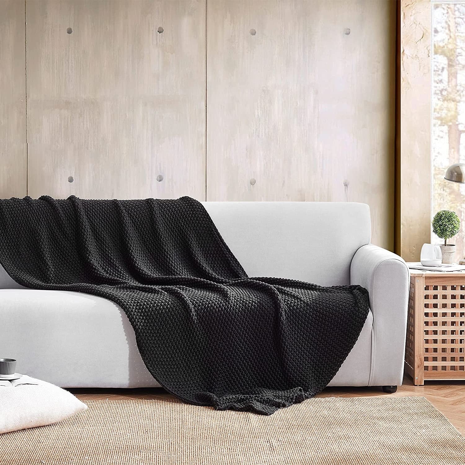 Coffee Wicker Black Cushion