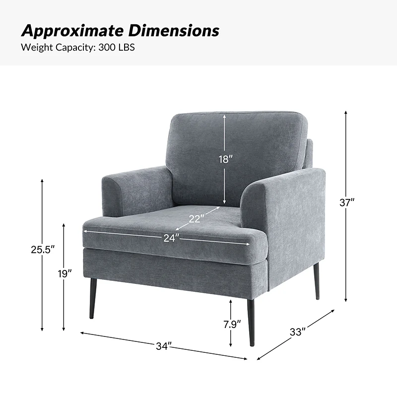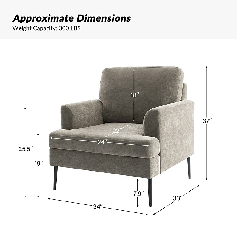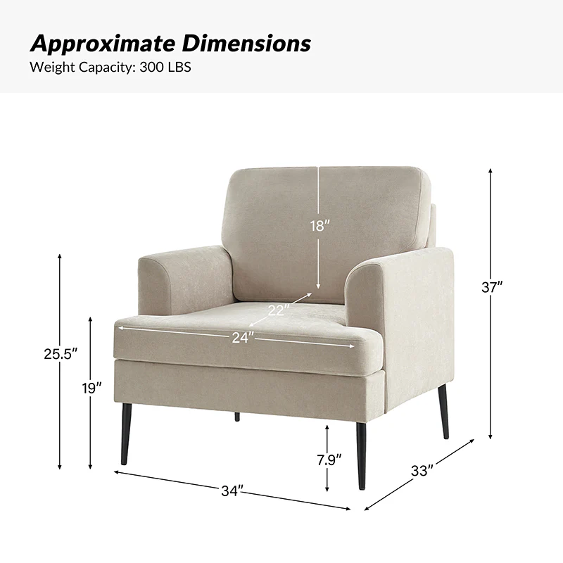 Geoffrey Modern Armchair with Detachable Back Cushion