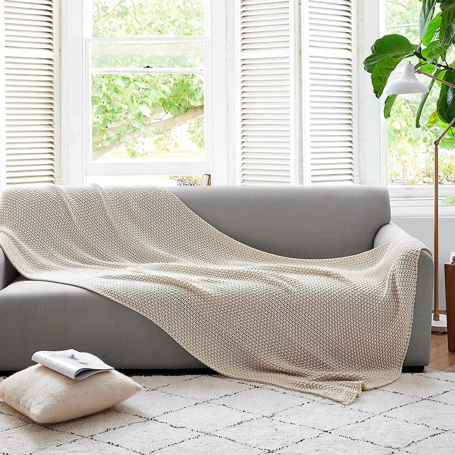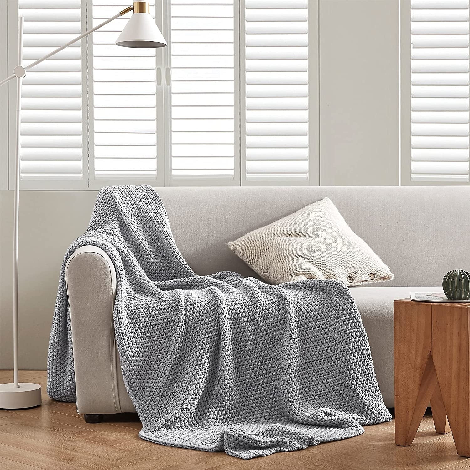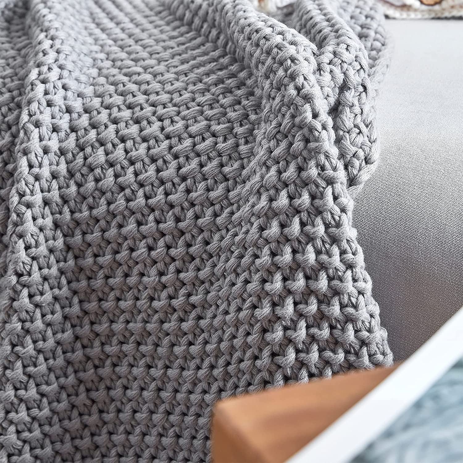 Coffee Wicker Light Grey Cushion