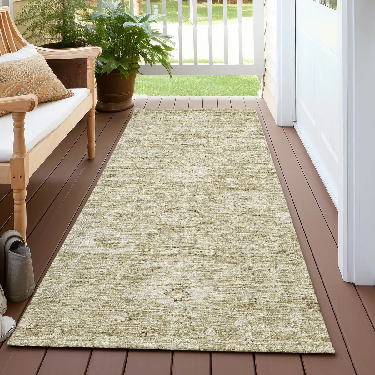 Machine Washable Indoor/ Outdoor Vintage Traditional Chantille Rug
