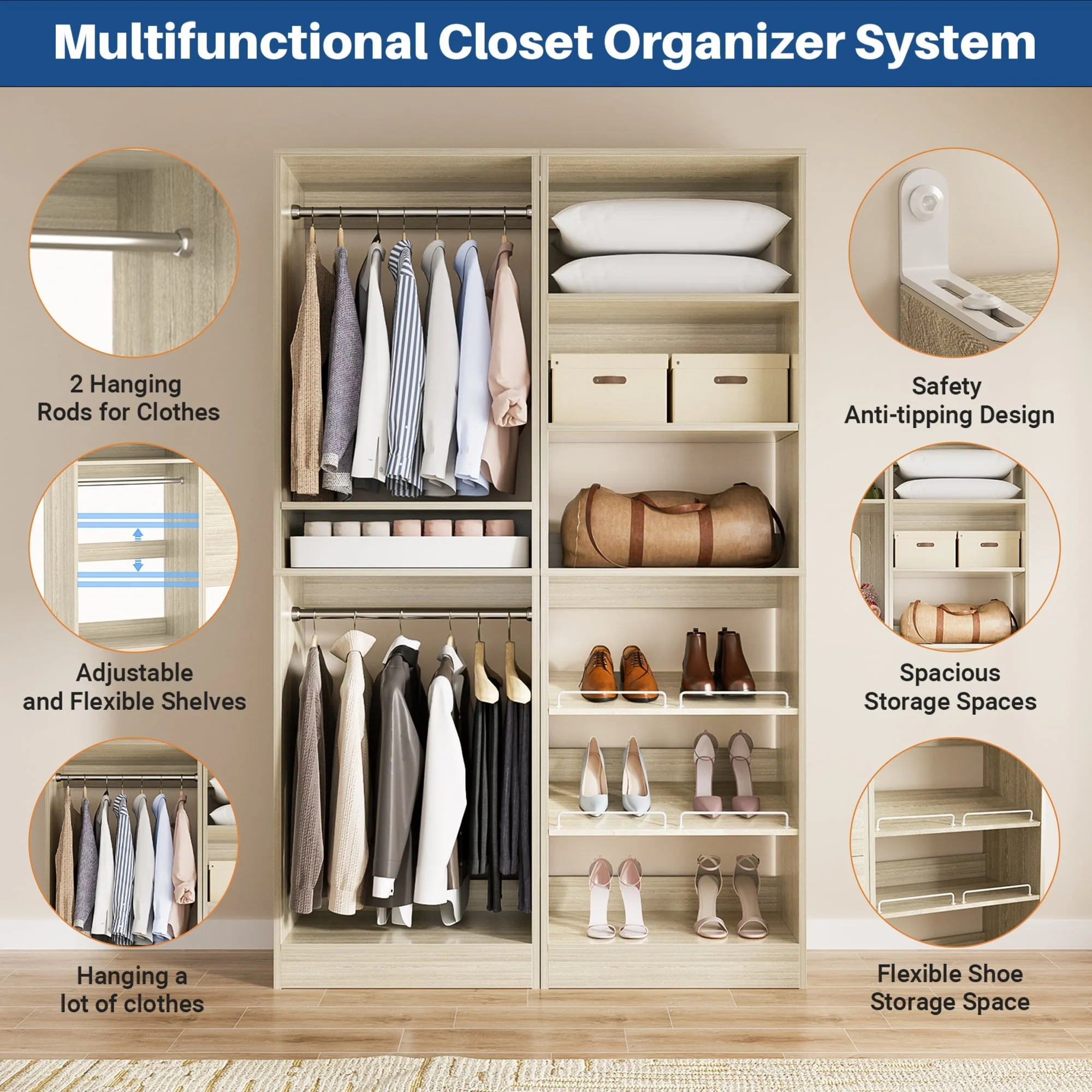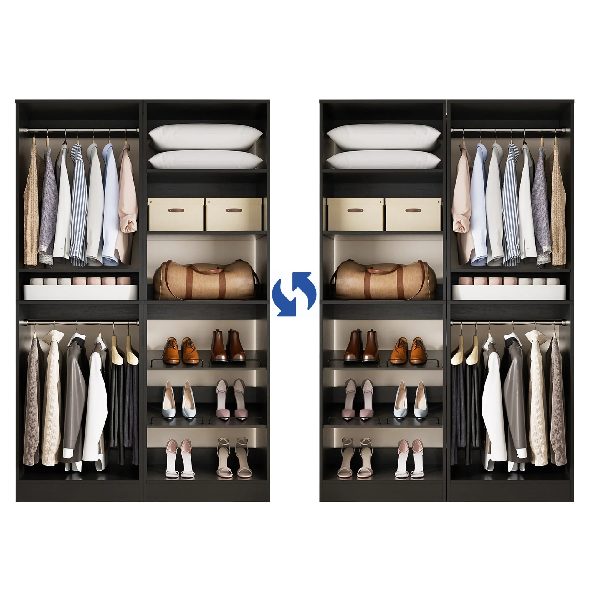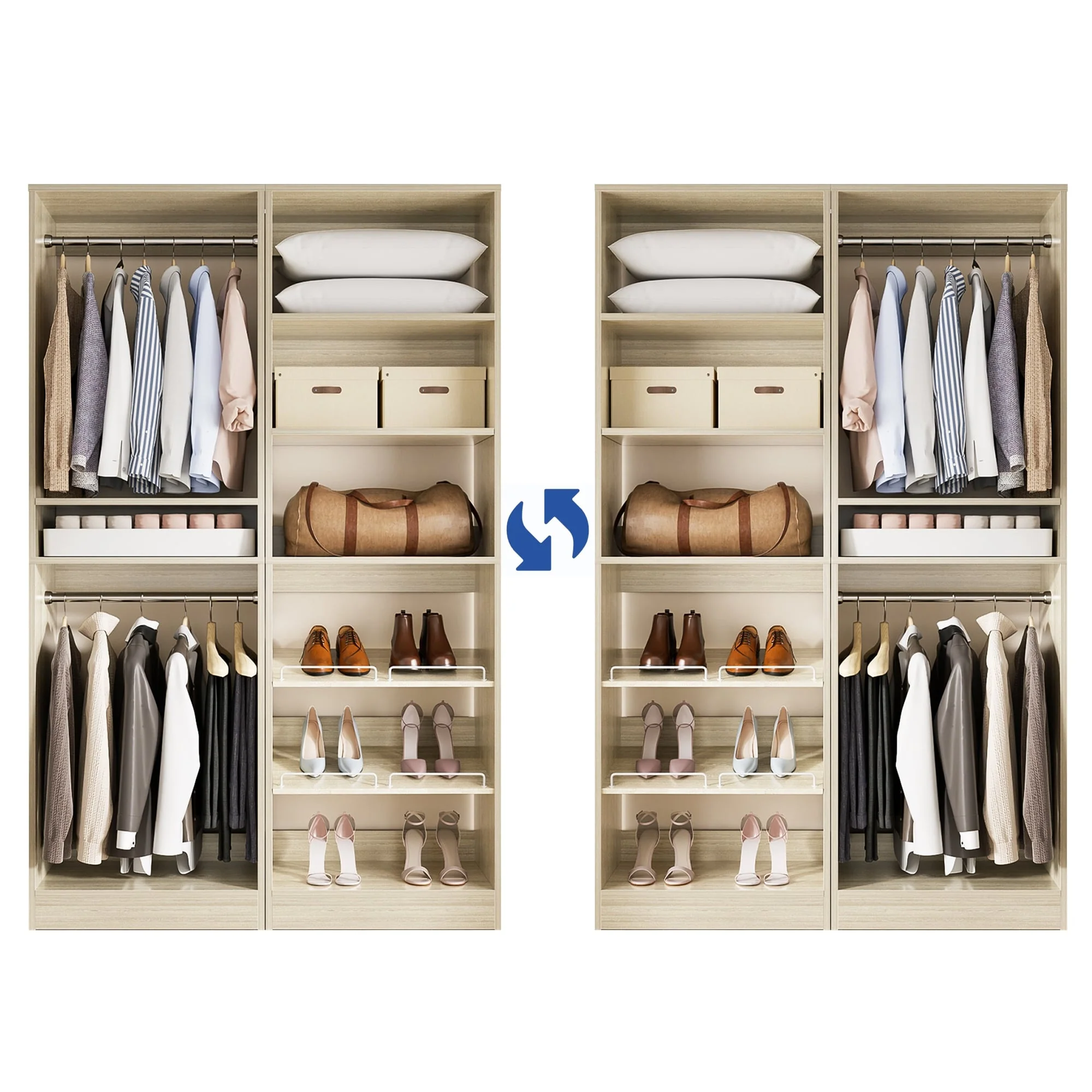 Cimly Set of 2 Freestanding Closet System with Shoe Racks and Hanging Rods for Reach-in/ Walk-in Closet