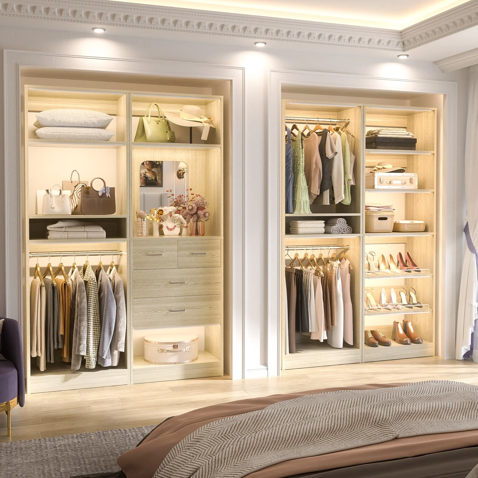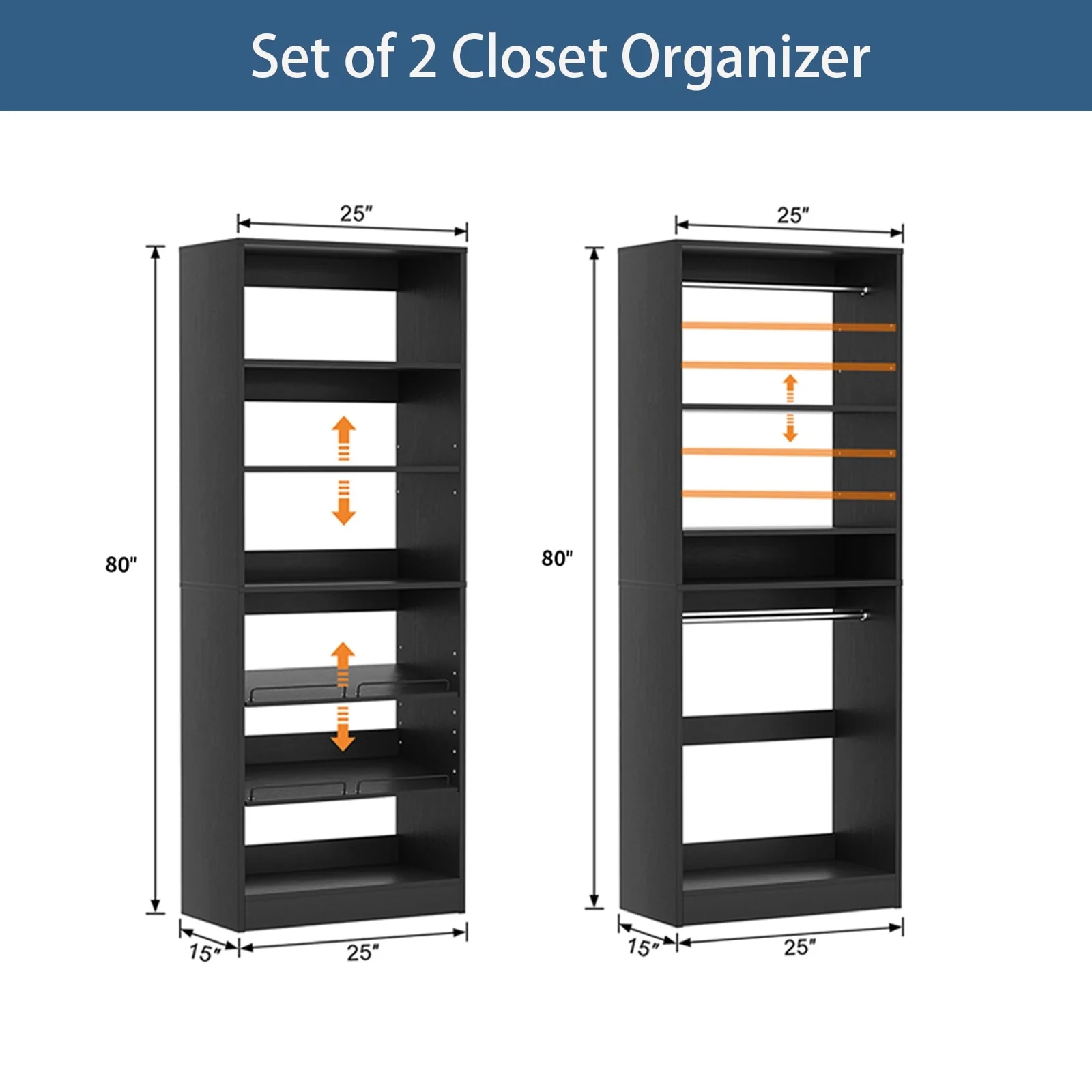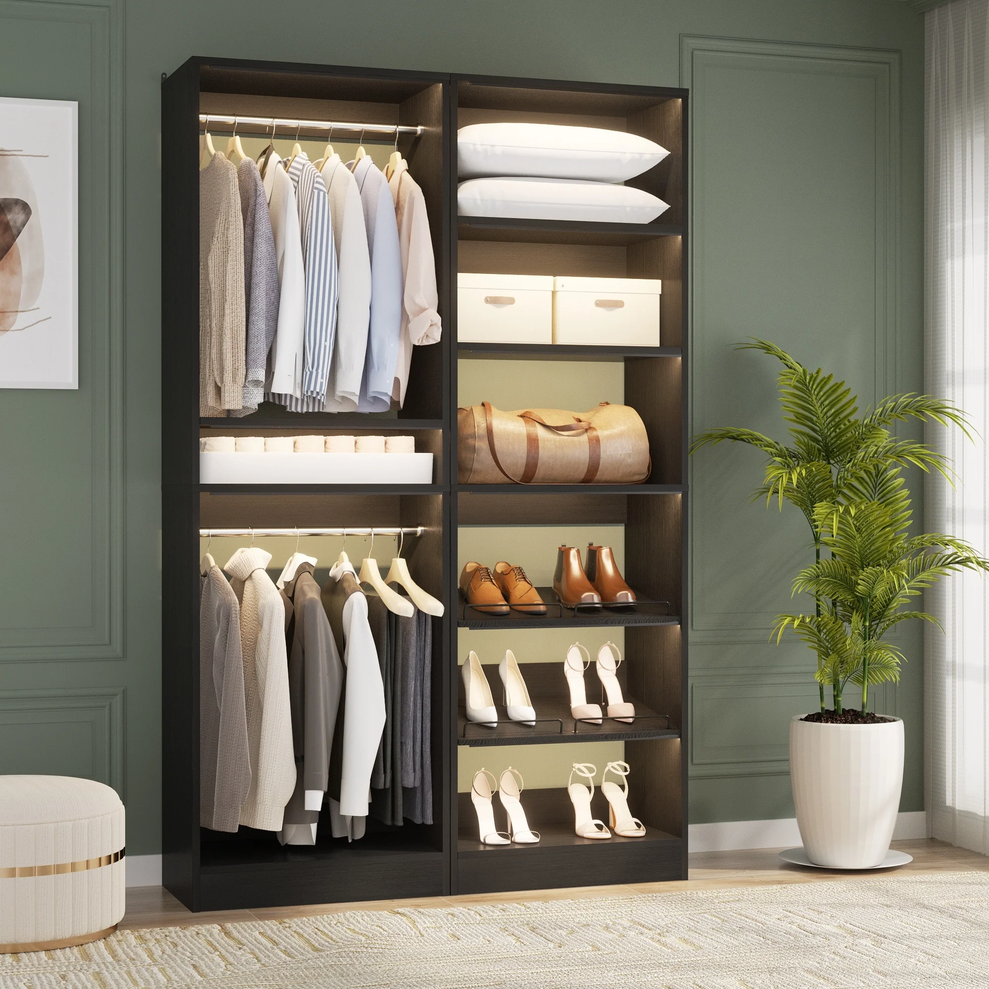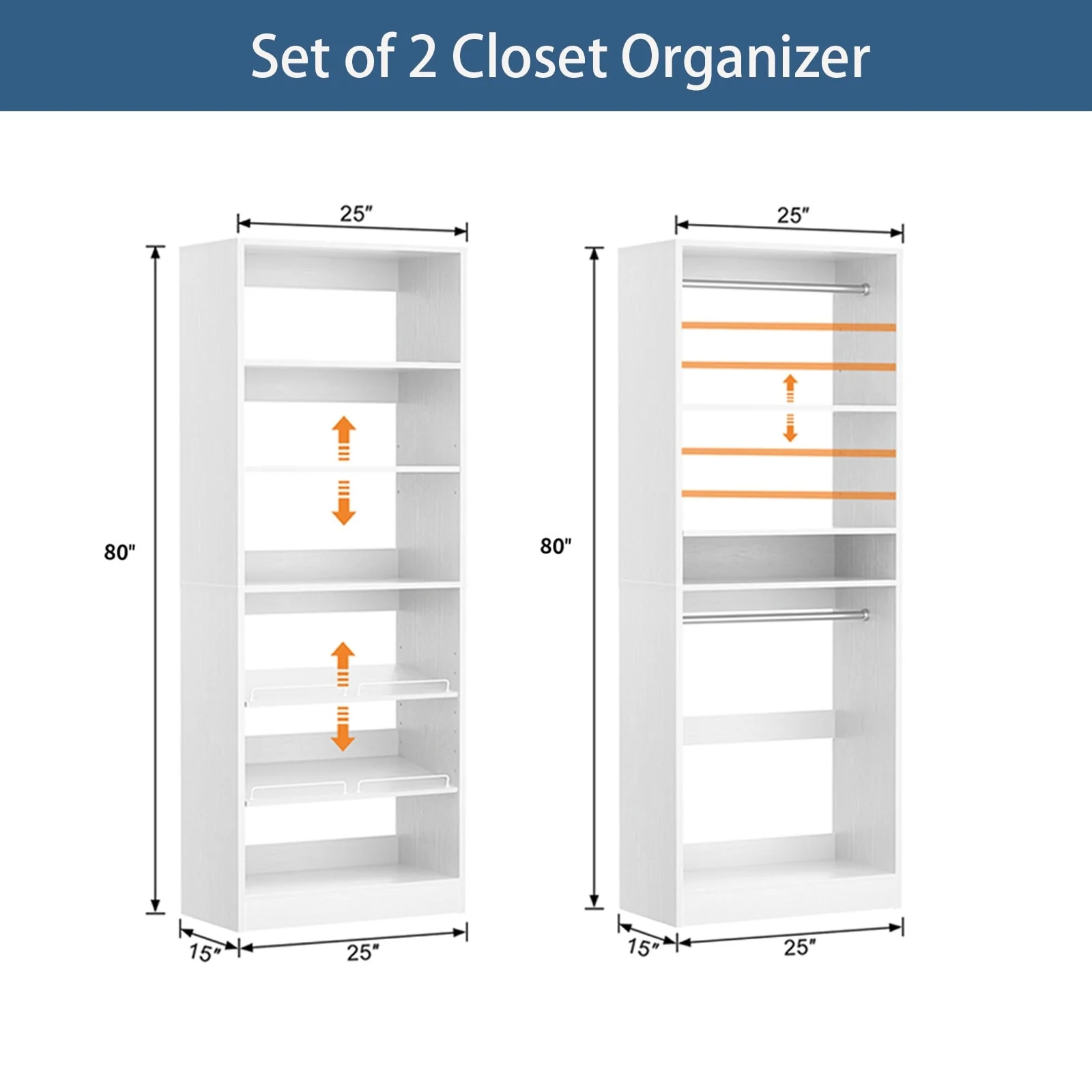 Cimly Set of 2 Freestanding Closet System with Shoe Racks and Hanging Rods for Reach-in/ Walk-in Closet