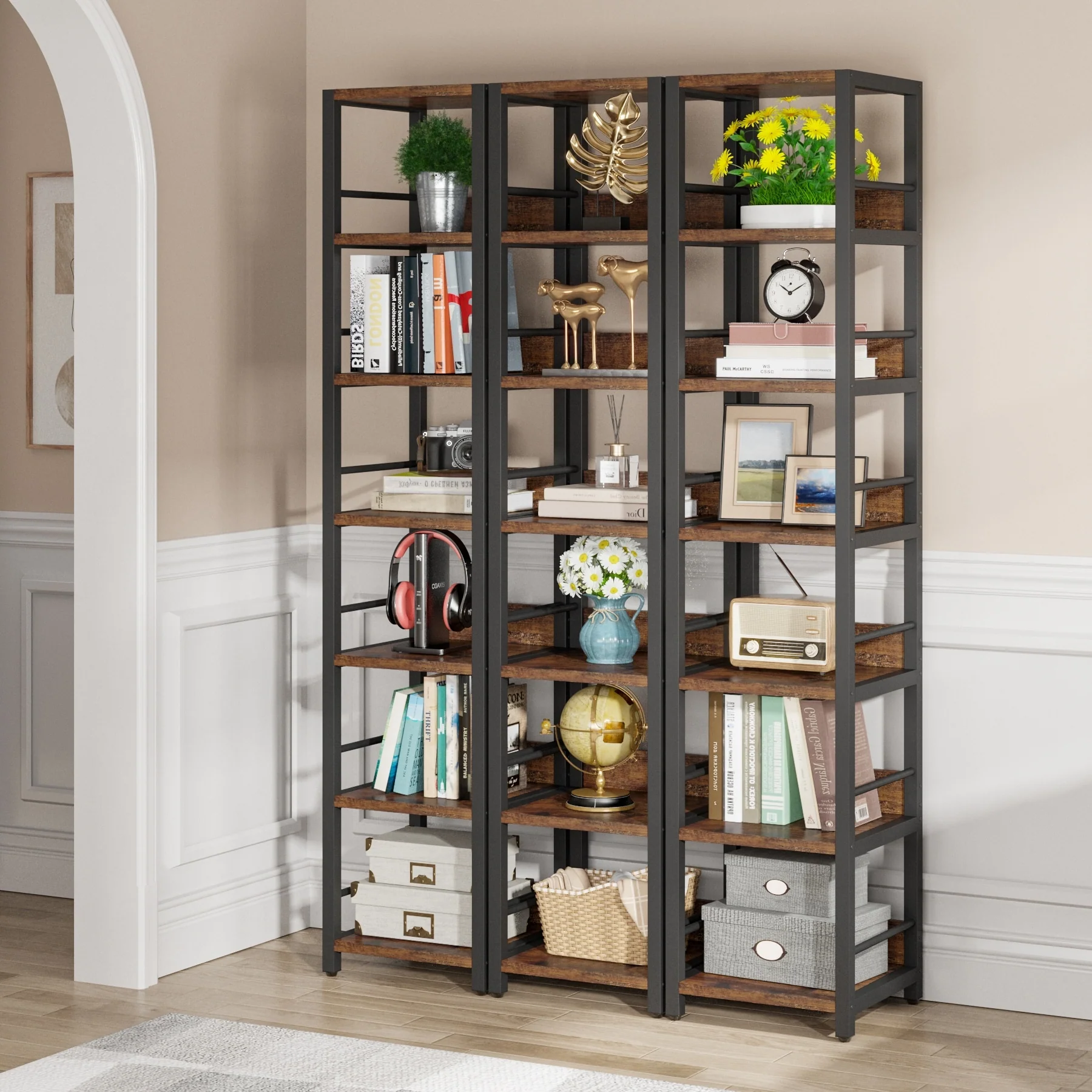 6-Tier Bookcase, 71 Inches Industrial Bookshelves and Bookcases