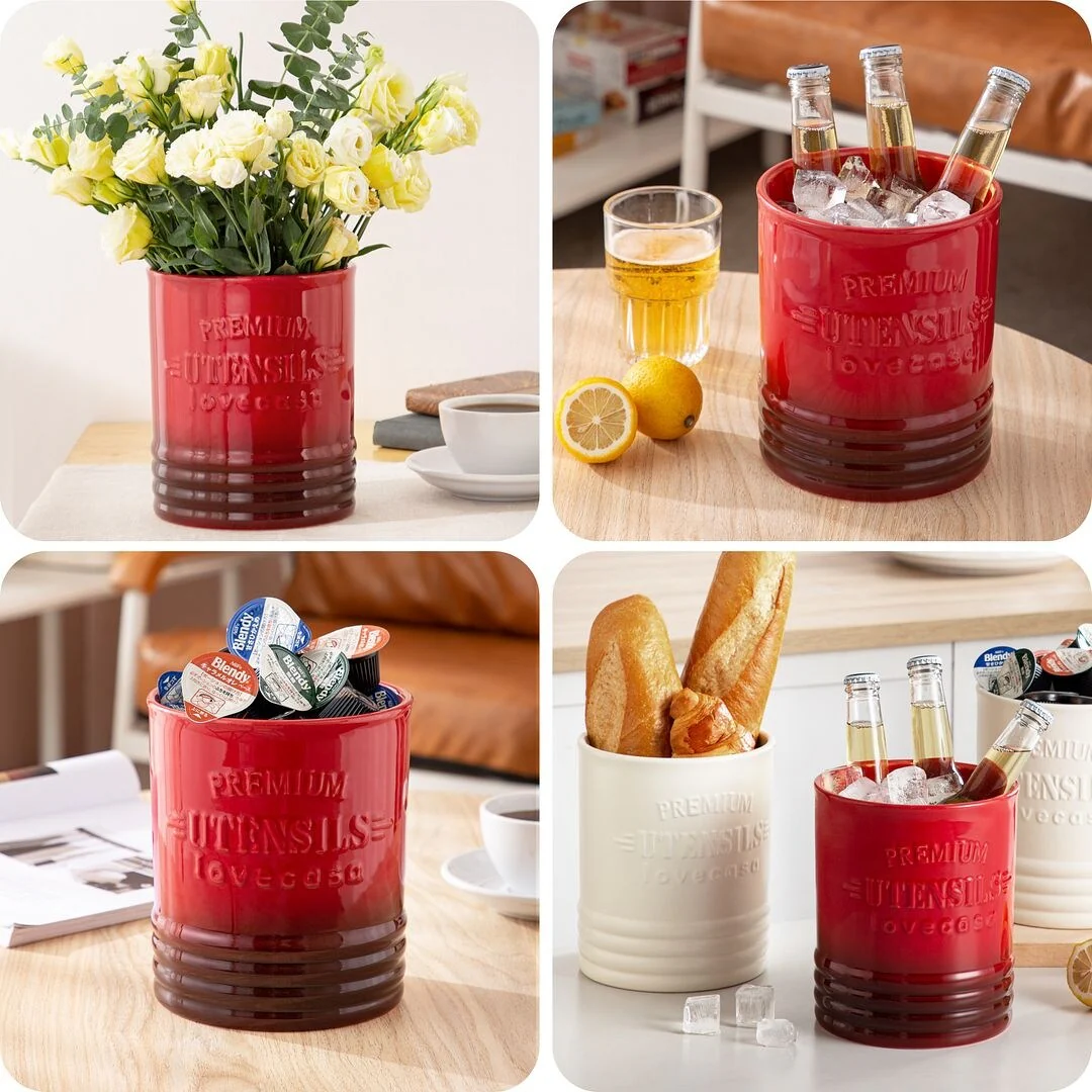 LOVECASA Ceramic 7.2" Large Utensil Holder for Kitchen Countertop
