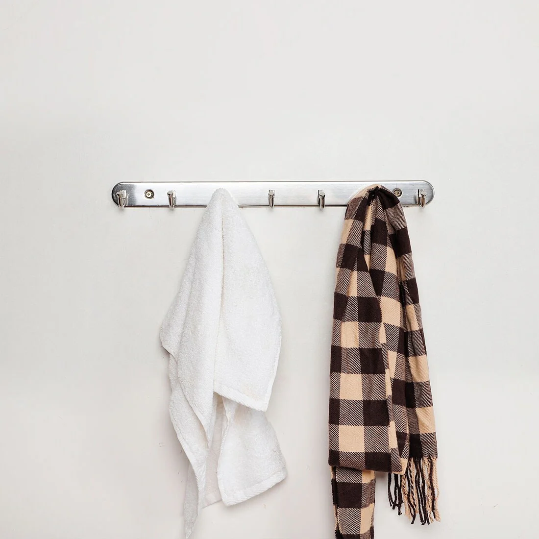 7 Hooks Stainless Steel Door Wall Mounted Clothes Bags Coat Hook Rack - Silver Tone