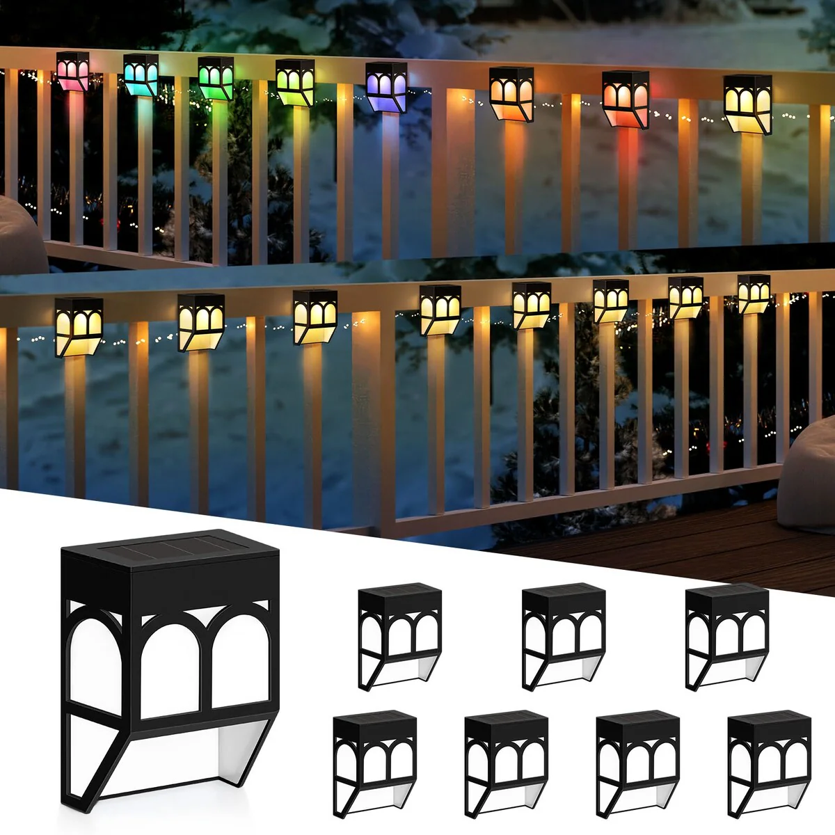 Solar Lights Outdoor, 2 Modes Decorative LED Solar Fence Lights for Fence, Patio, Yard, Pathway, 8 Pack