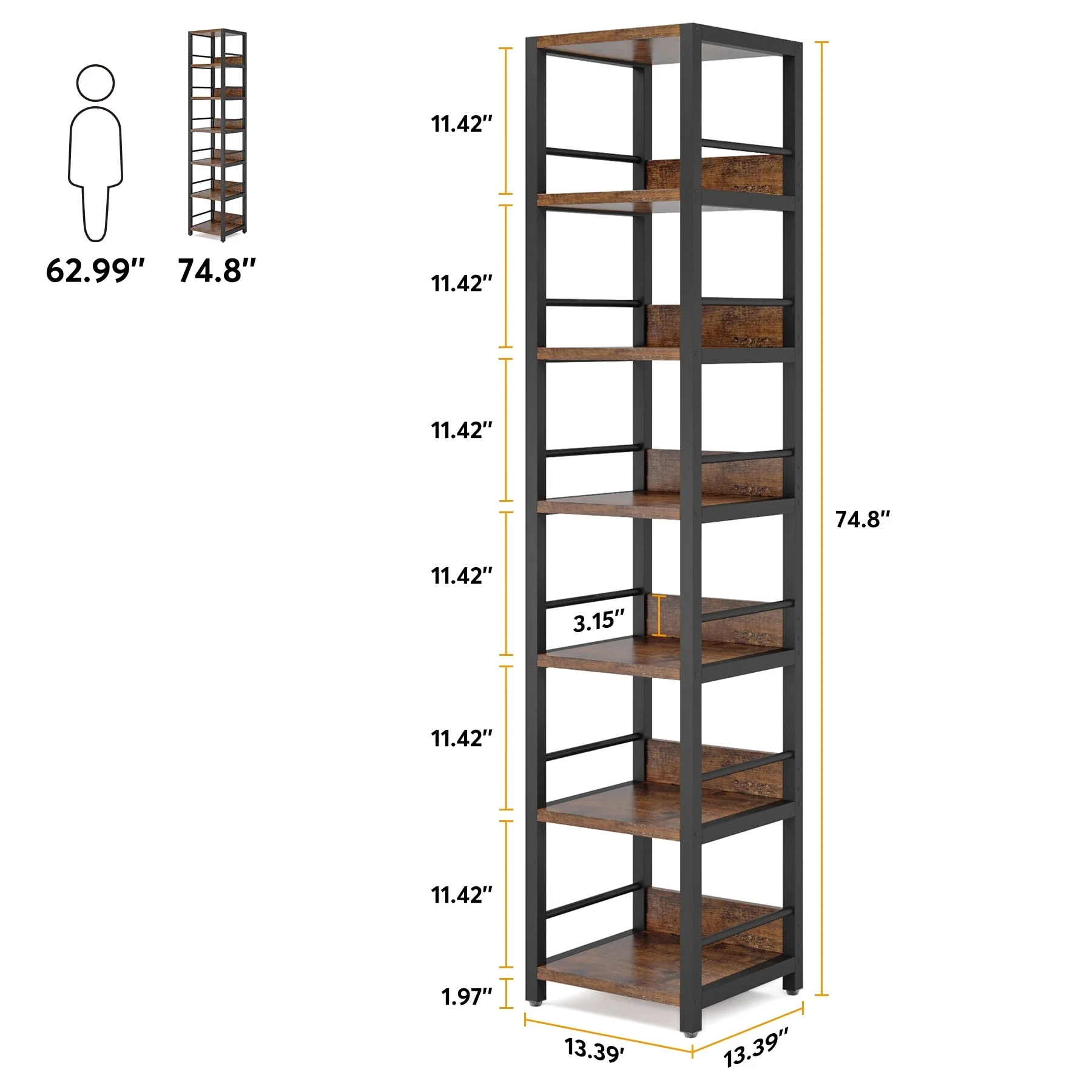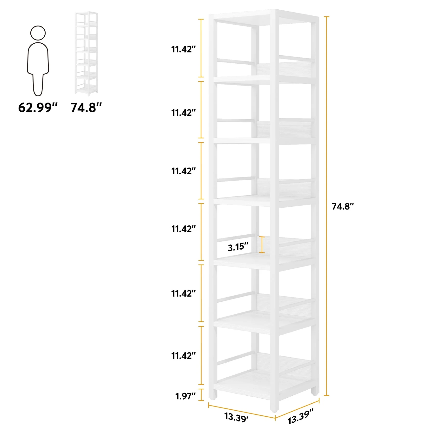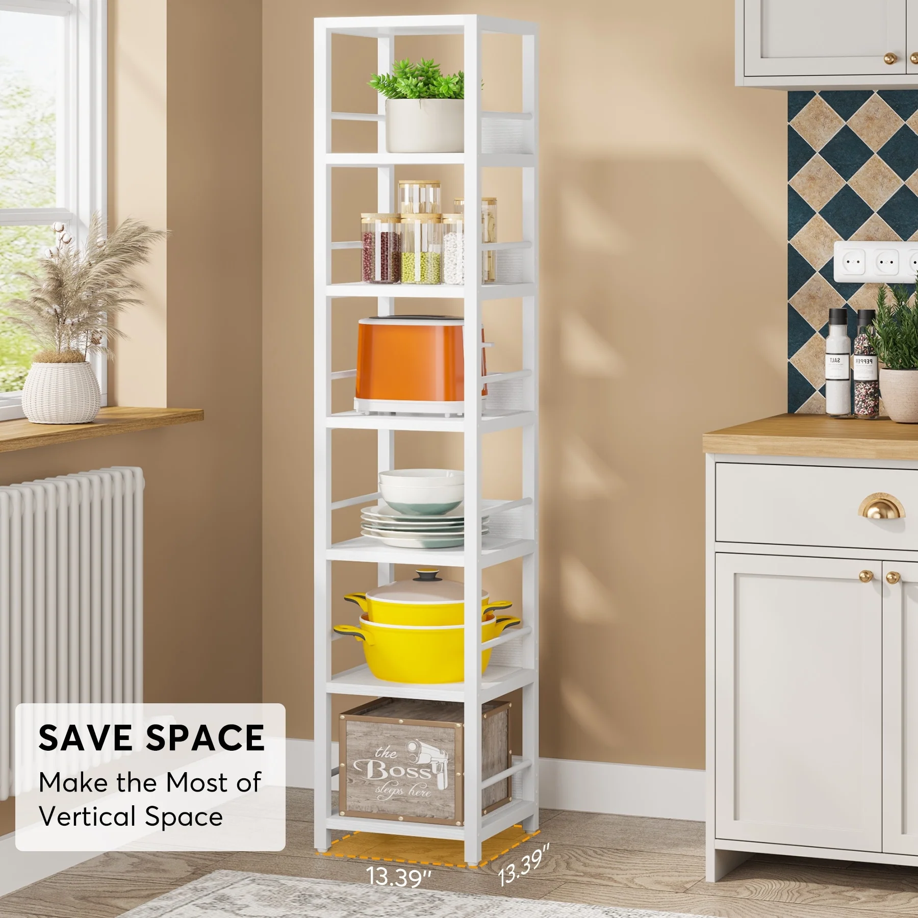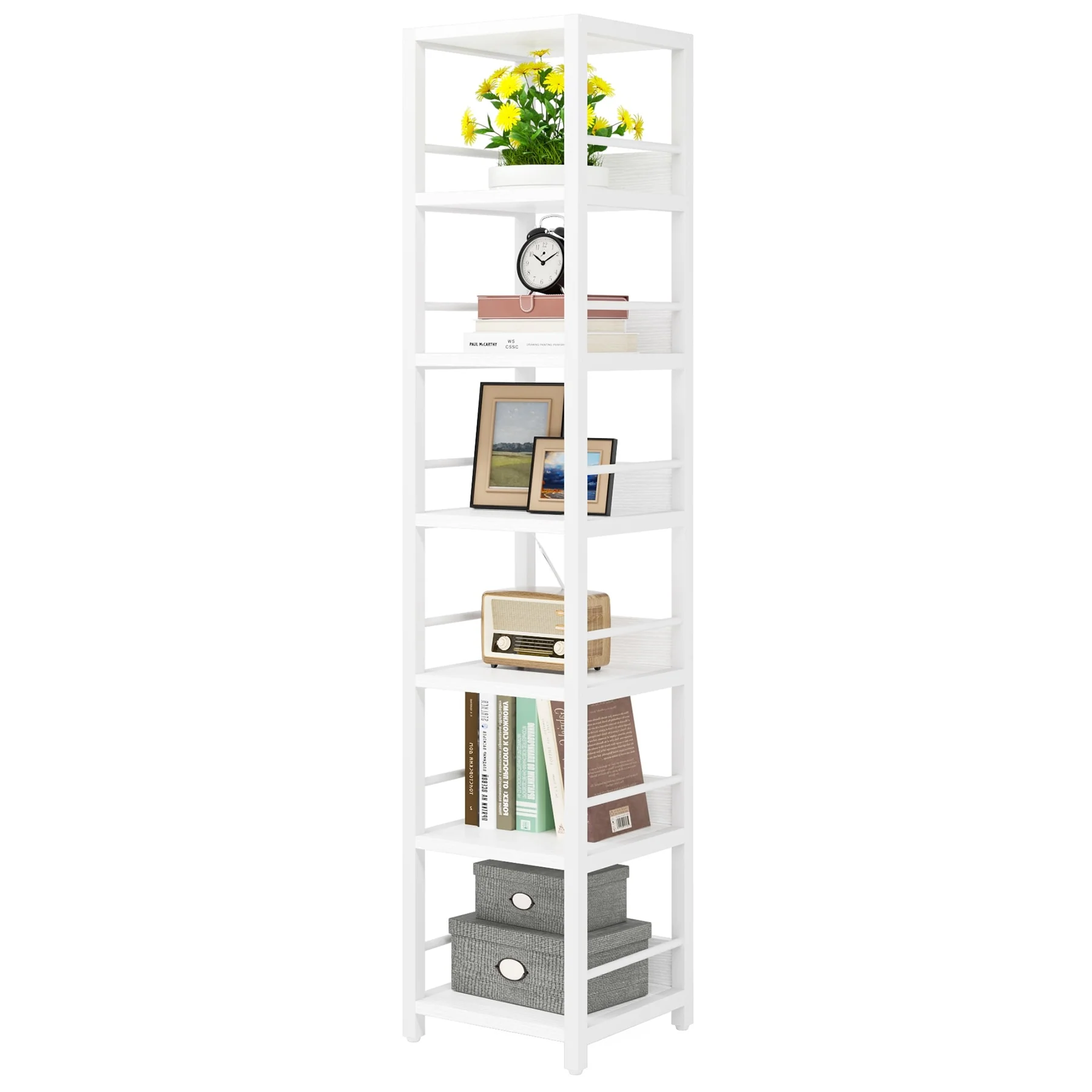 75 Inch Tall Narrow Corner Shelves, 6-Tier Etagere Shelve Storage Rack Bookshelves for Home Office