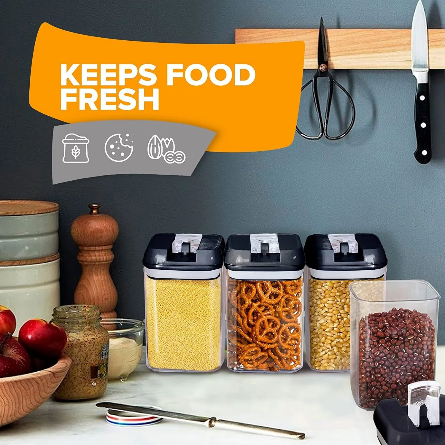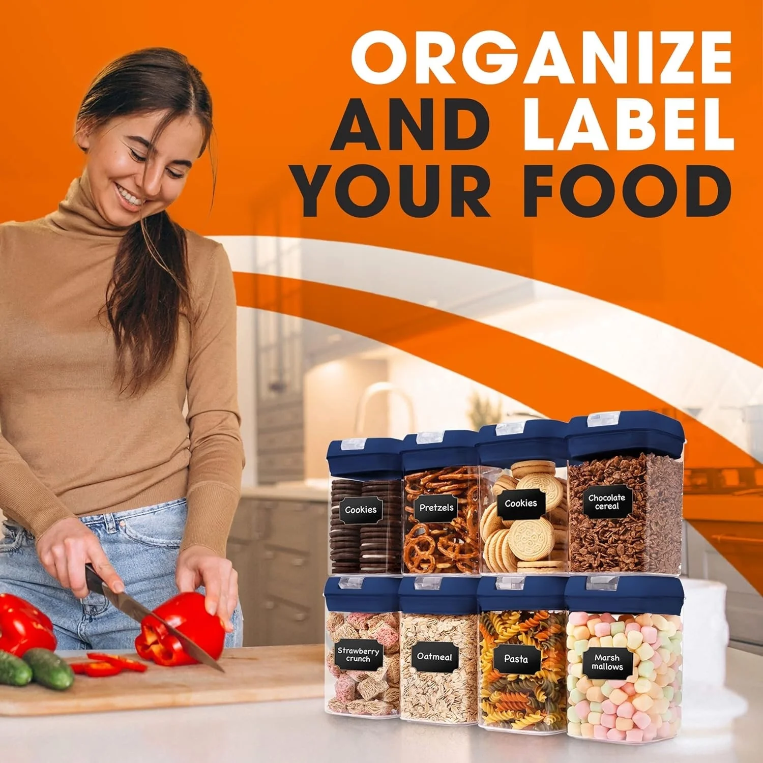 Sorbus Airtight Food Storage Containers with Labels, Marker & Measuring Spoons Kitchen Pantry Food Organizer - 24 Pack