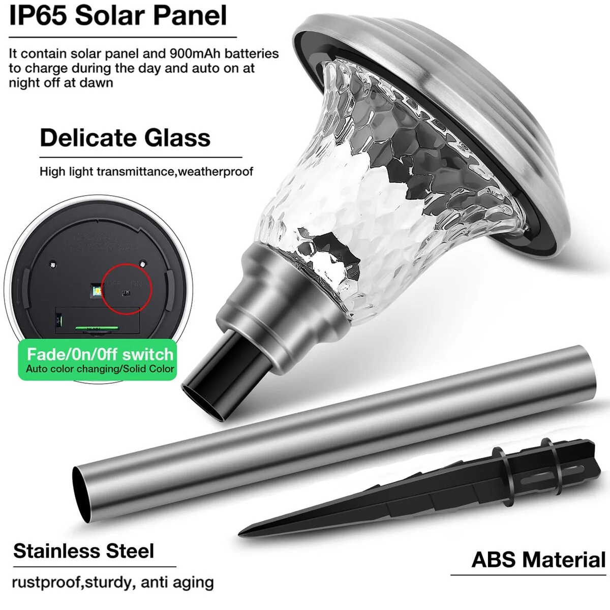 8 Pack Solar Pathway Lights Color Changing Outdoor Waterproof Multi Color Halloween LED Glass Garden Landscape Lighting