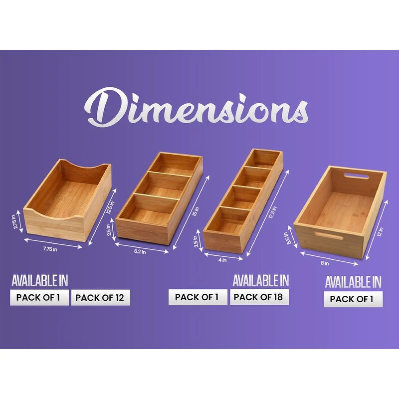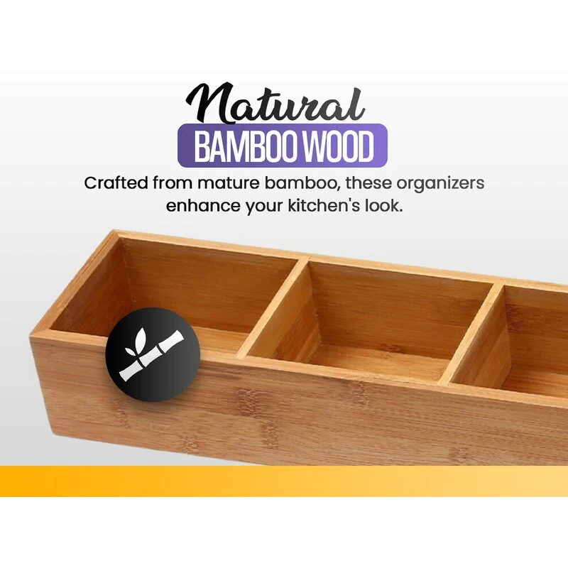 YBM HOME Bamboo 4 Compartment Organizer Tray for Drawers - 4 Compartment