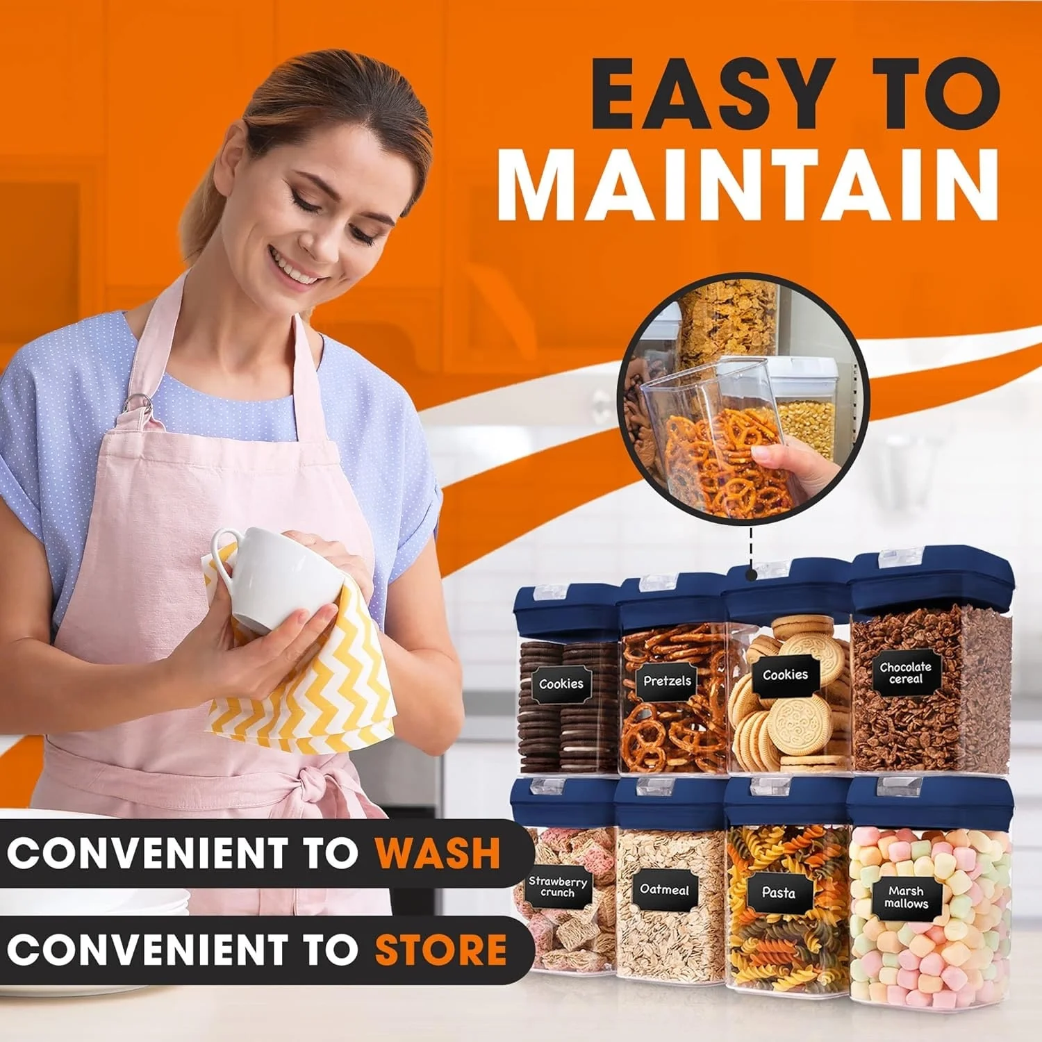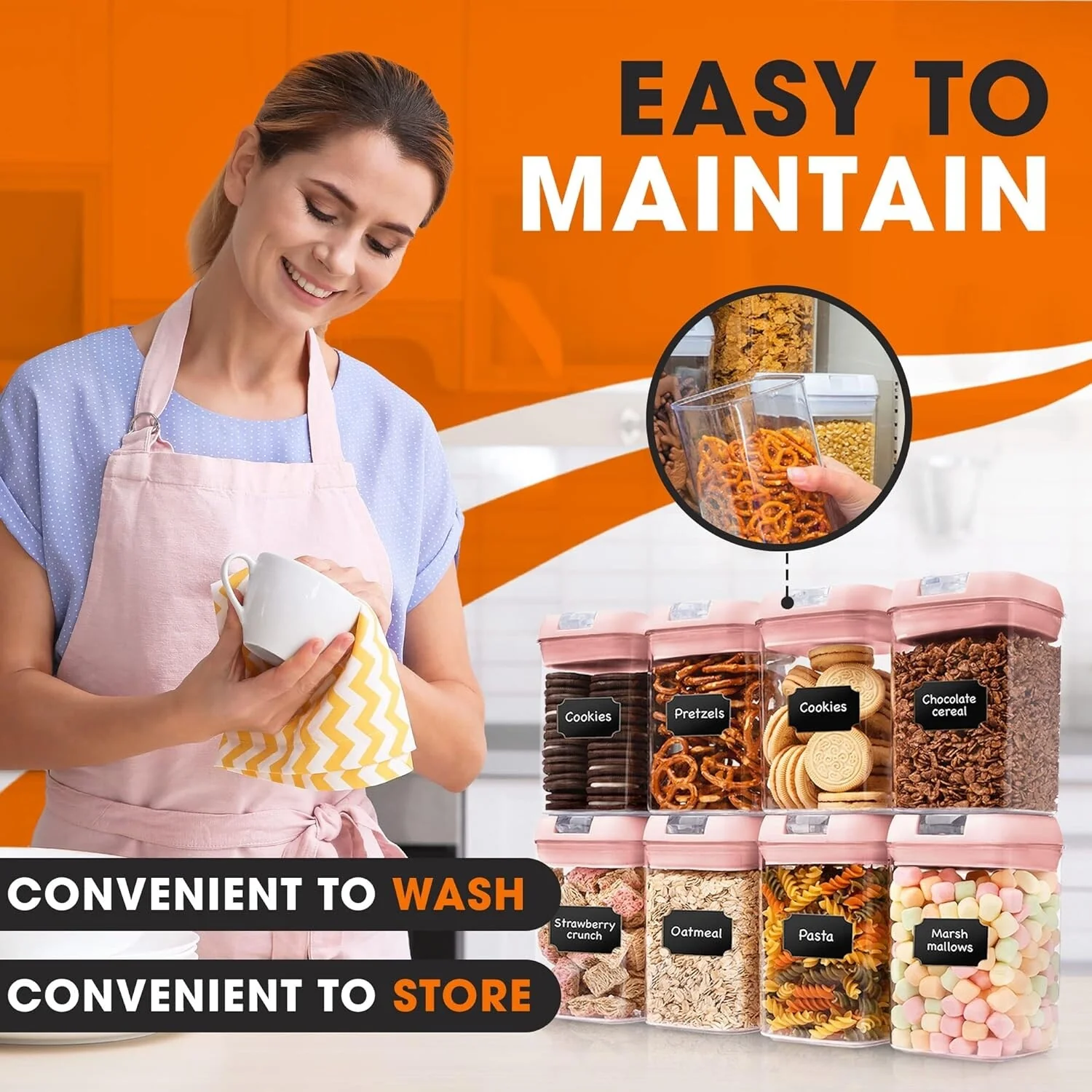 Cheer Collection Set of 8 Uniform Size Airtight Food Storage Containers