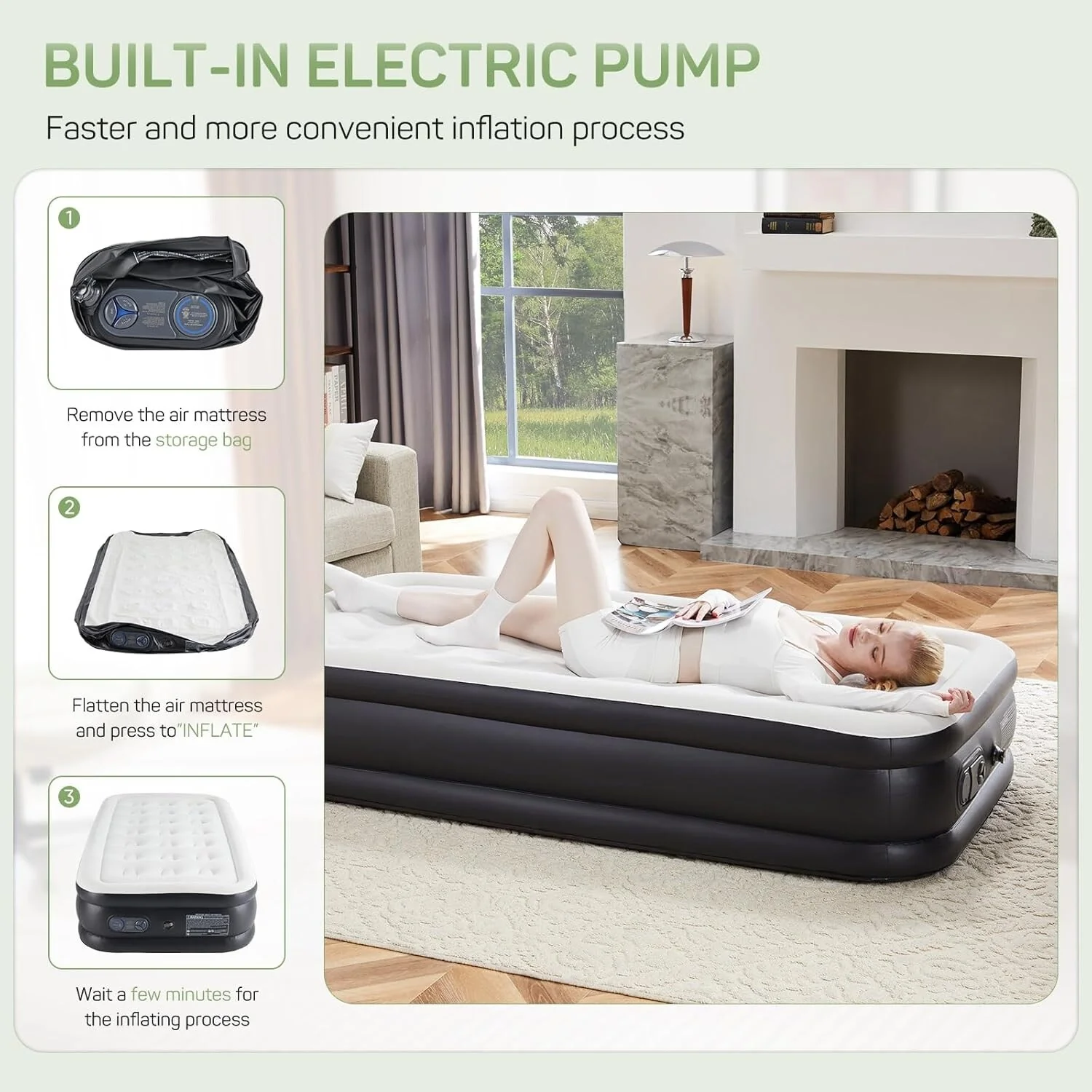 Air Mattress Twin with Built in Pump, 16-Inch Raised Inflatable Blow up Camping Bed, Self-Inflating Portable Colchones Inflables