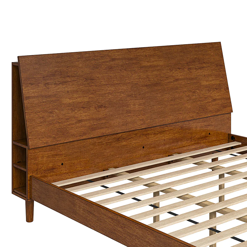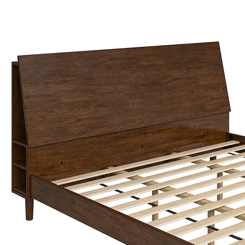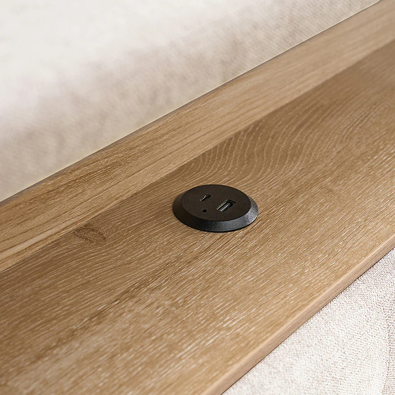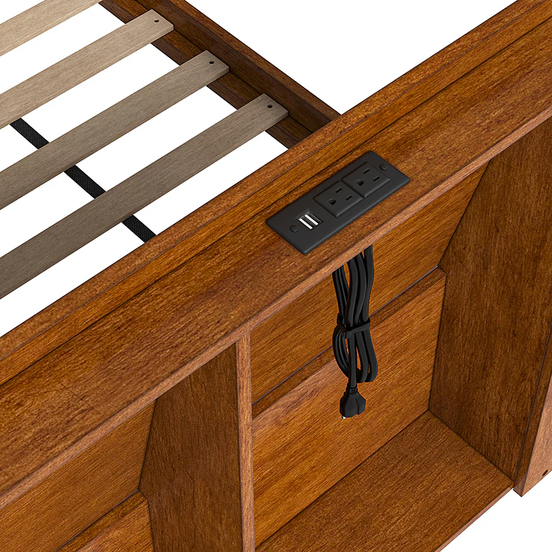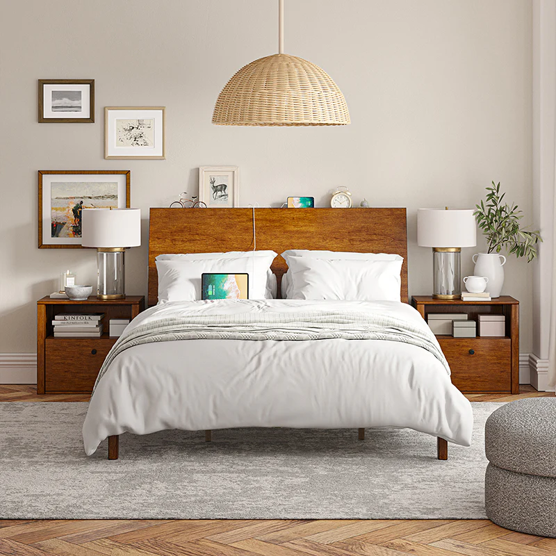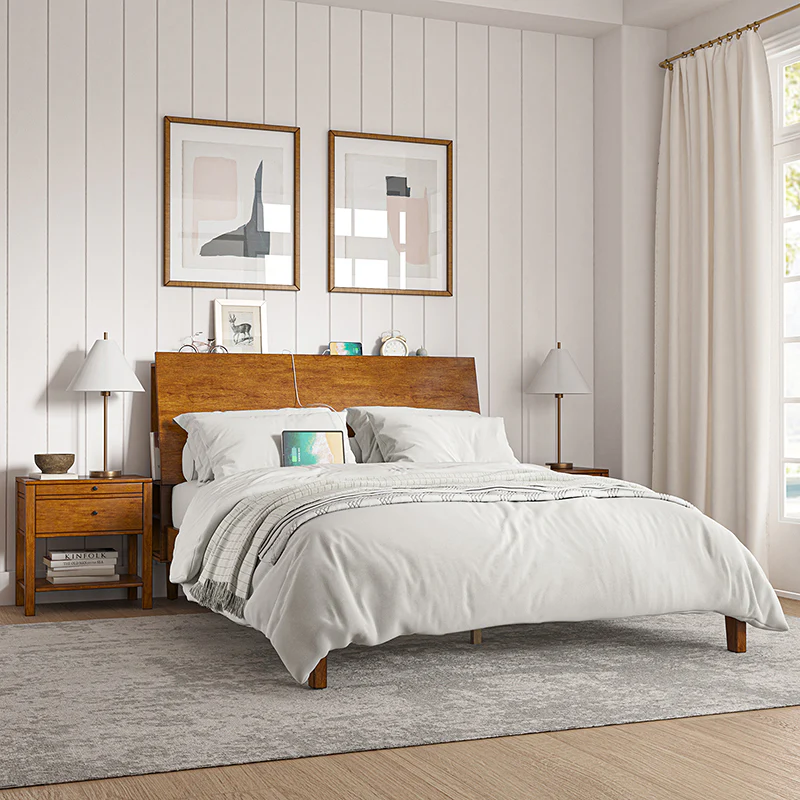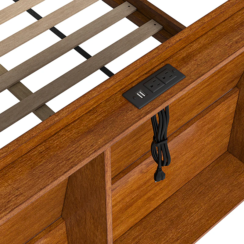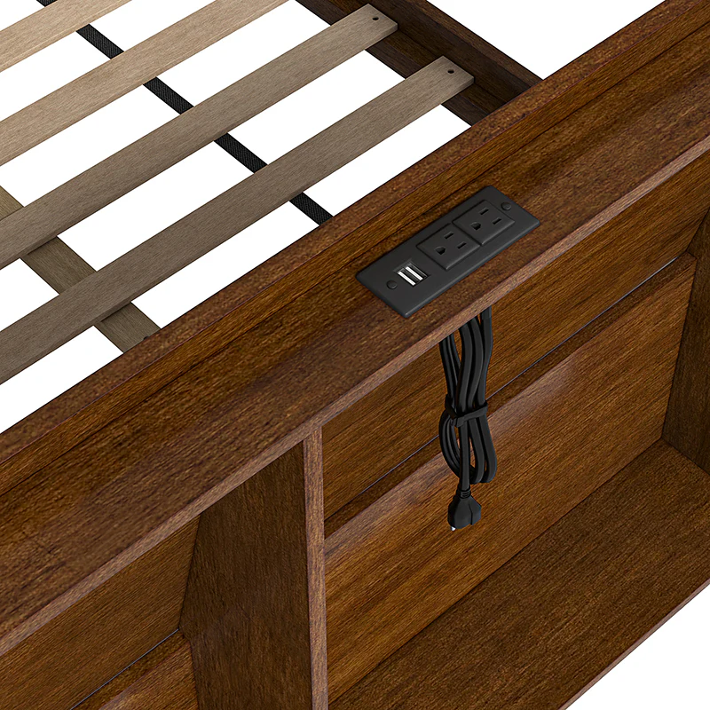 Vivian Solid Wood Platform Bed with USB Ports and Storage Space