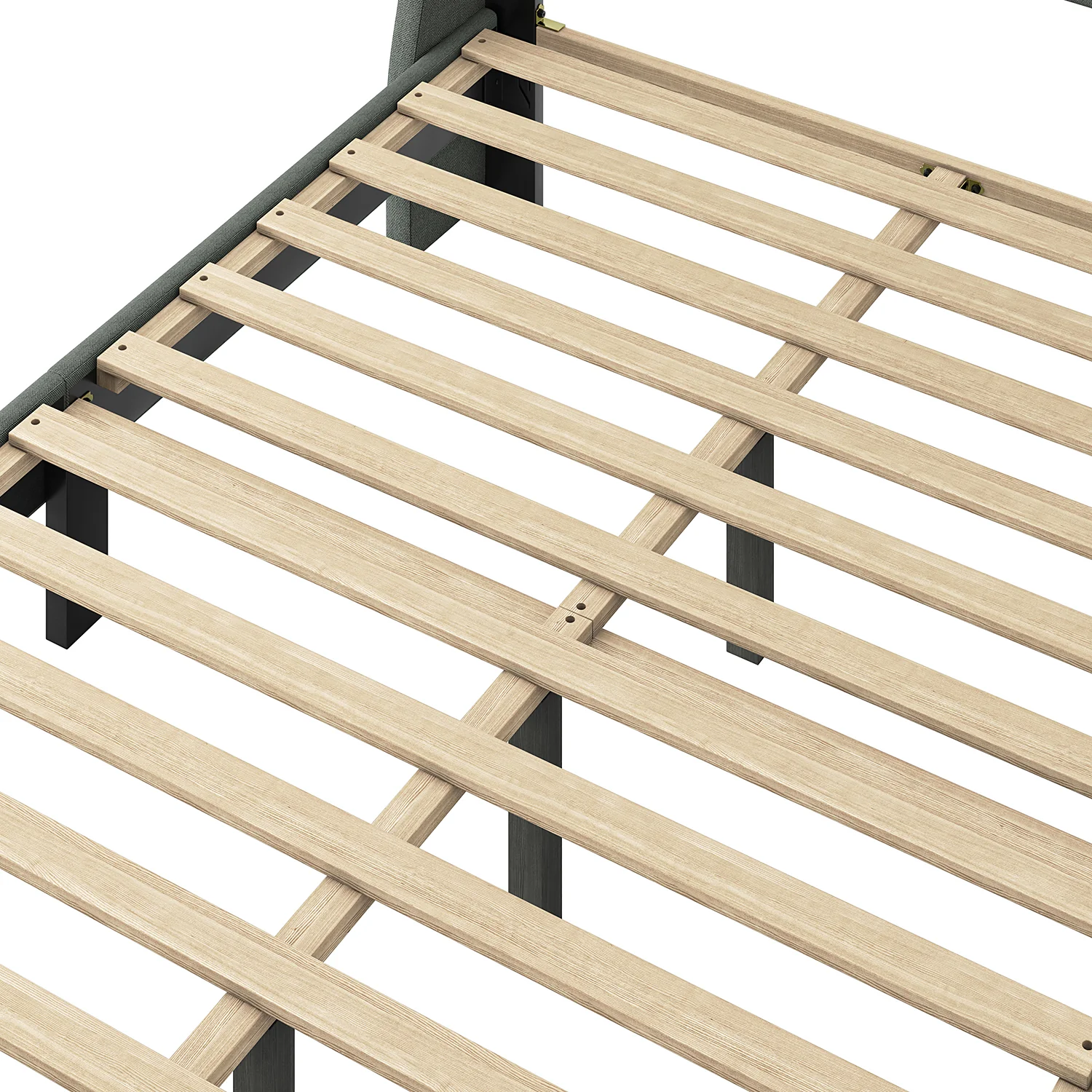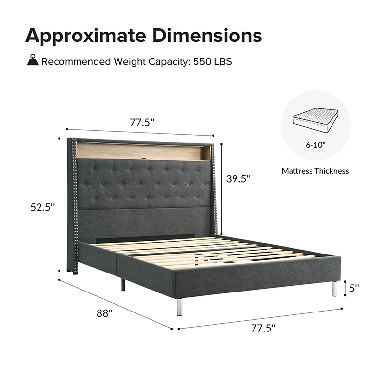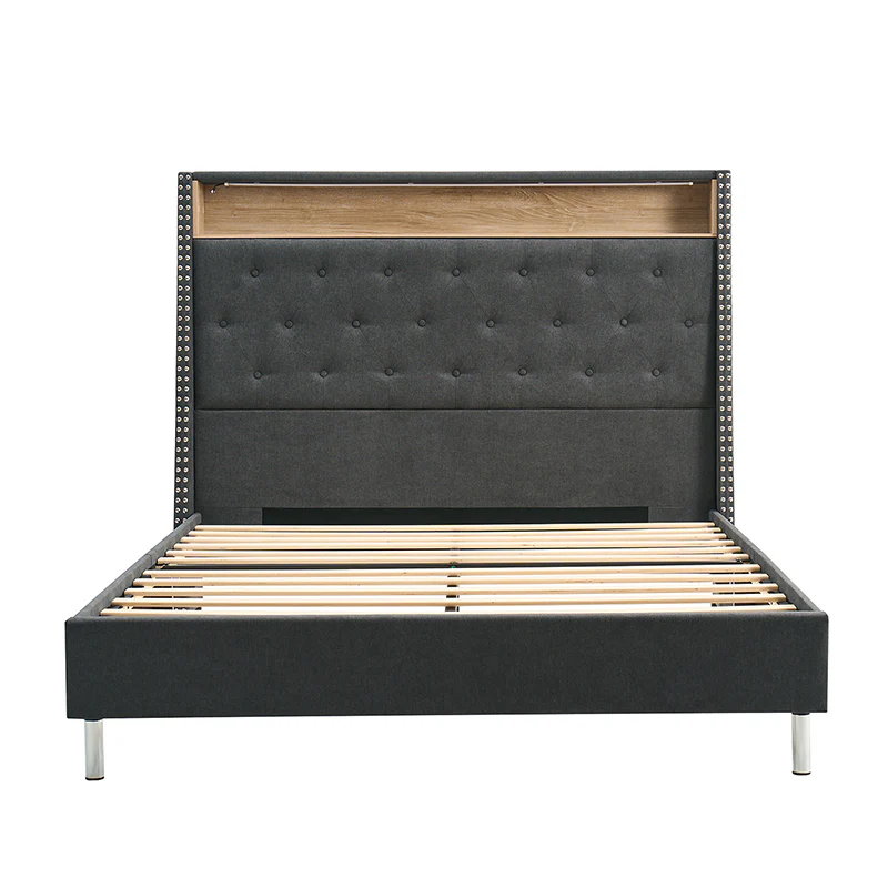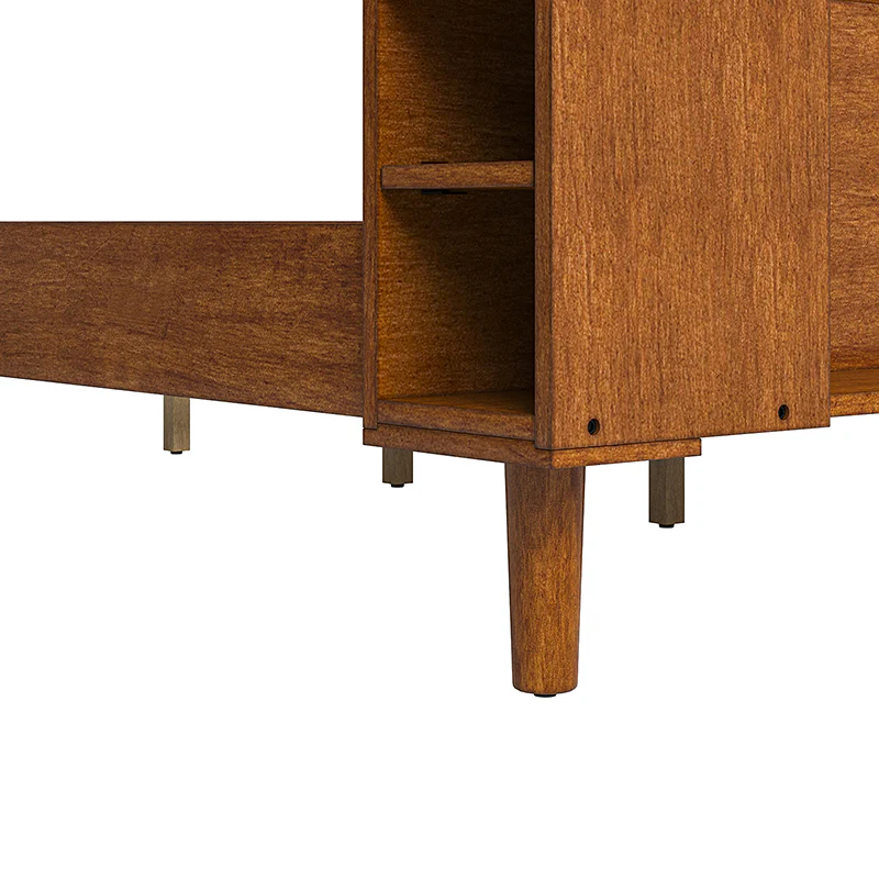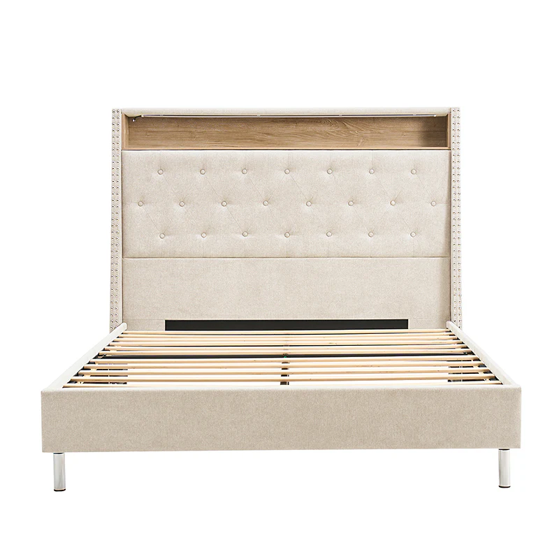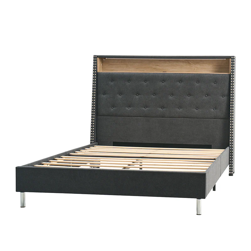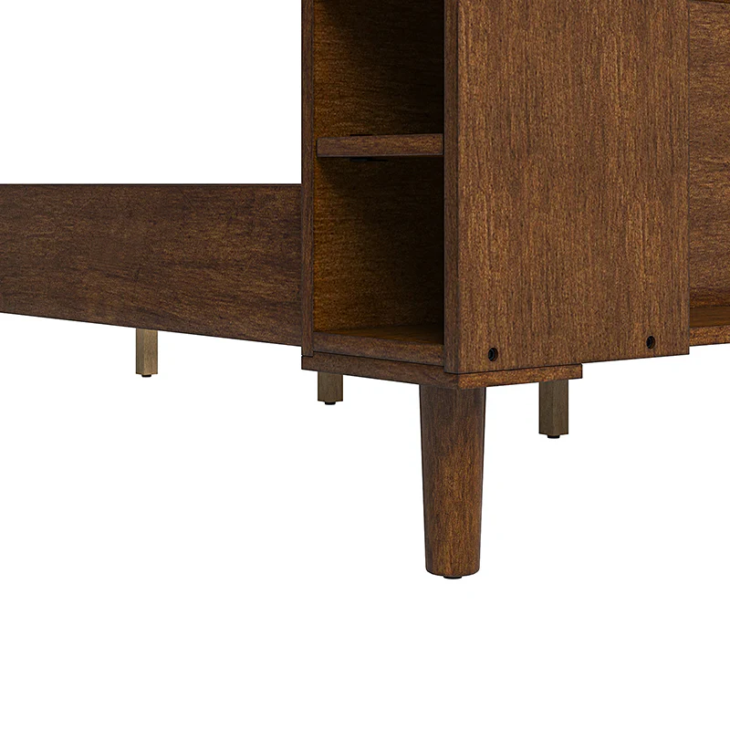 Vivian Solid Wood Platform Bed with USB Ports and Storage Space
