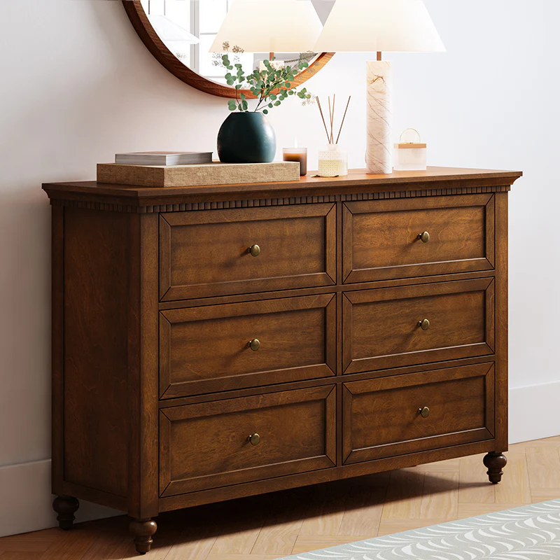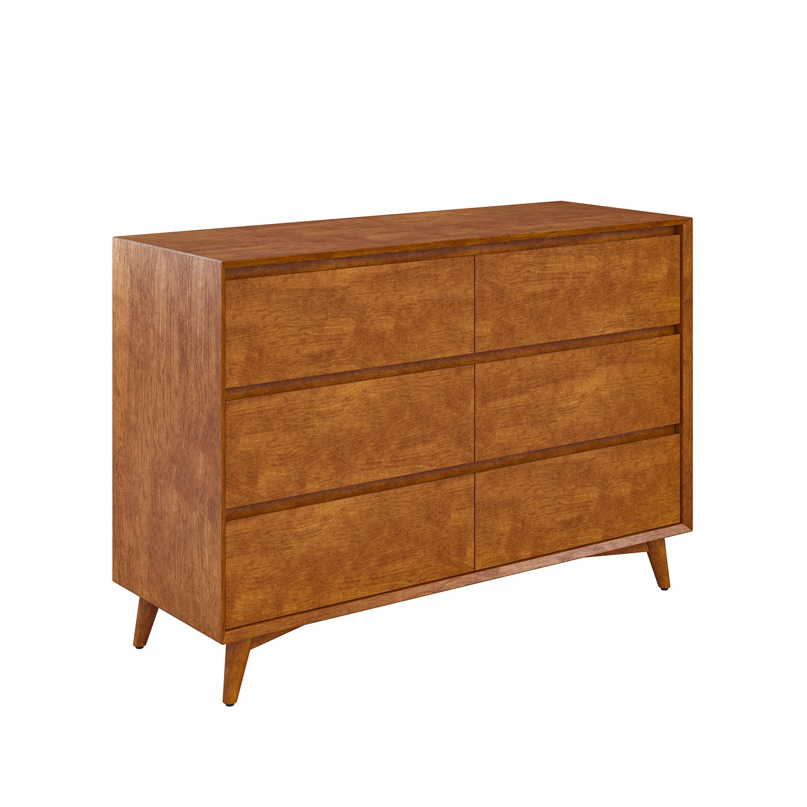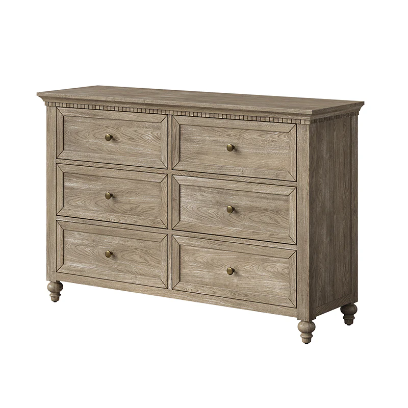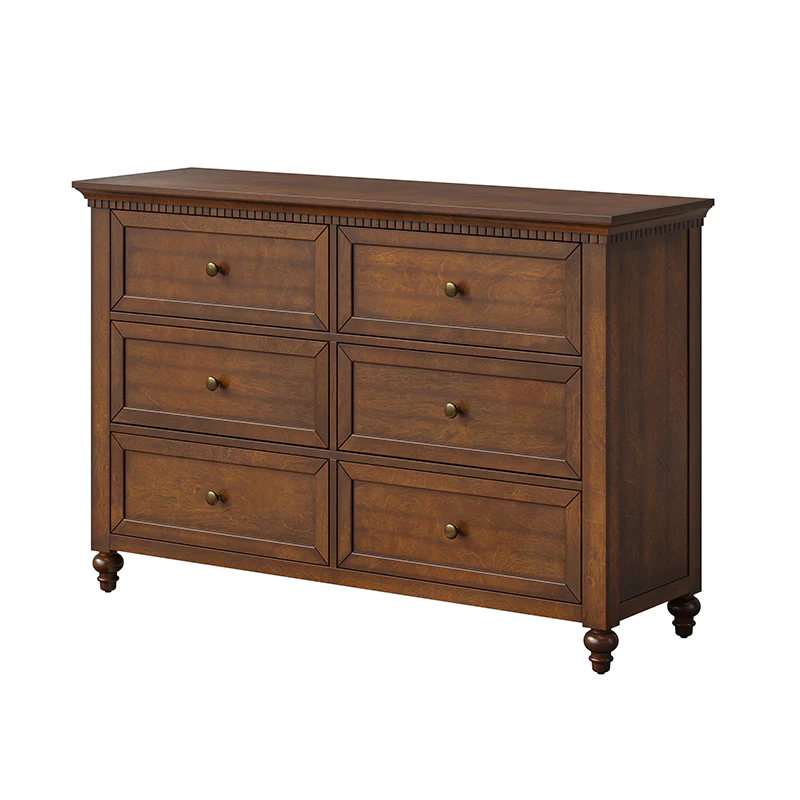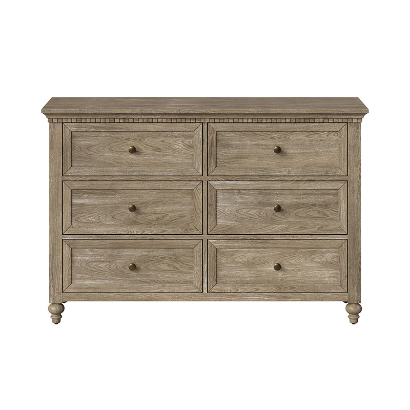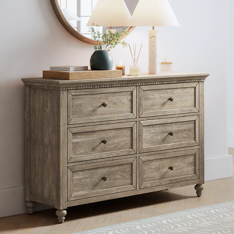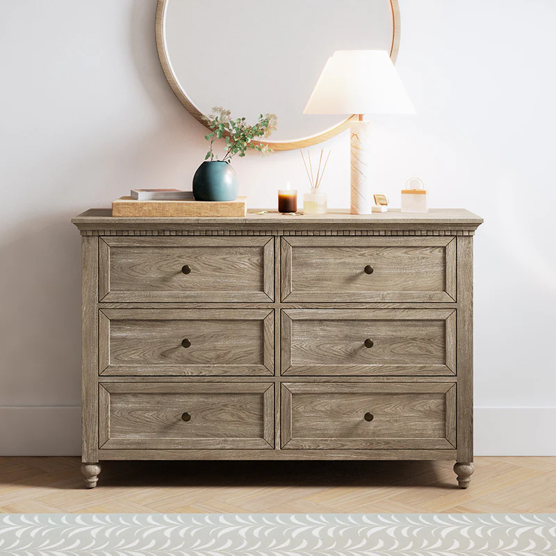 Apollone Mid-Century 6-Drawer Dresser with Solid Wood Legs and Adjustable Feet