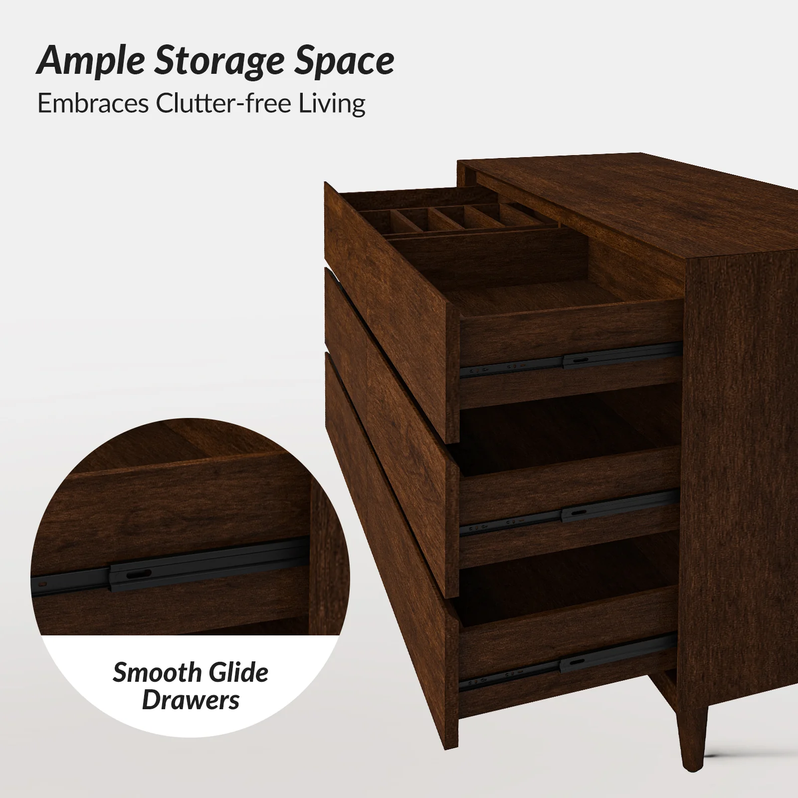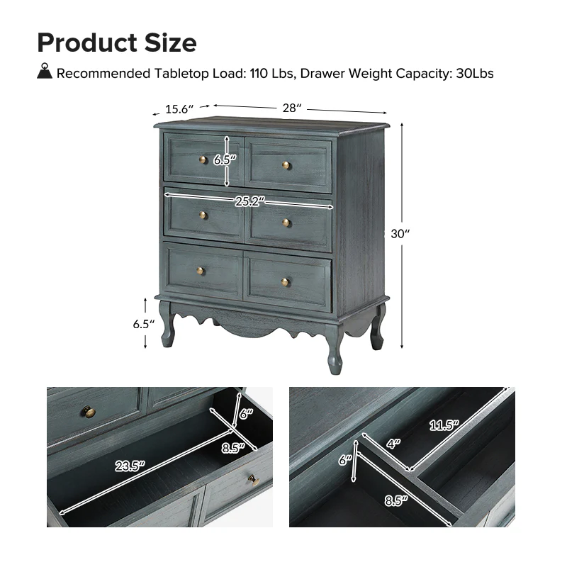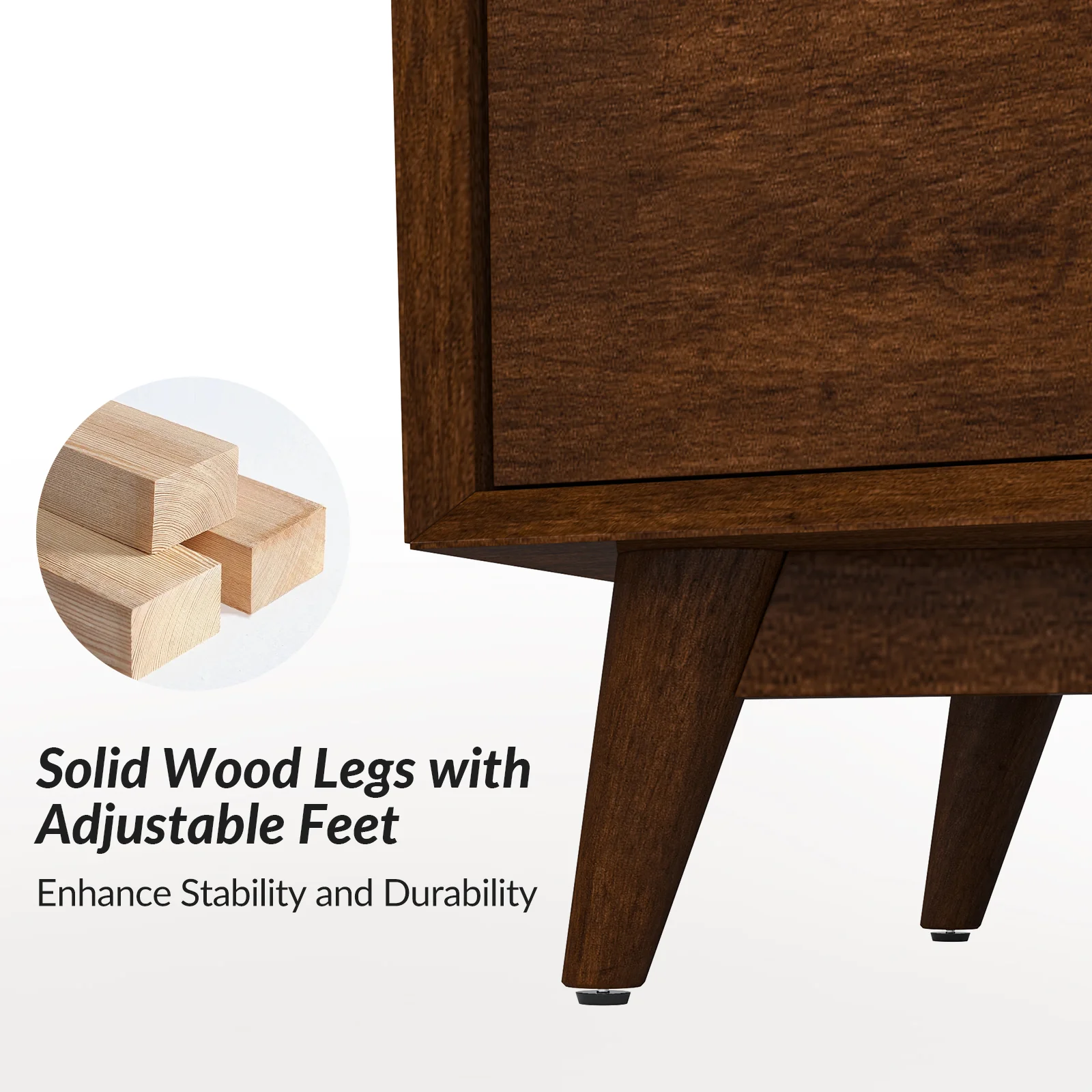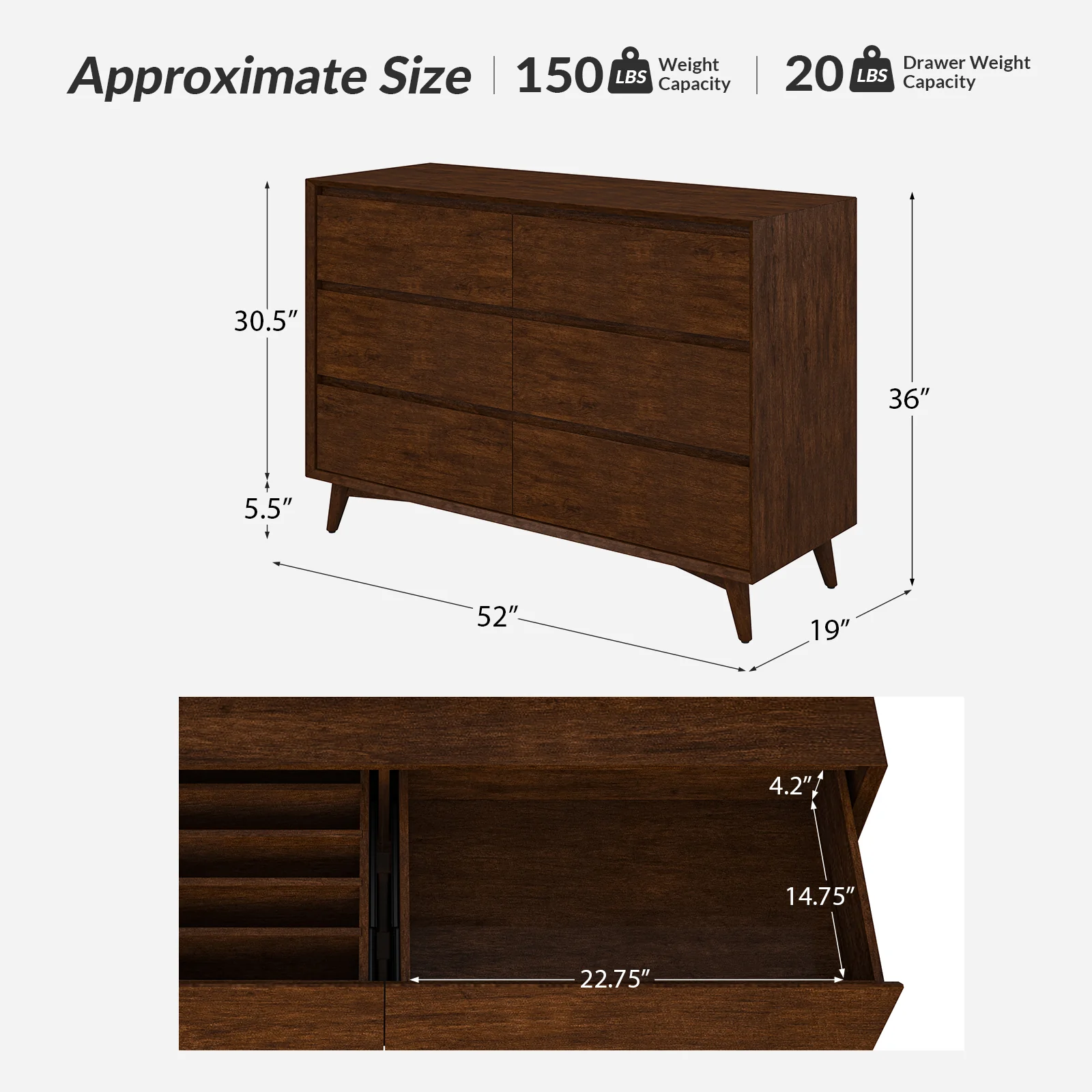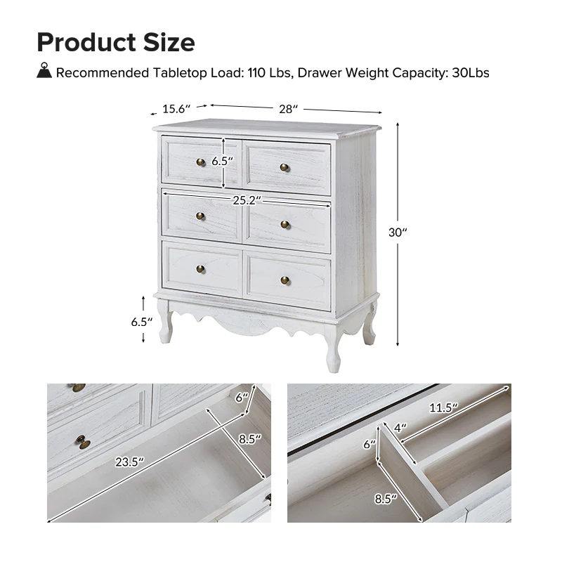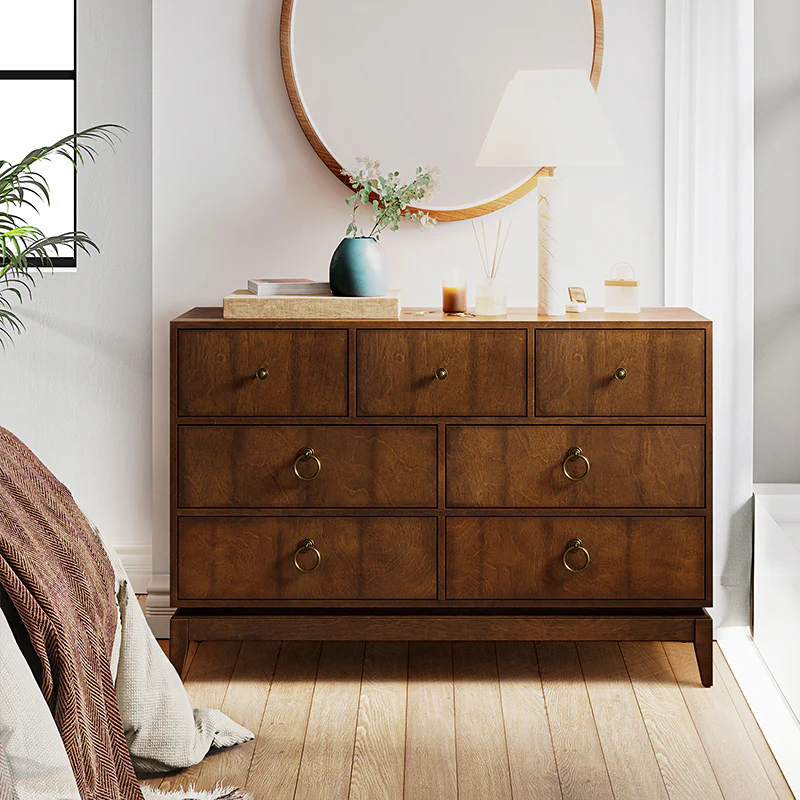 Apollone Mid-Century 6-Drawer Dresser with Solid Wood Legs and Adjustable Feet