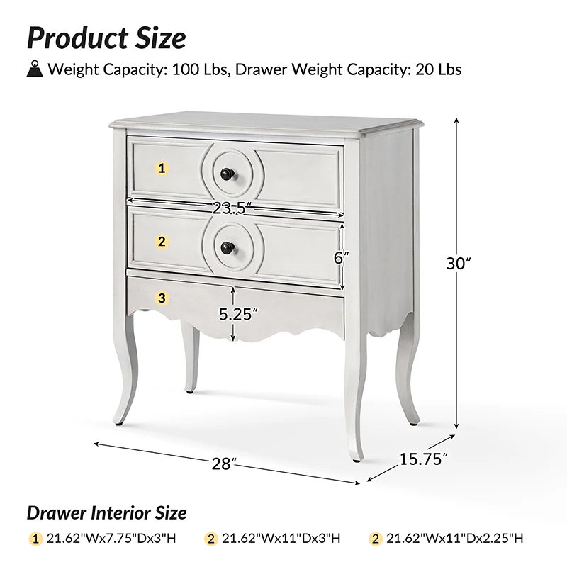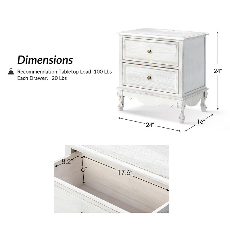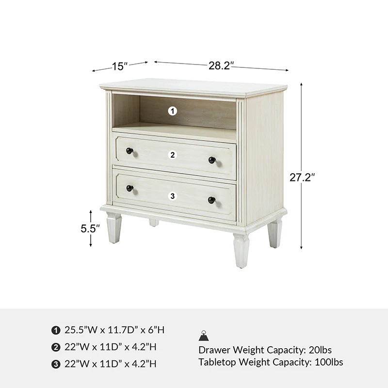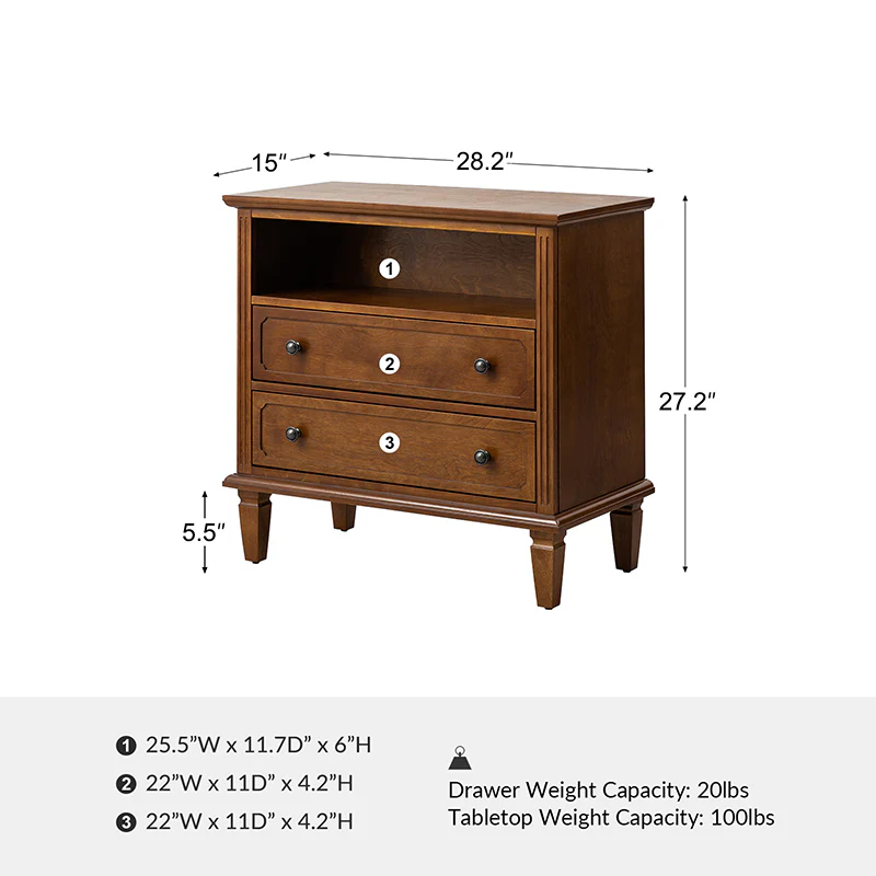 Galatea 2 - Drawer Solid Wood Nightstand Chest