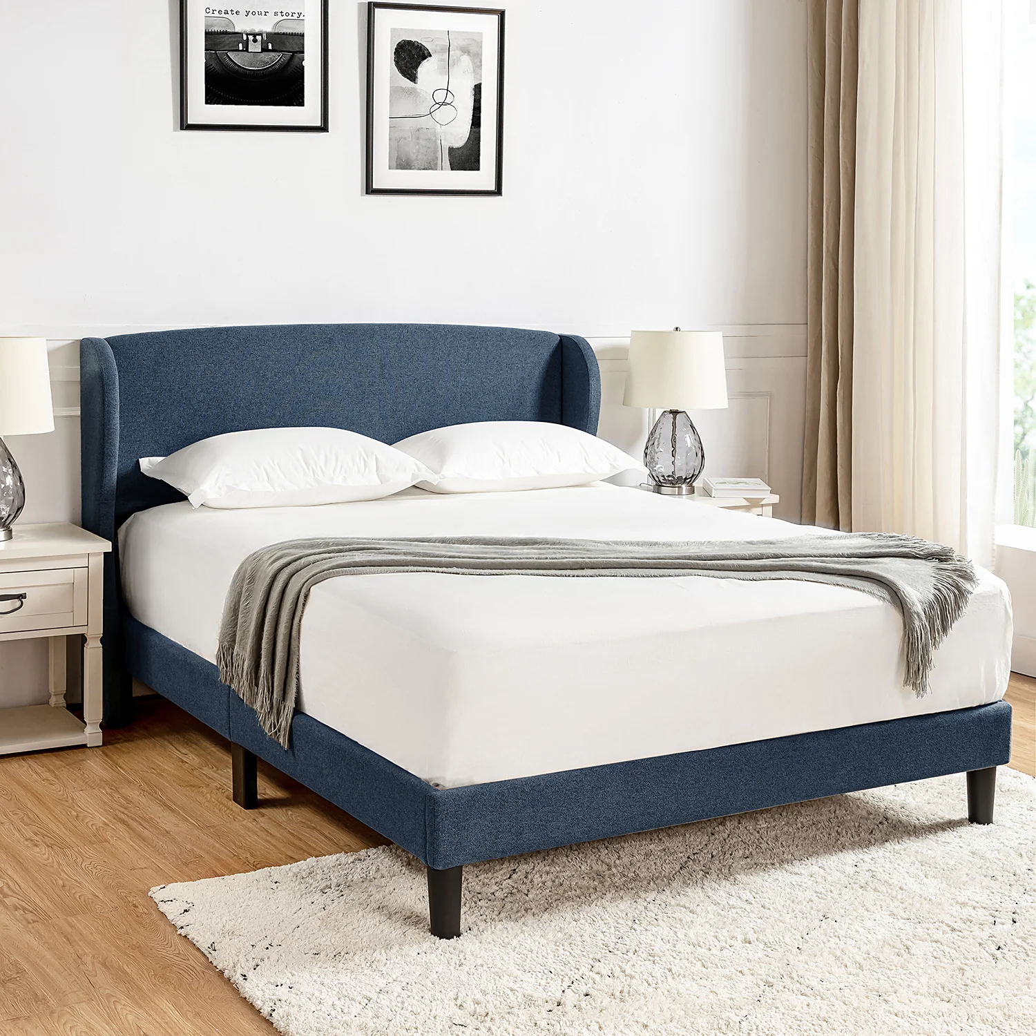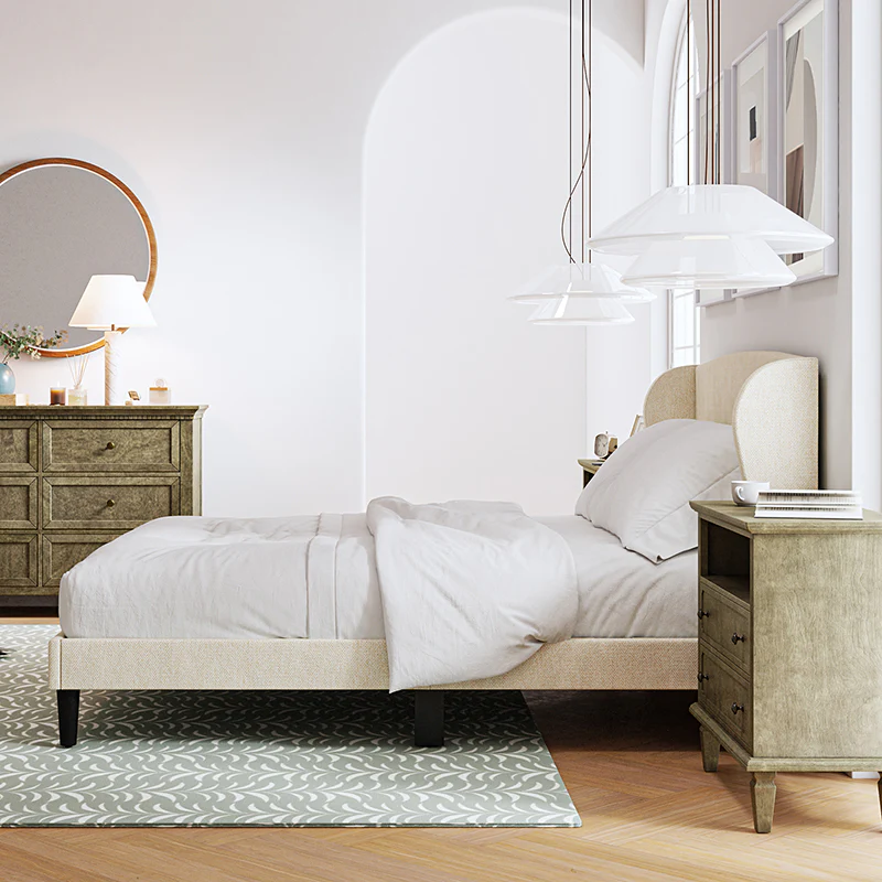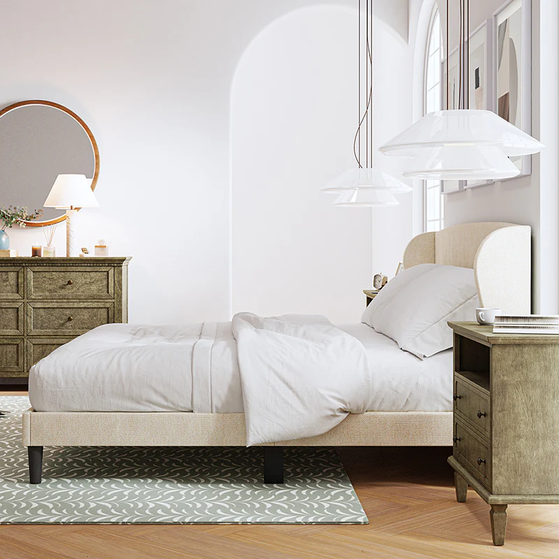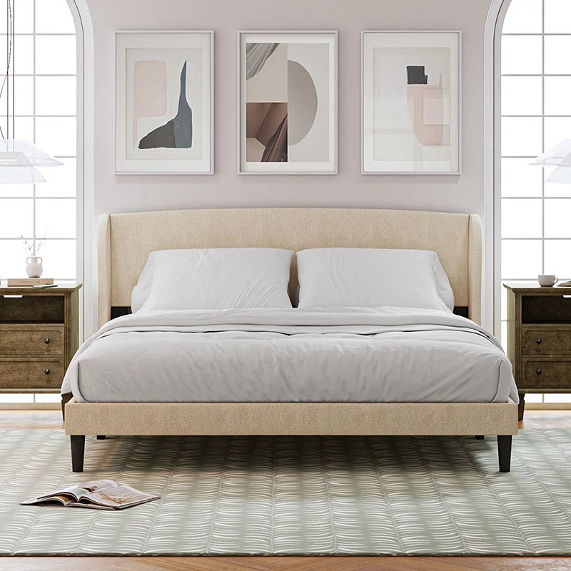 Baotist Upholstered Wingback Platform Bed