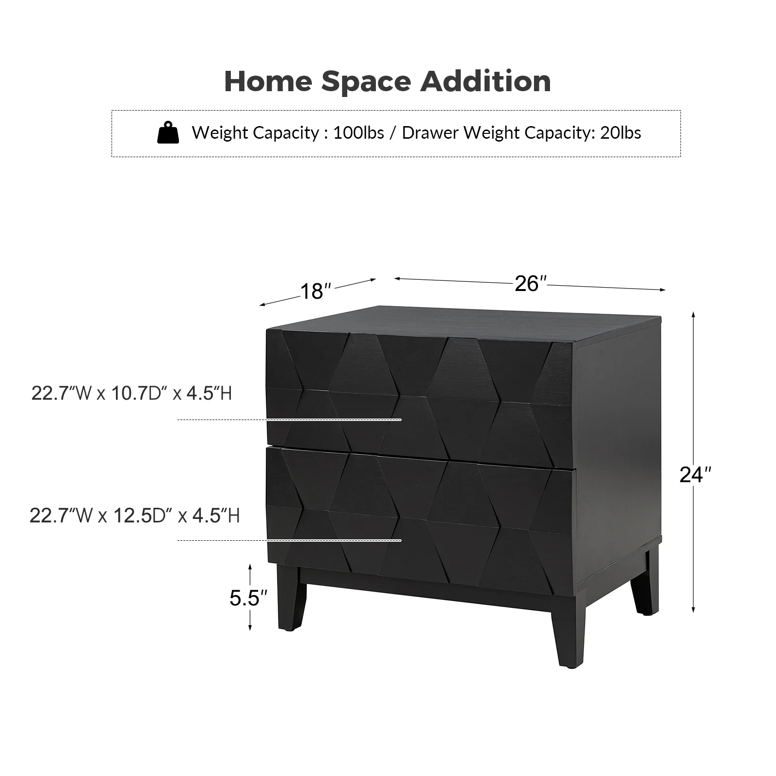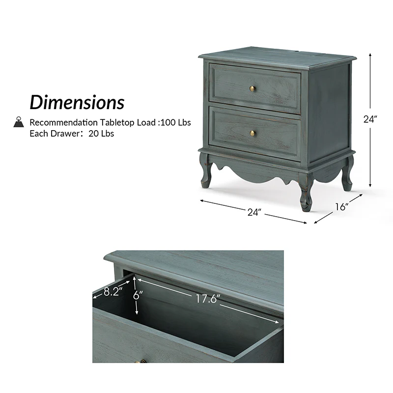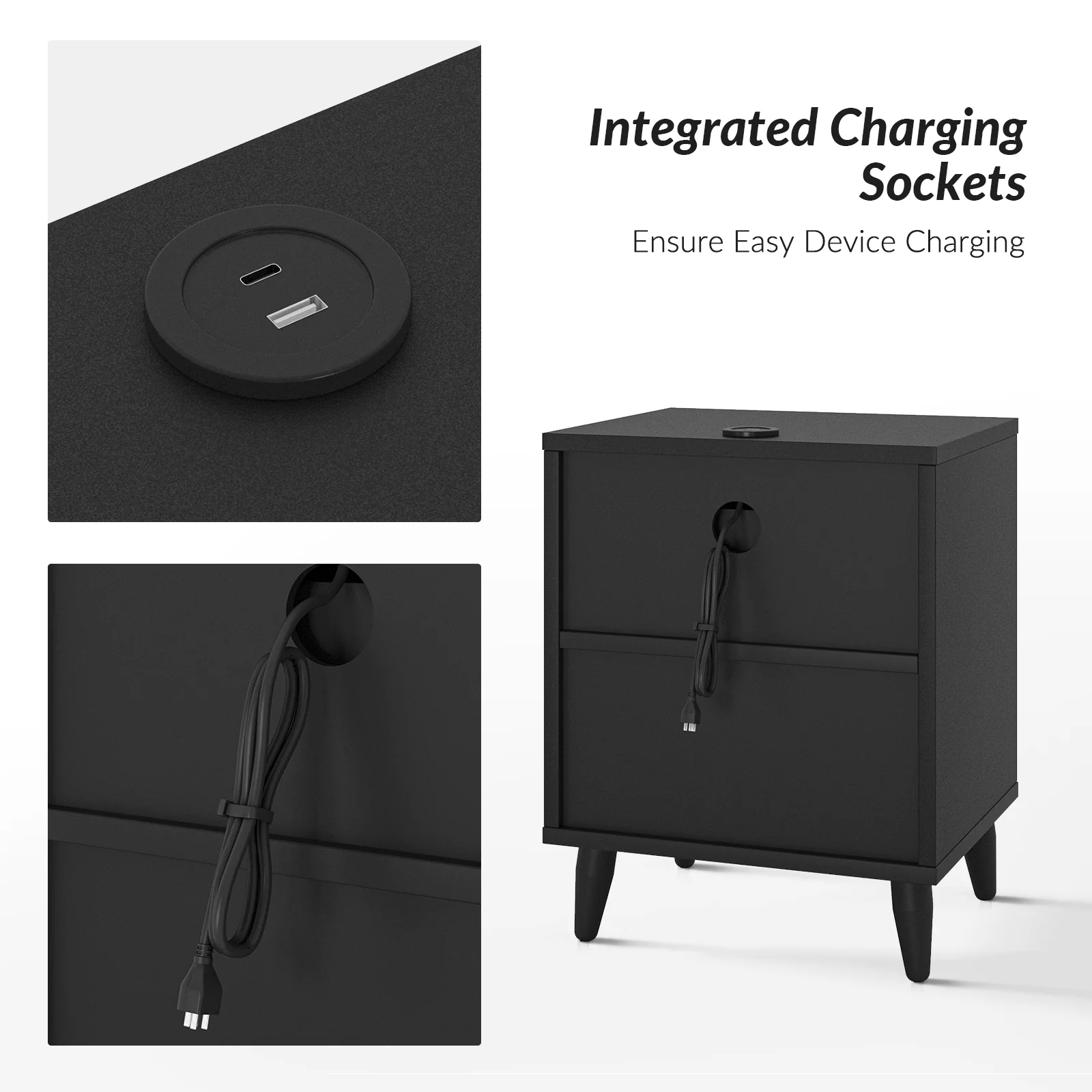 Kamu 2 - Drawer Nightstand Chest with Built-in Outlets