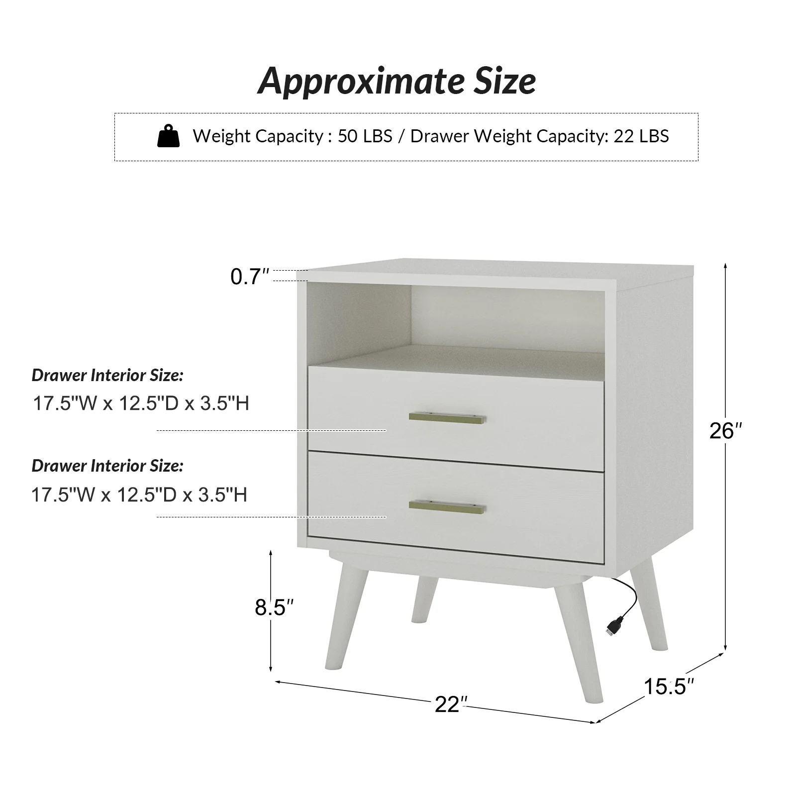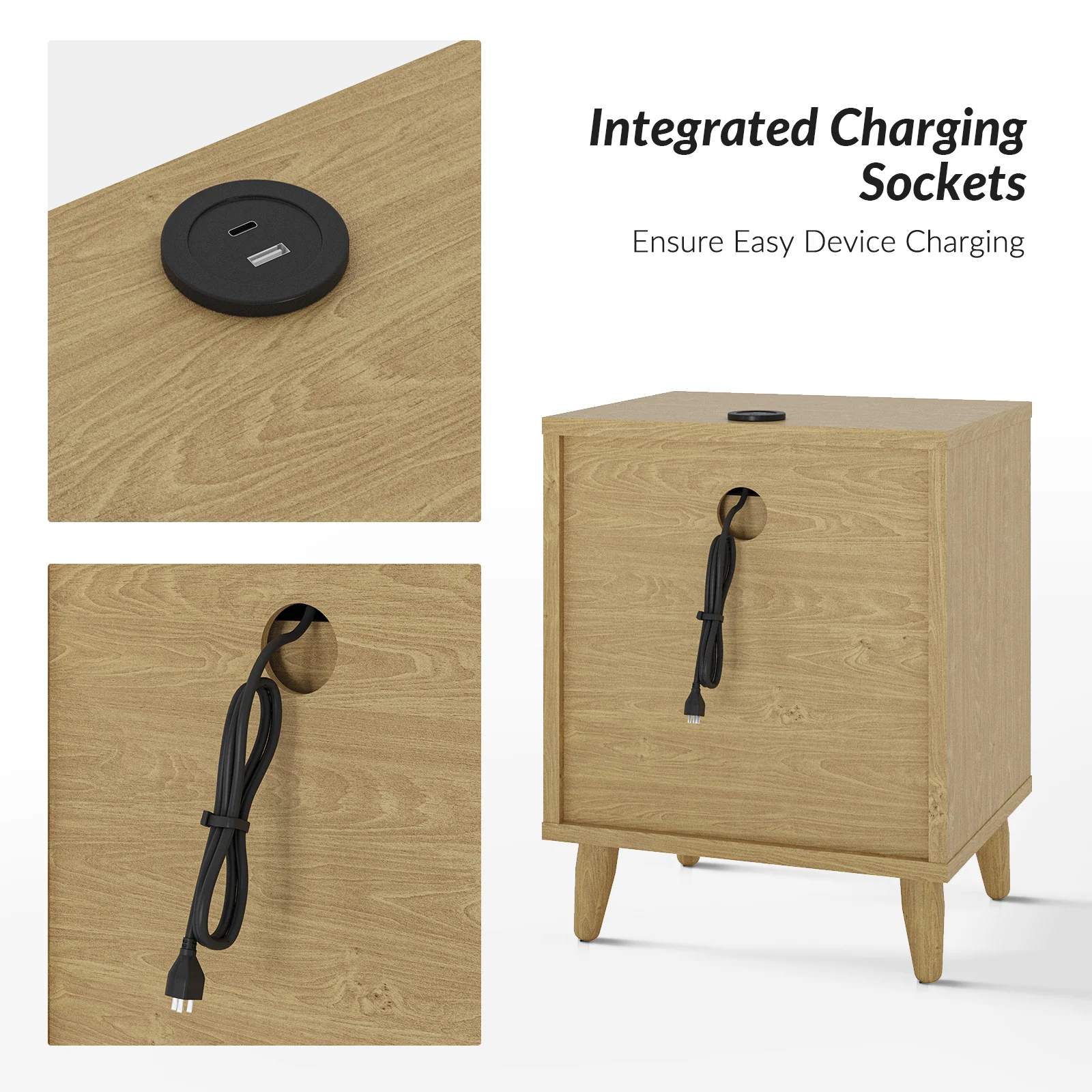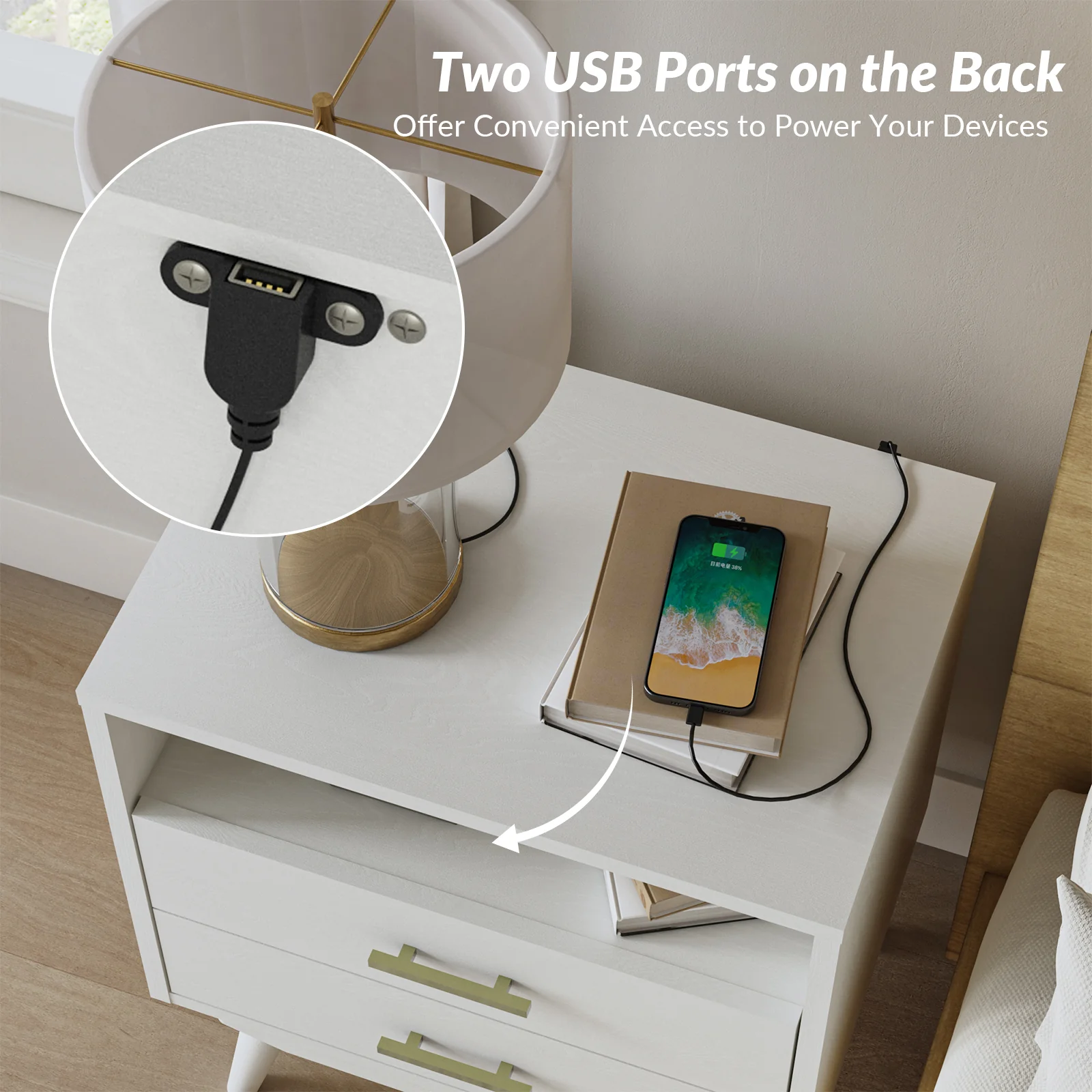 Hector Nightstand with Two USB Ports on the Back