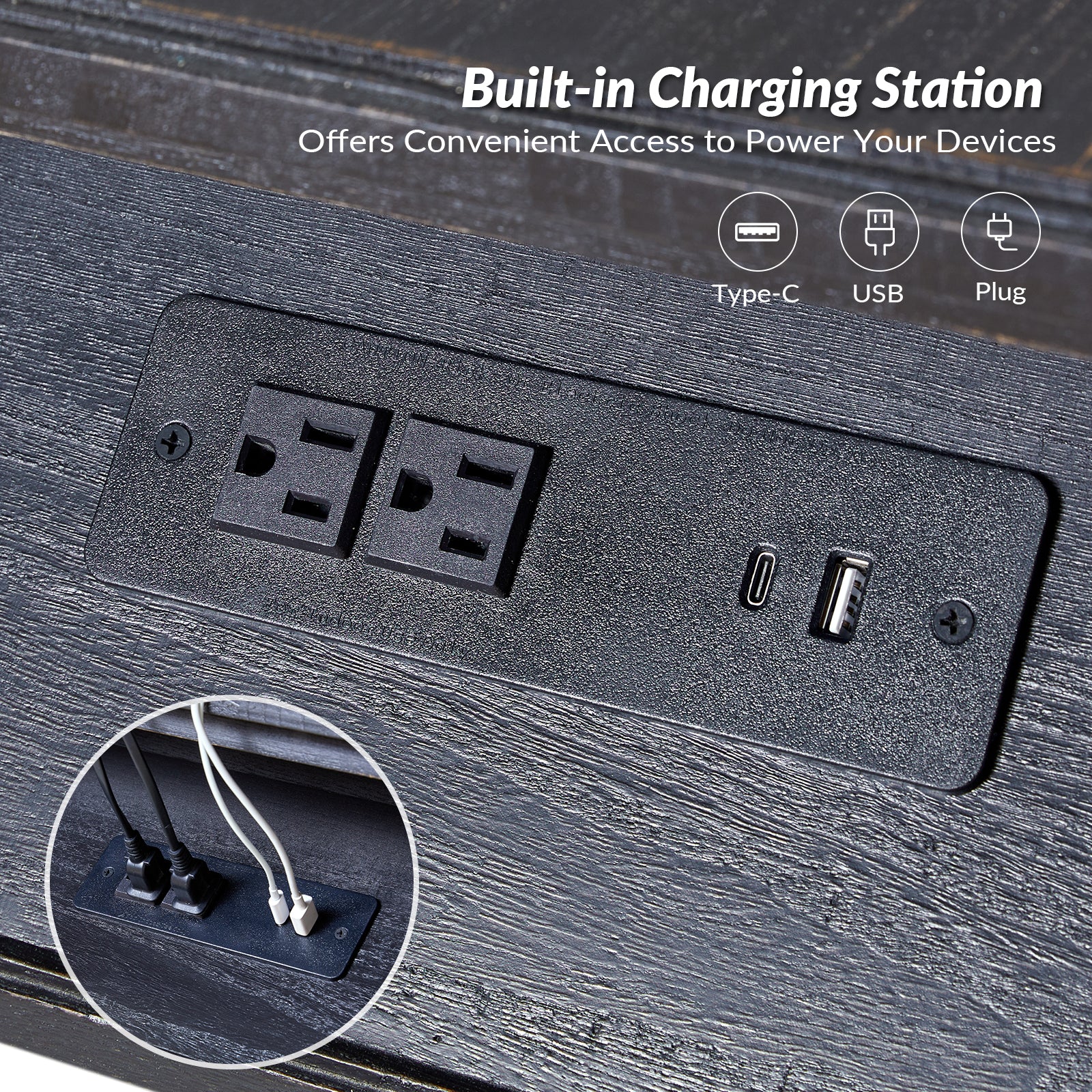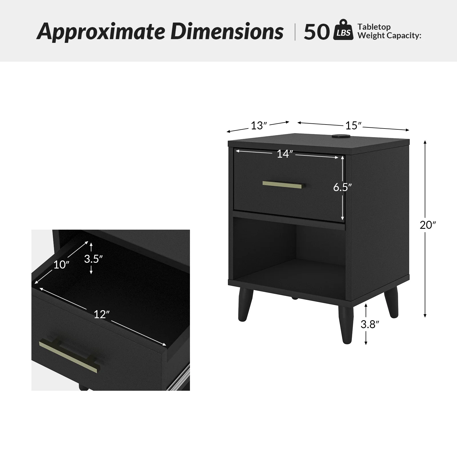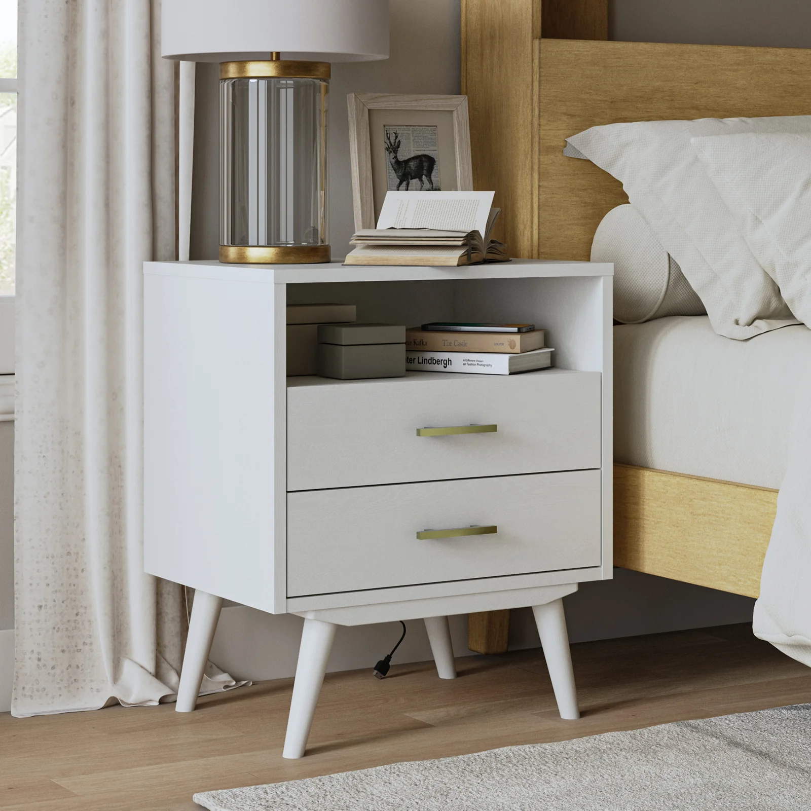 Hector Nightstand with Two USB Ports on the Back