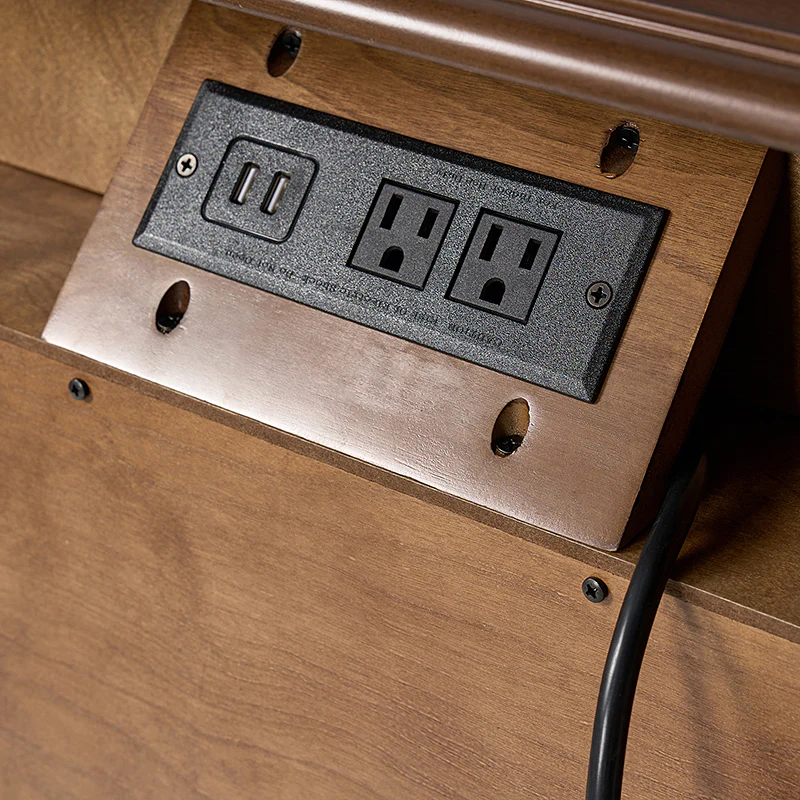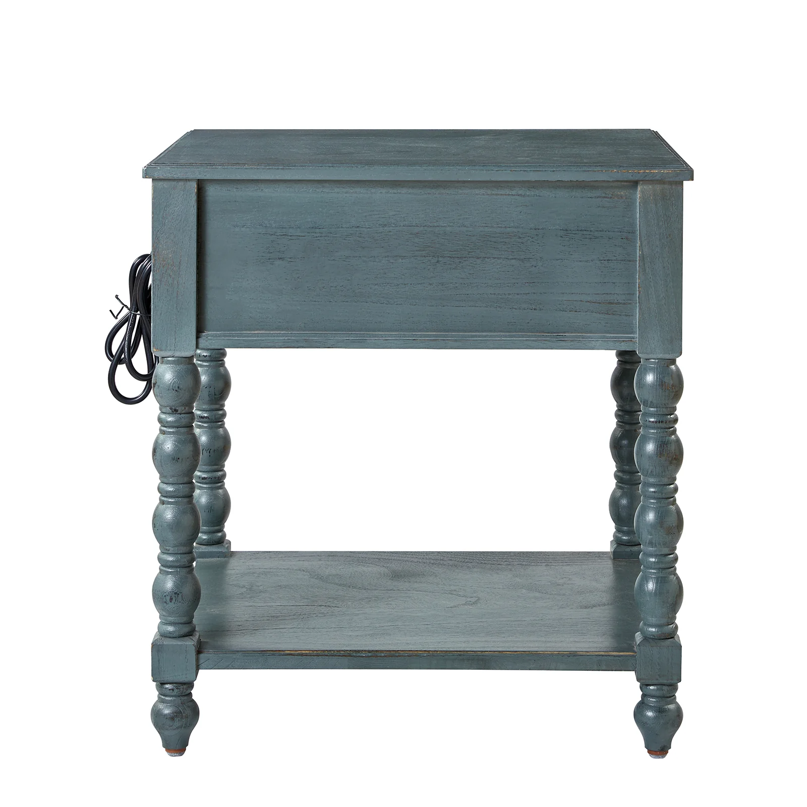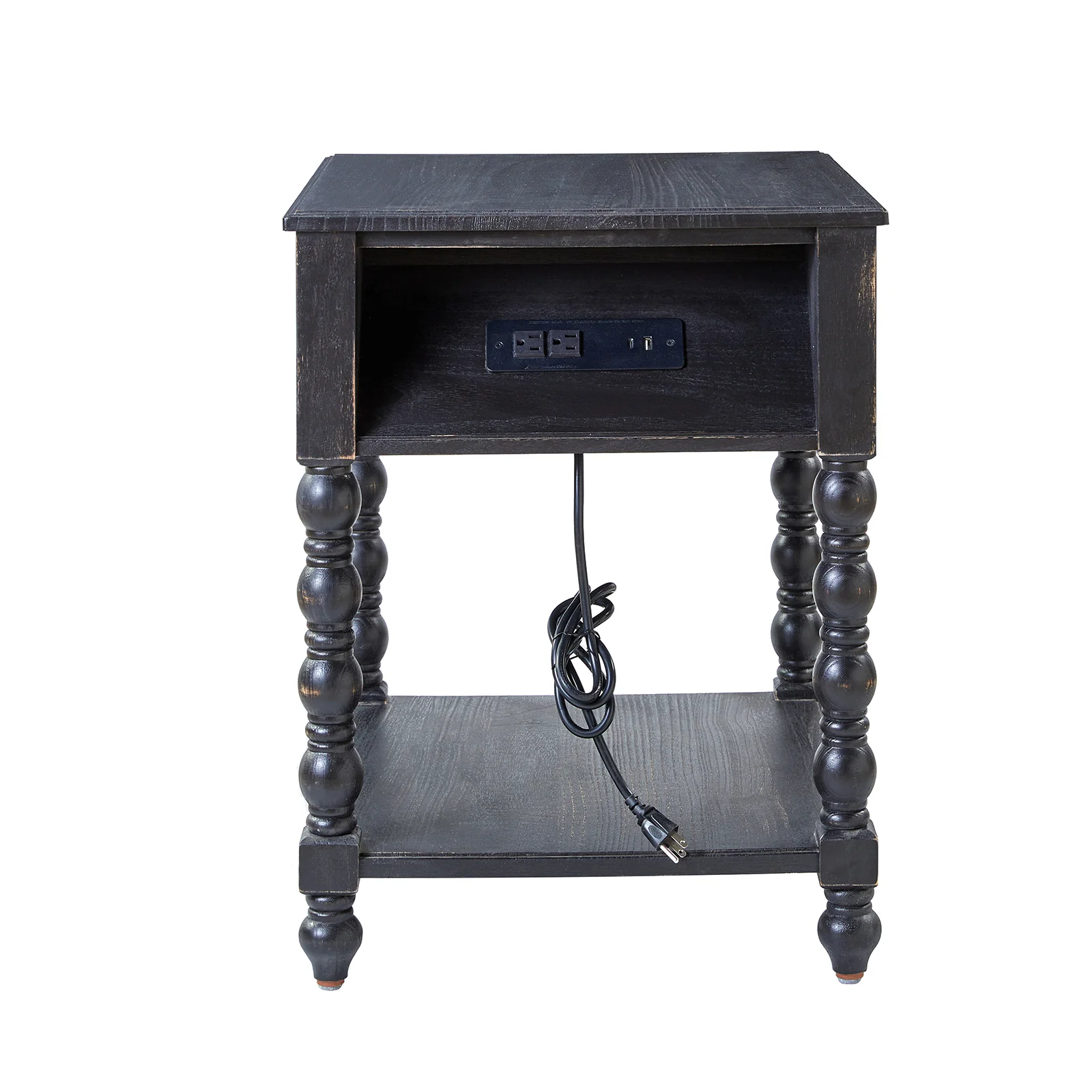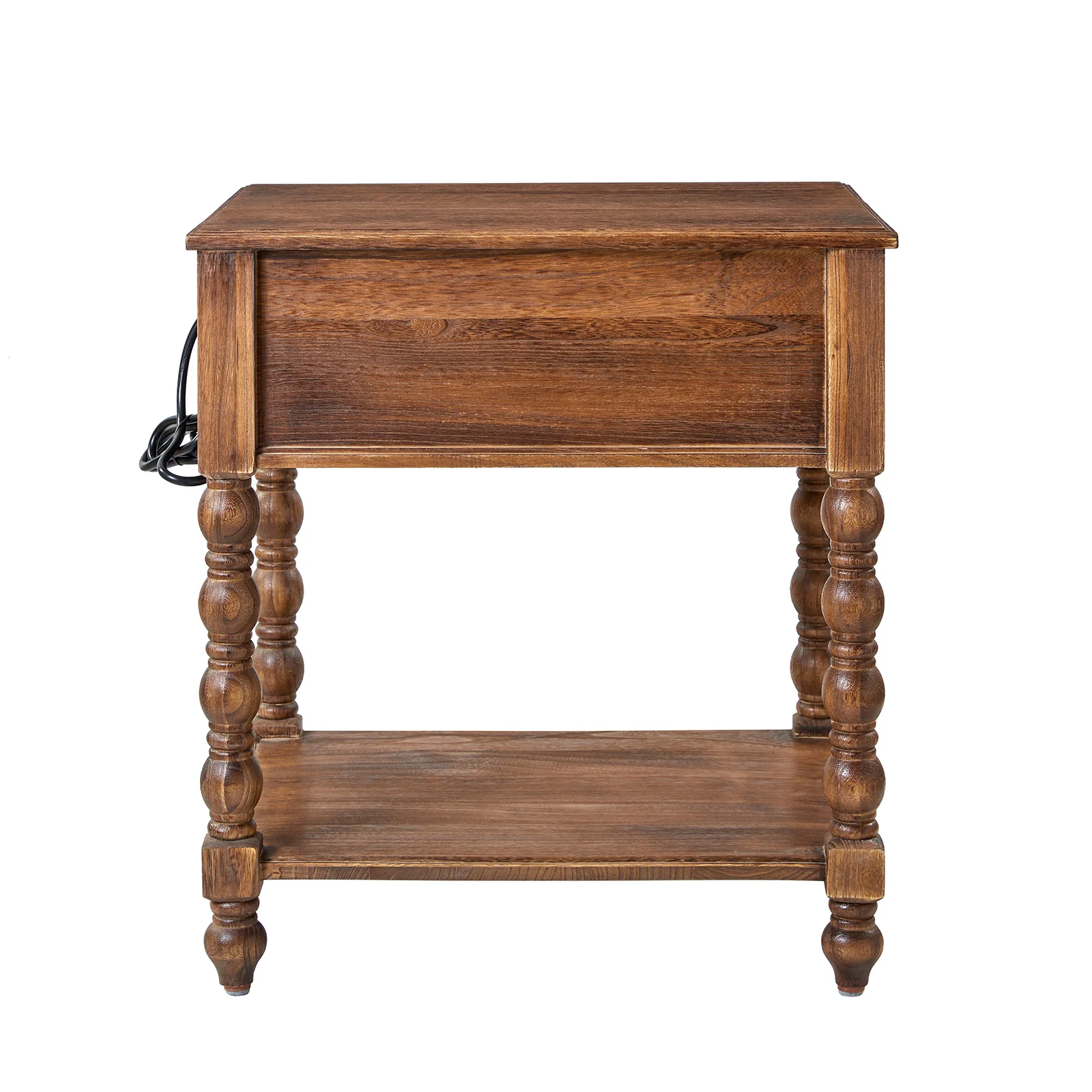 Ira 26" Tall Farmhouse Solid Wood End Table with Built-in Charging Outlets