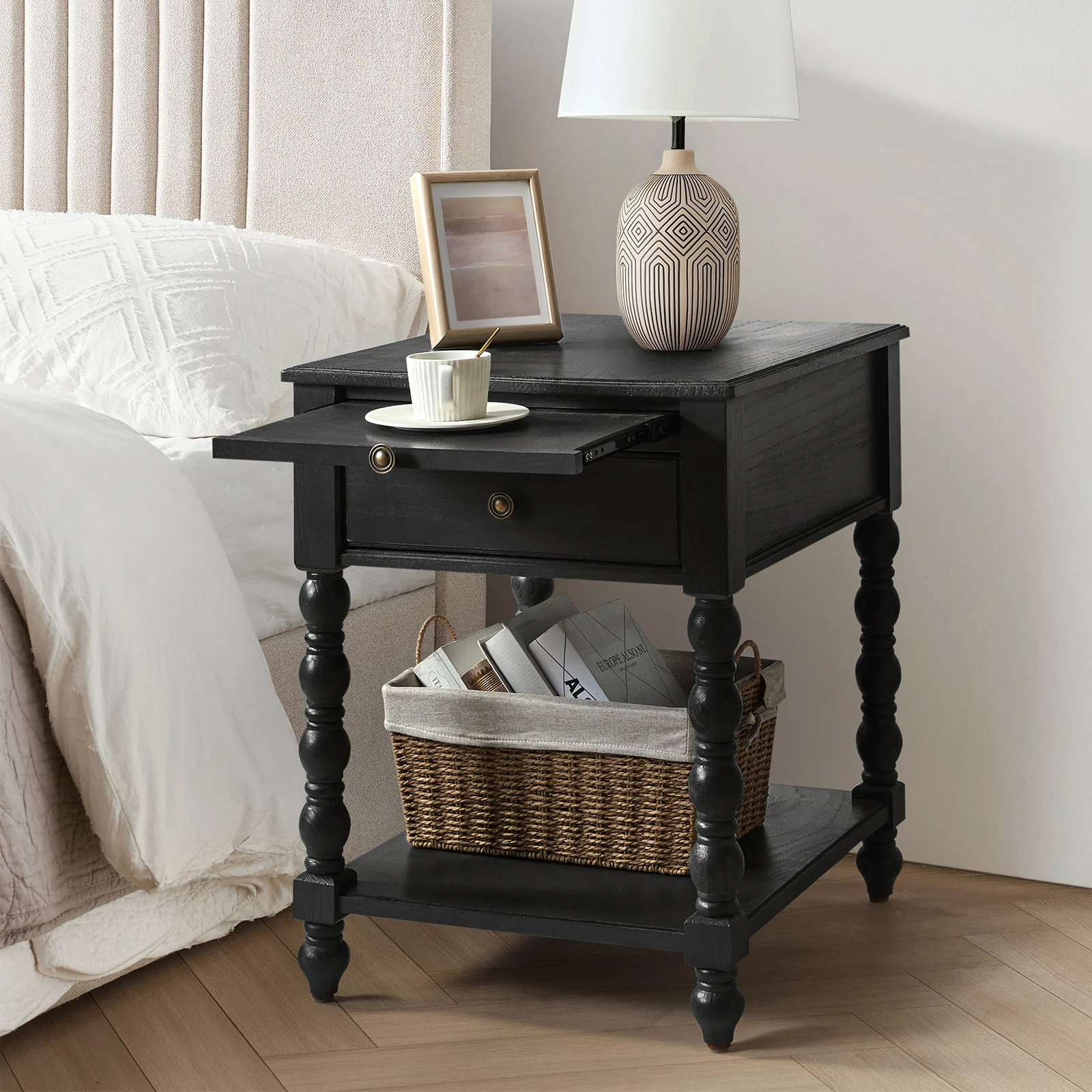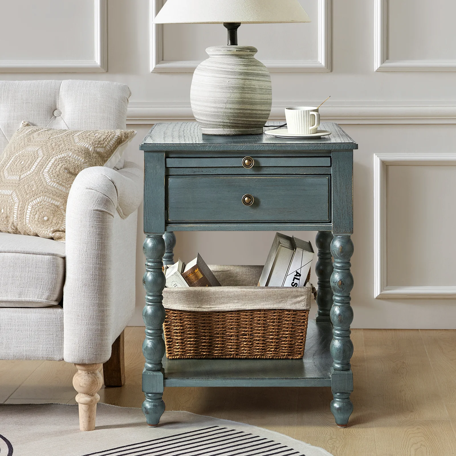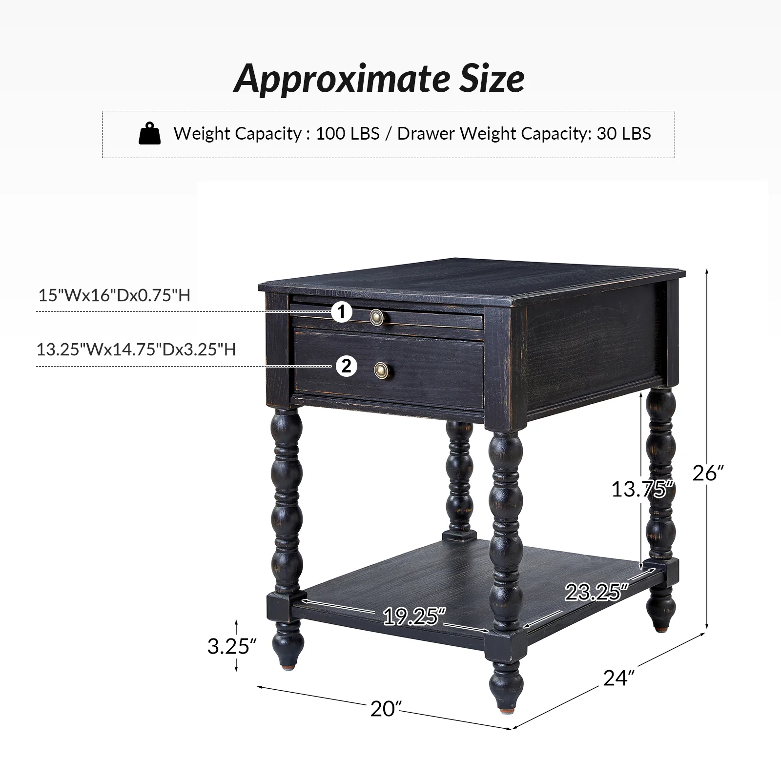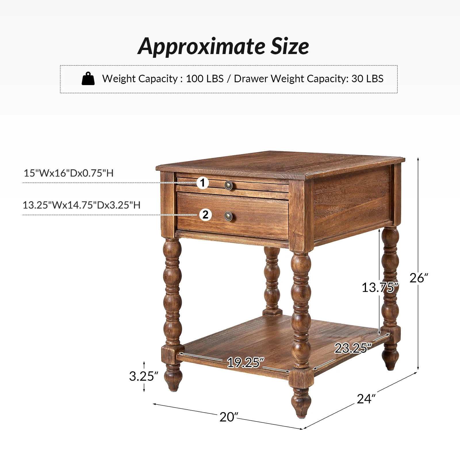 Ira 26" Tall Farmhouse Solid Wood End Table with Built-in Charging Outlets