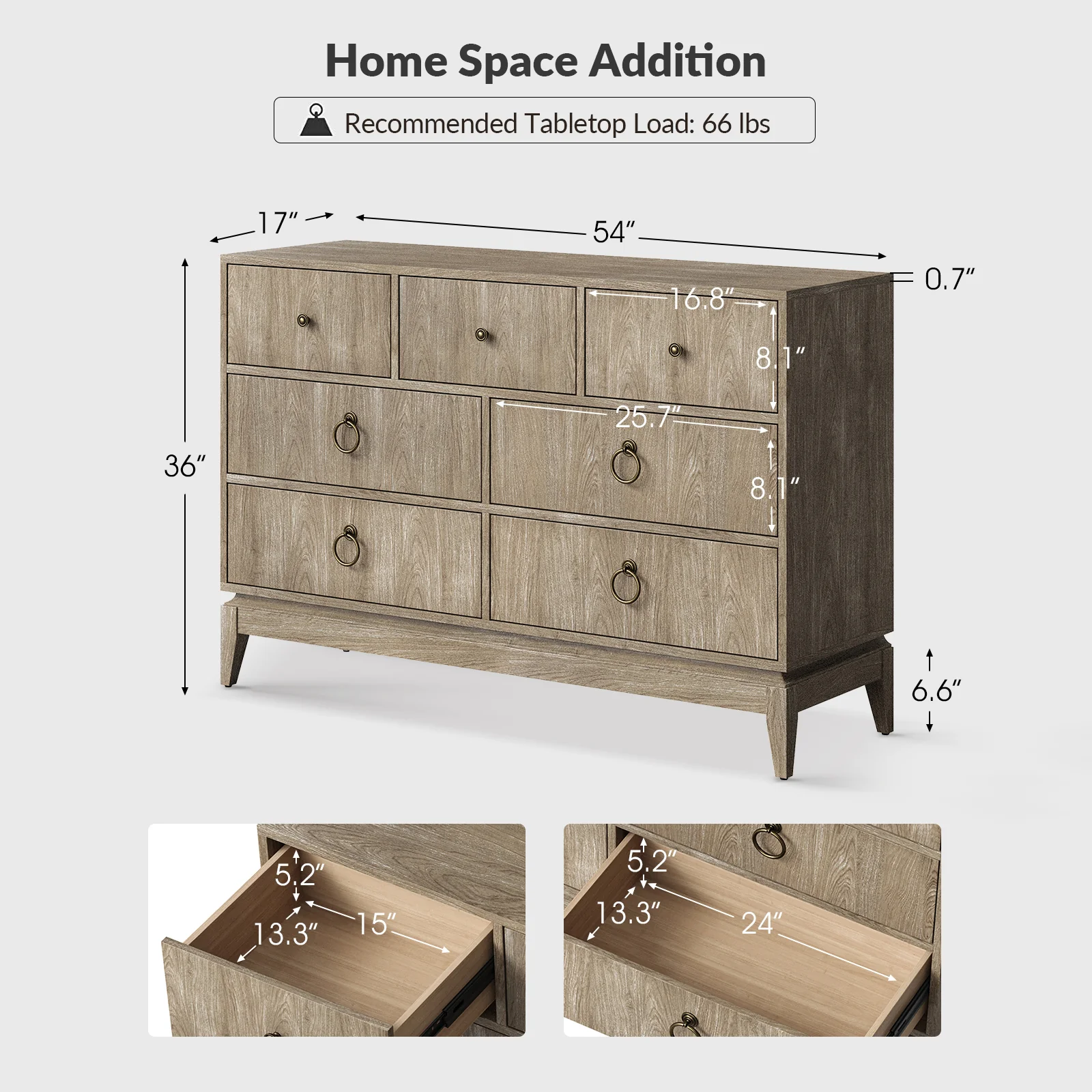Benedikt 54" Wide 6 Drawer Dresser