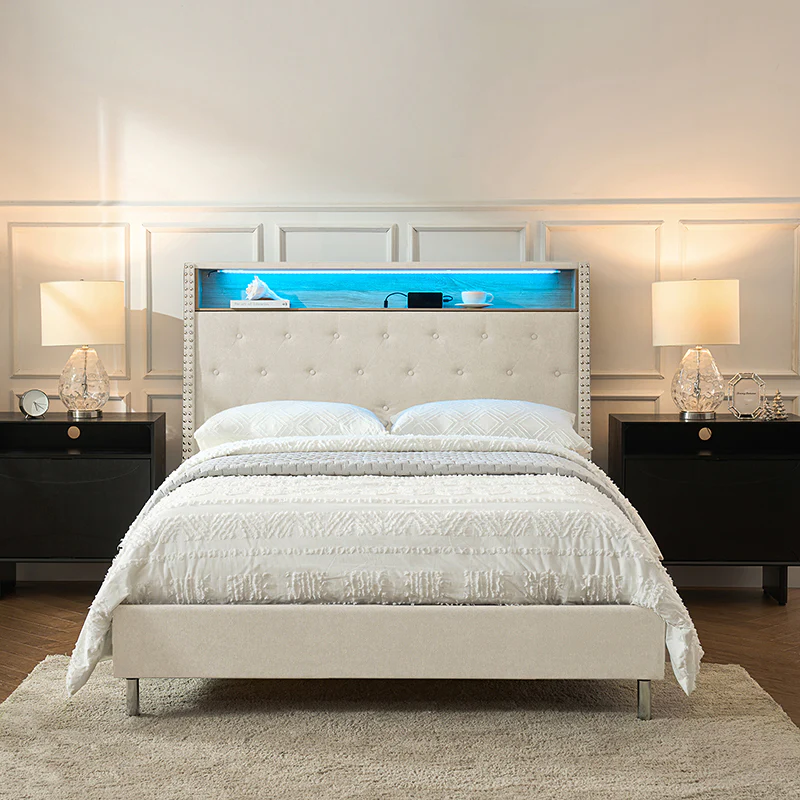 Elisa 61.5" Modern Adjustable RGB LED Headboard Bed with Built-in Storage