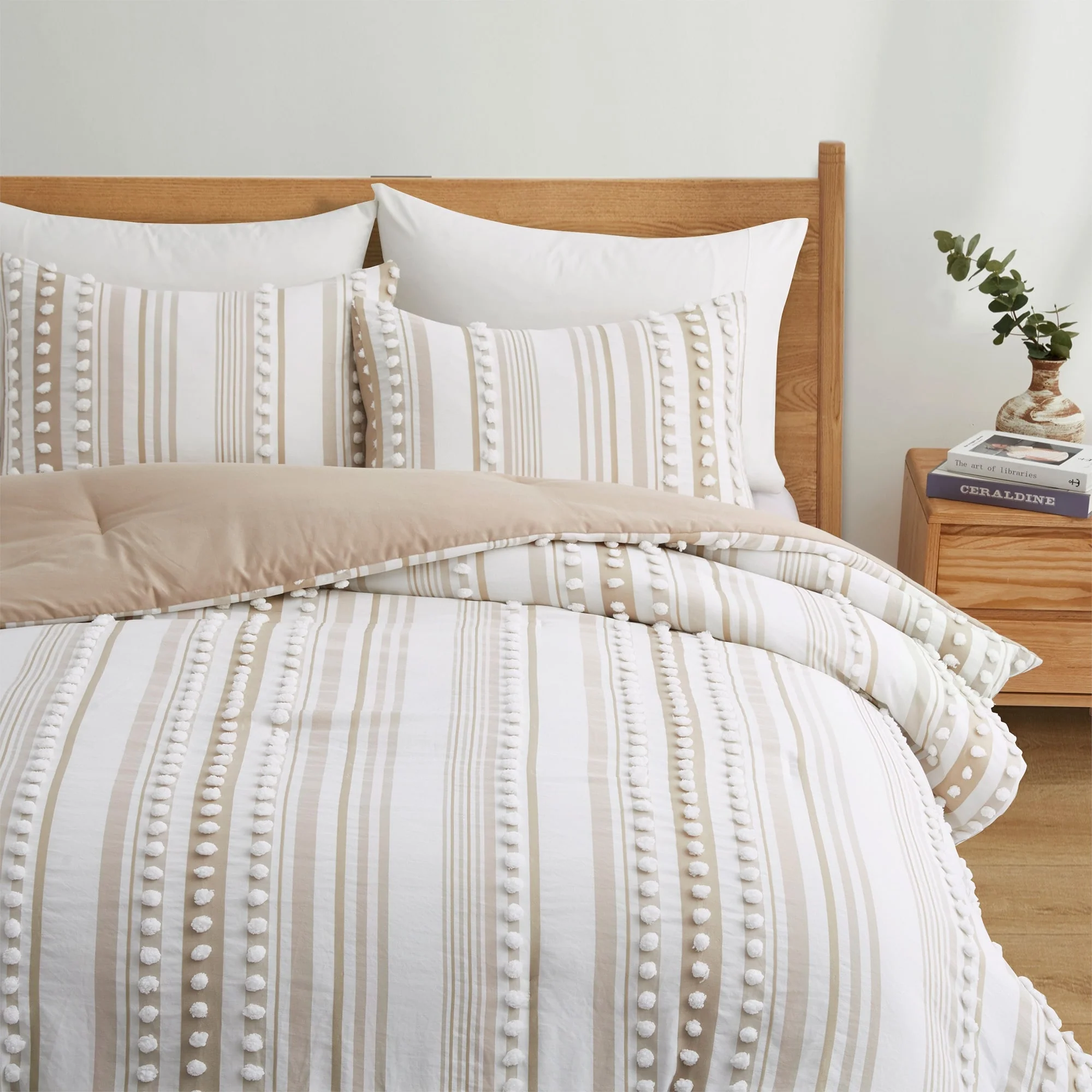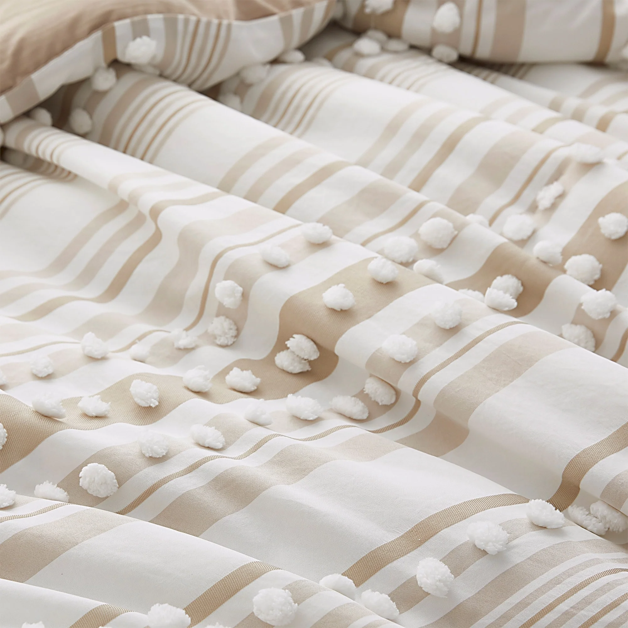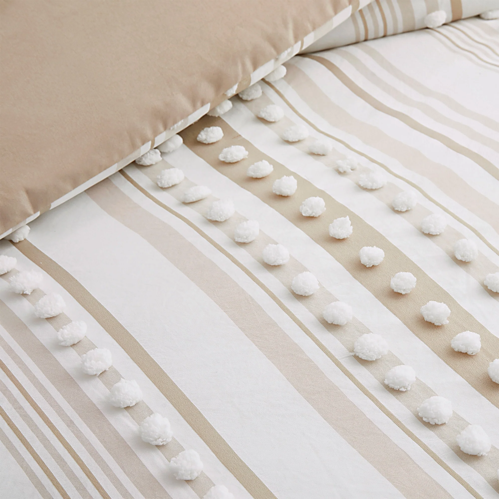 3 Pieces All-Season Striped Ball Pom Design Comforter Set Boho Bedding