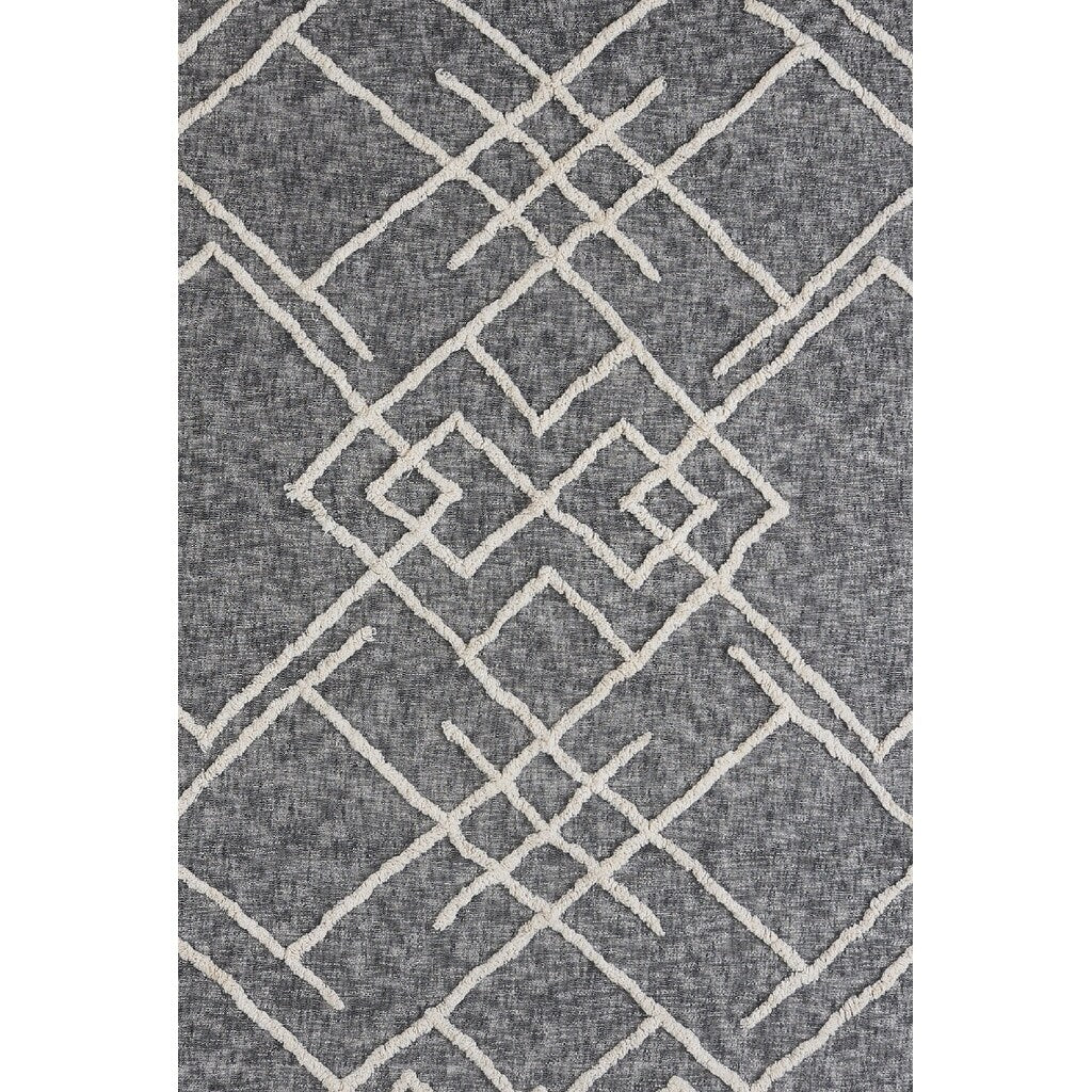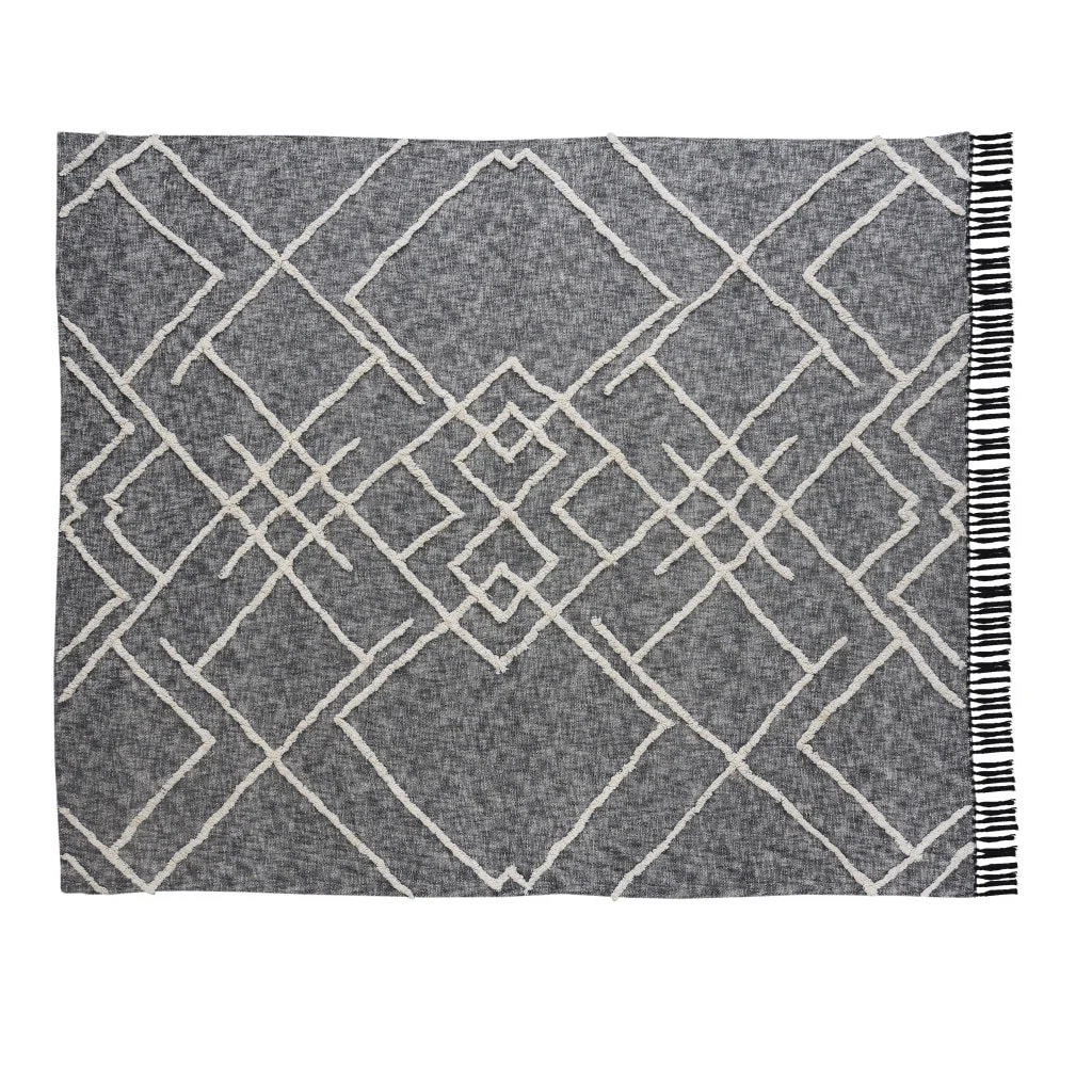Charcoal and Off White Geometric Twin Cotton Coverlet With Fringe