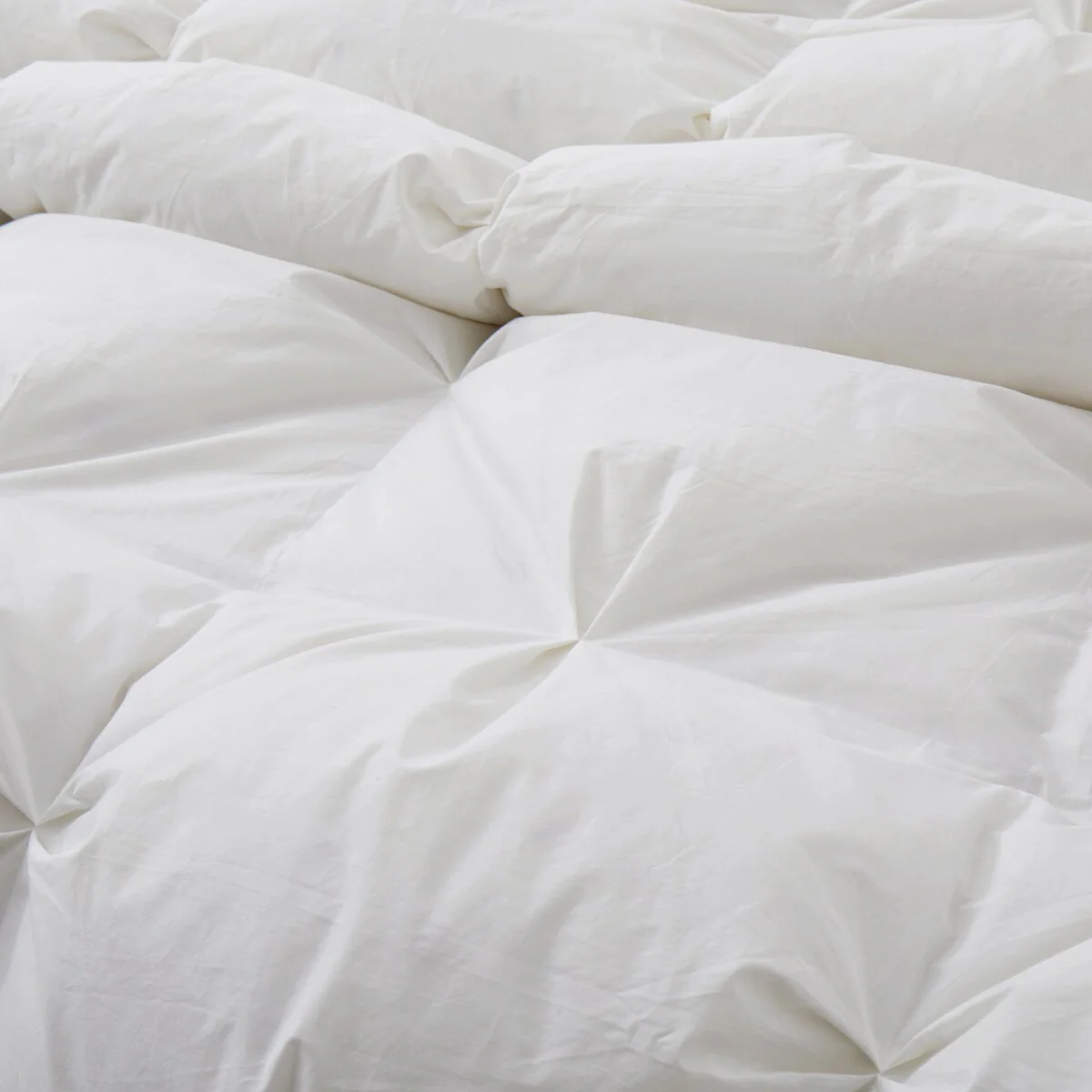 All Season White Goose Feather Down Gusseted Pintuck Pleat Comforter 100% Cotton Cover